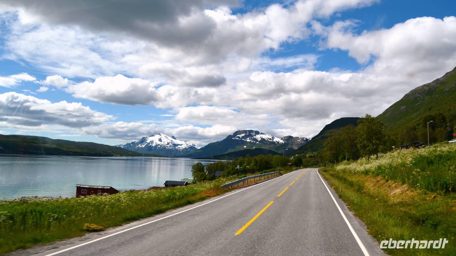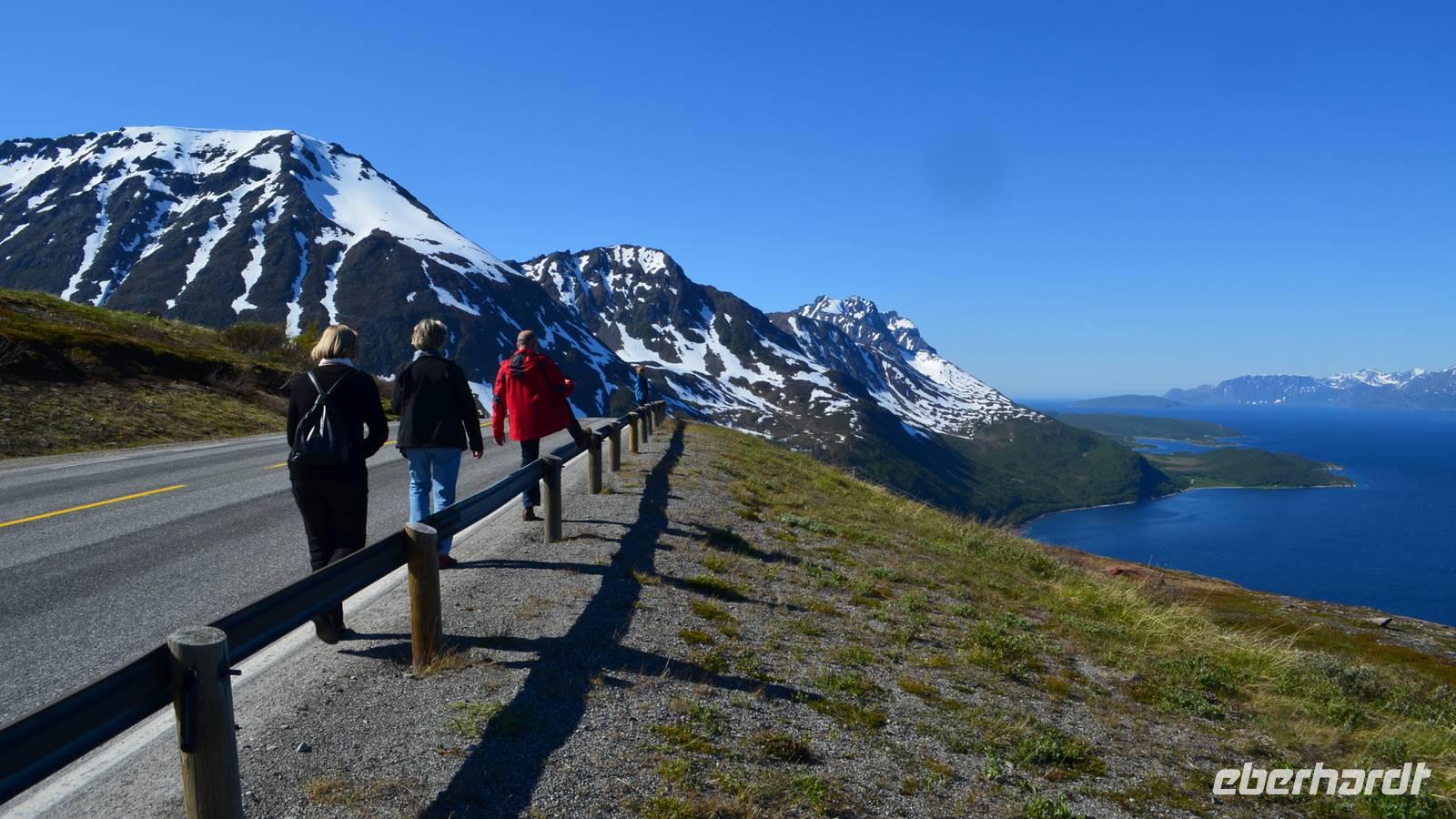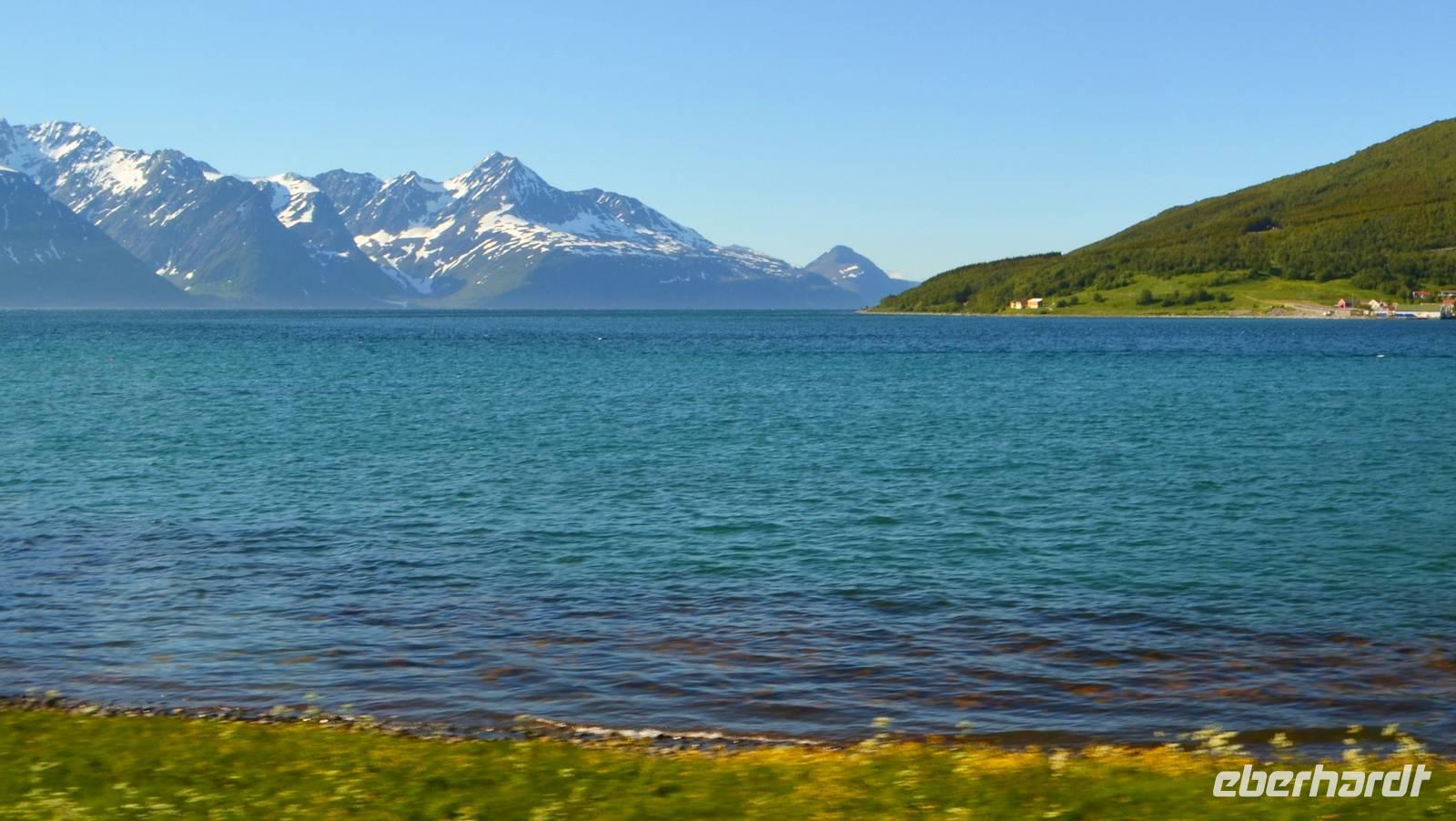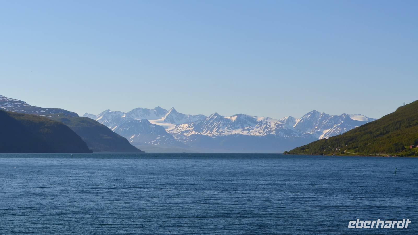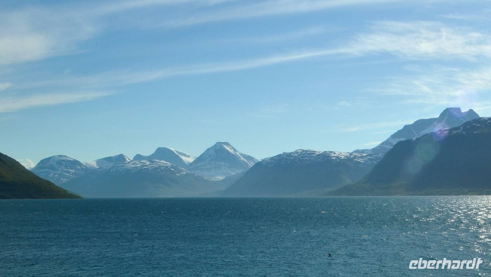 Der Fahrt führt uns an diesem Reisetag entlang der Küste nach Süden, nach Oteren, dem reizvollen Ort in den Lynger Alpen. Die wechselnden Formen und Farben der Berge, der Fjells und der Fjorde, wilde Bergflüsse und stille Buchten - die phantastischen Felszeichnungen bei Alta, kaum zu glaubende 6000 und 4000 Jahre alt. Danach die Landschaften am Kahfjord und am Langfjord, schließlich dann die schnee- und gletscherbedeckten Lynger-Alpen über dem Lyngerfjord. Eine wunderschöne Fahrt, mit tollen Ausblicken in die Landschaft Nordnorwegens.