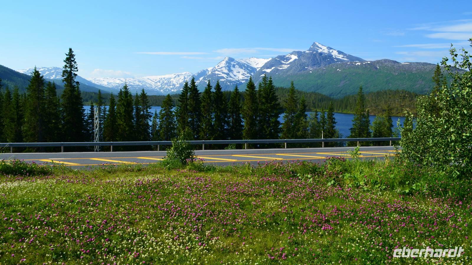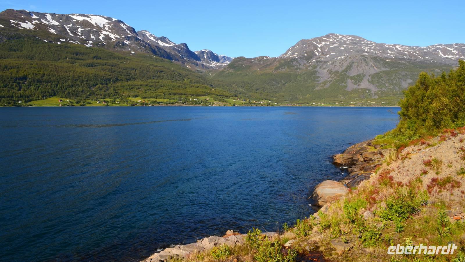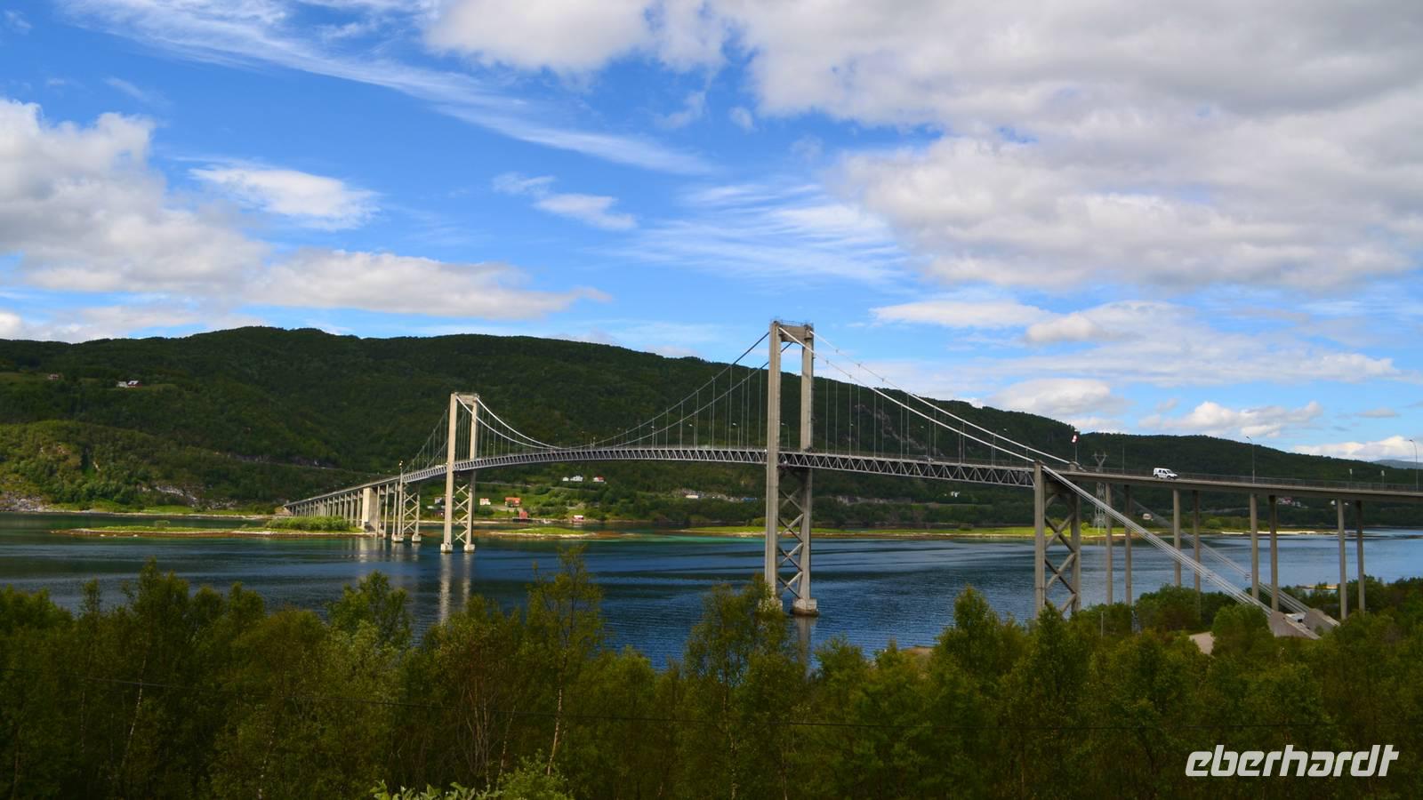 Heute fahren wir vorbei am Korkfjell zum Vefsnefjord, mit der tollen, in den Fels gehauenen Küstenstraße. Mit der Überquerung der gewaltigen Helgelandbrücke beginnt unsere Fahrt durch das sagenumwobene Helgeland, mit dem prägnanten Bergmassiv der Sieben Schwestern, dem Naturschutzgebiet Vega-Archipel, dem roten Berg, dem Hutberg (Torghatten). Drei Fähren bringen uns über die Fjorde des Helgelandes, bevor es am Nachmittag durch die Berge, entlang der Fjorde und Seen Nord -Trondelags weiter geht. Schließlich, vorbei am Sånasee, Norwegens zweitgrößtem Binnensee, fahren wir am Abend nach Steinkjer, der Handelsstadt am Beitstadfjord, einem Seitenarm am Ende des Trondheimfjords.