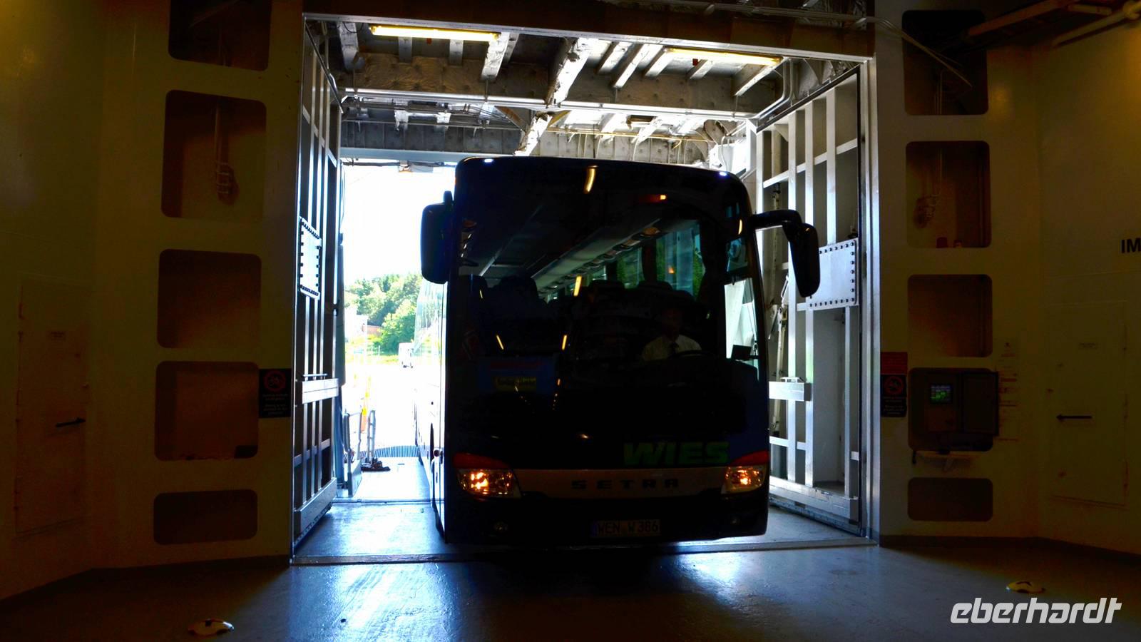 Wir nehmen im komfortablen Reisebus der Firma wies Platz, die diese Reise im Auftrag von eberhardt Travel fährt, machen es uns bequem und beginnen die Reise, fahren über Döbeln und Leipzig Richtung Berlin und weiter nach Kiel.