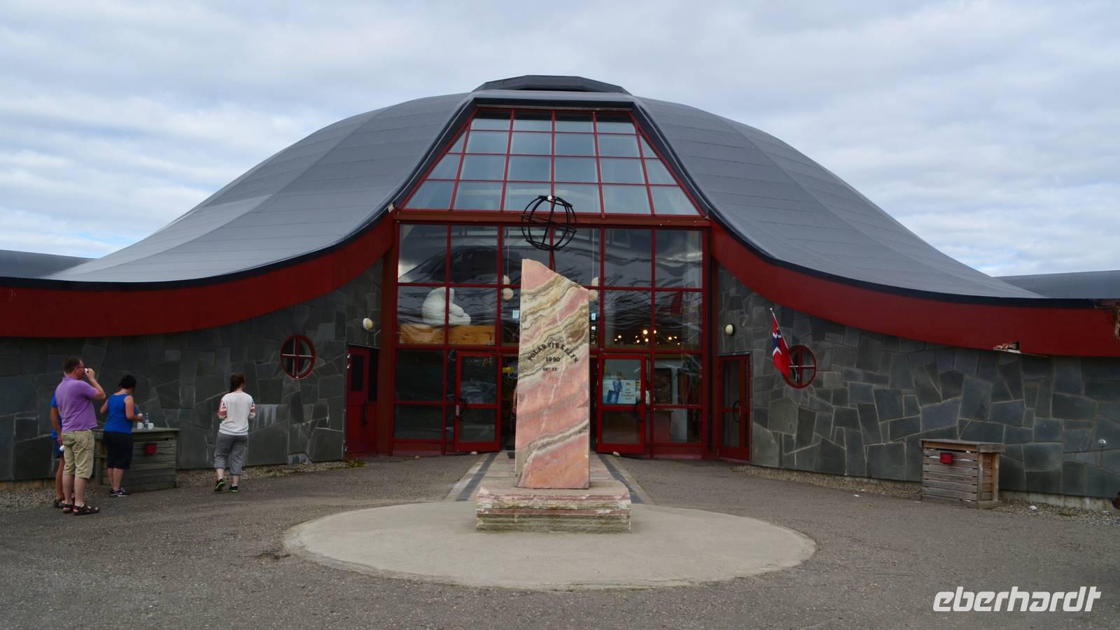 Am Nordkapcenter angekommen geht zuerst keiner in das Gebäude, sondern alle genießen den Ausblick von den Aussichtsterrassen, bis der kalte Wind uns in die Nordkaphalle weht. Im attraktiven Gebäude des Centers selbst gibt es, mehrere Etagen tief in den Felsen gebaut, Gastronomie, Geschäfte, Ausstellungen und ein Multivisionskino, wo wir den sehenswerten Film über die tolle Landschaft hier zu allen Jahreszeiten anschauen.