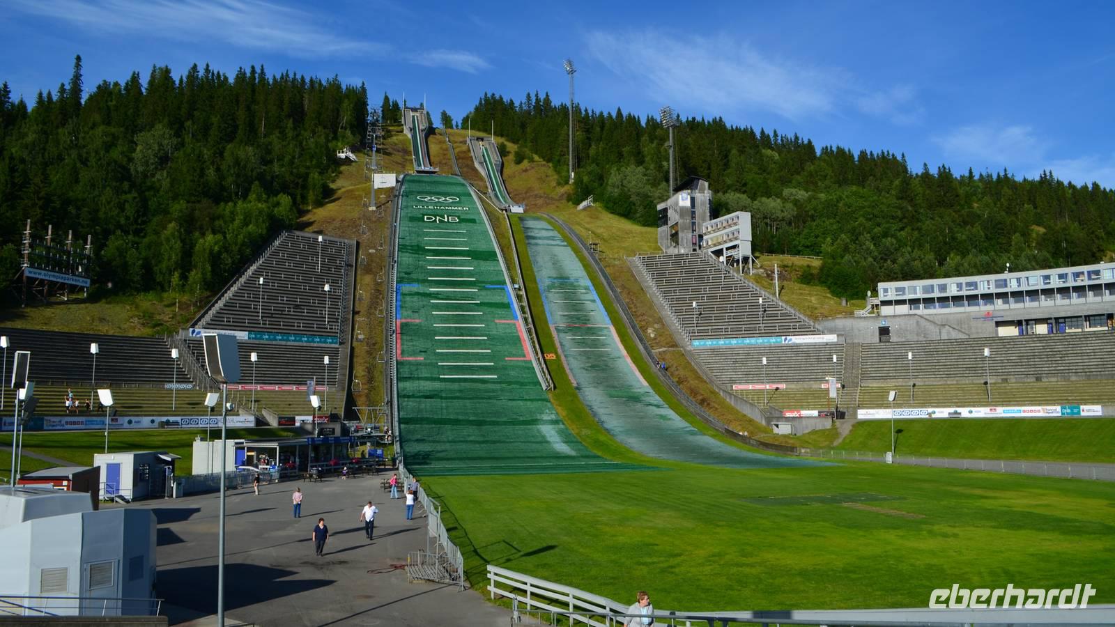 Auf dem Holmenkollen besuchen wir die moderne Skisprunganlage und genießen die schöne Aussicht.
