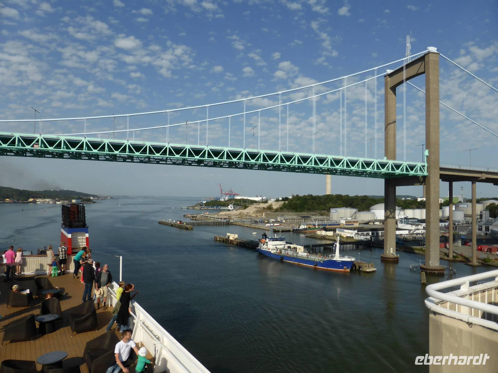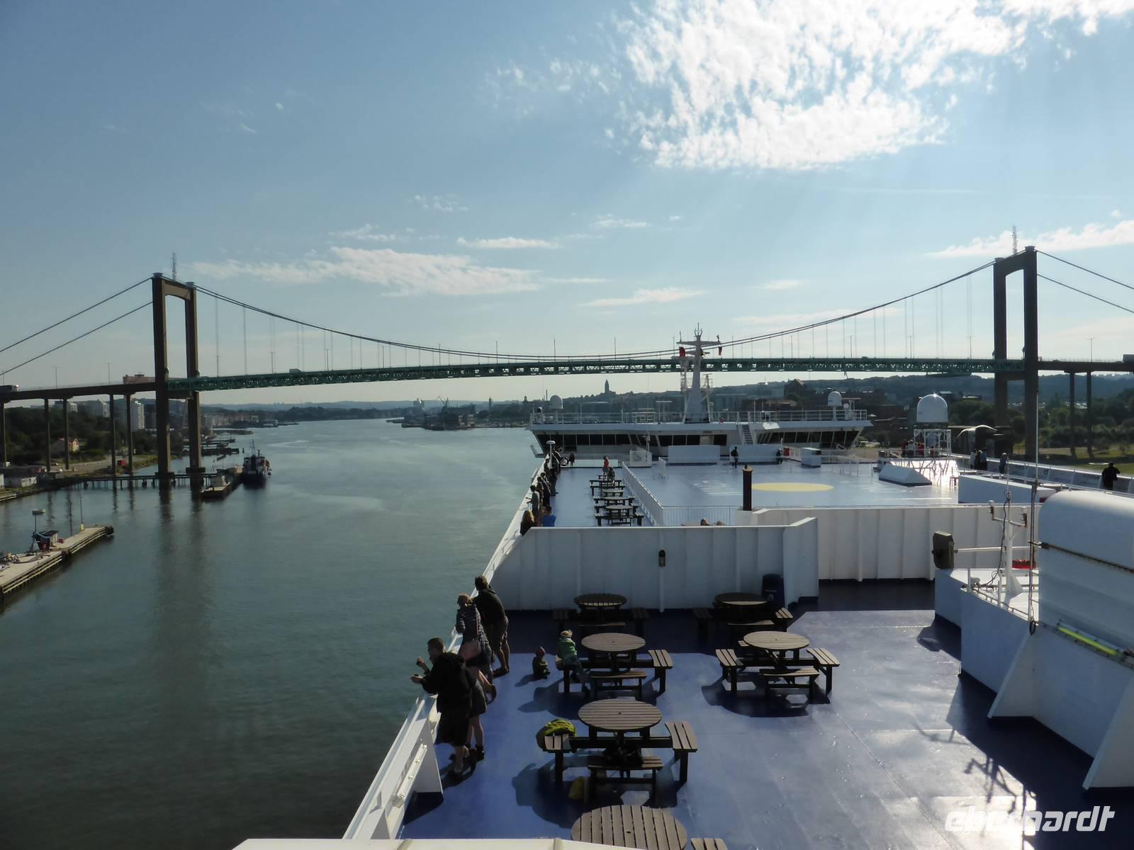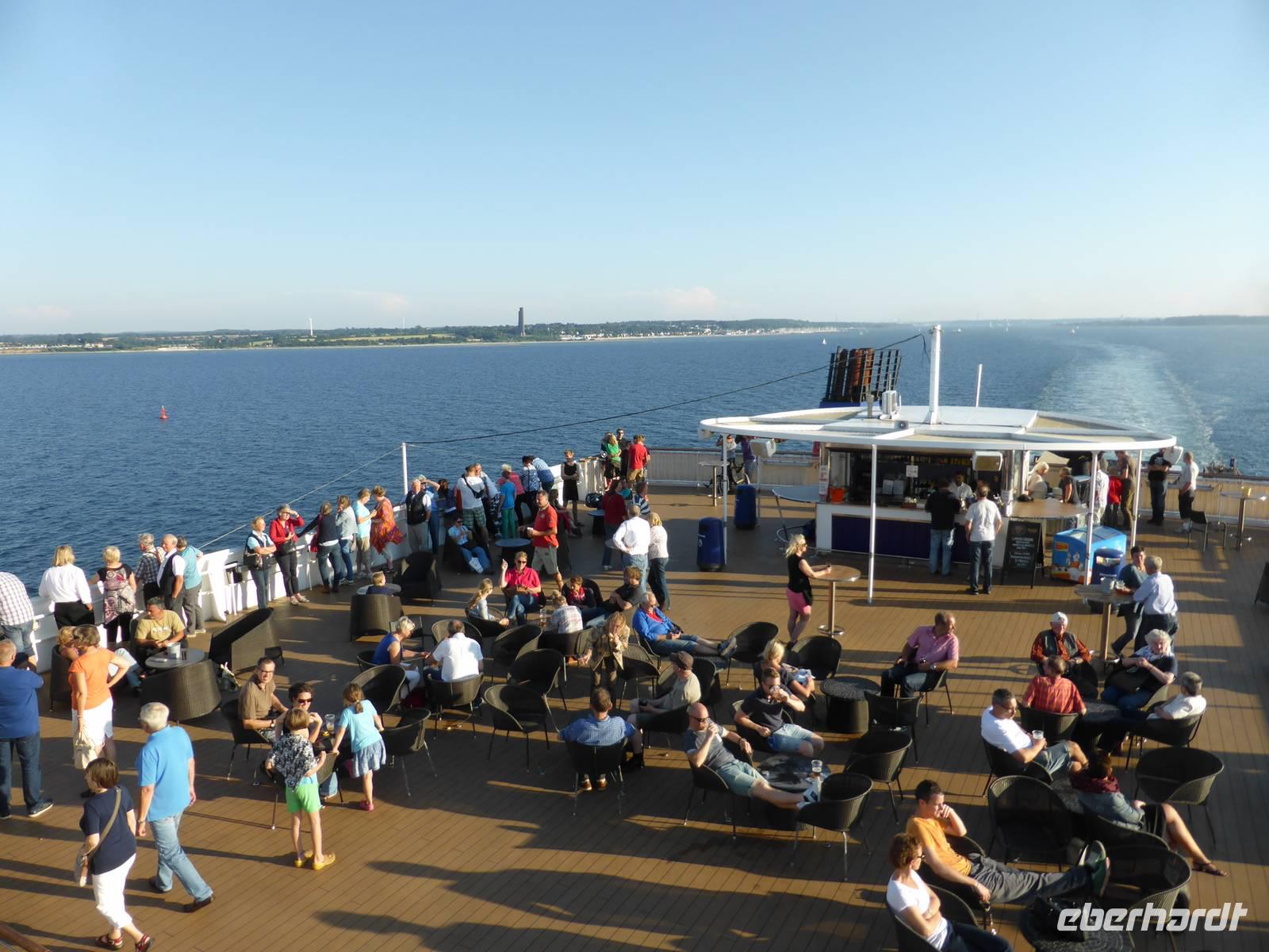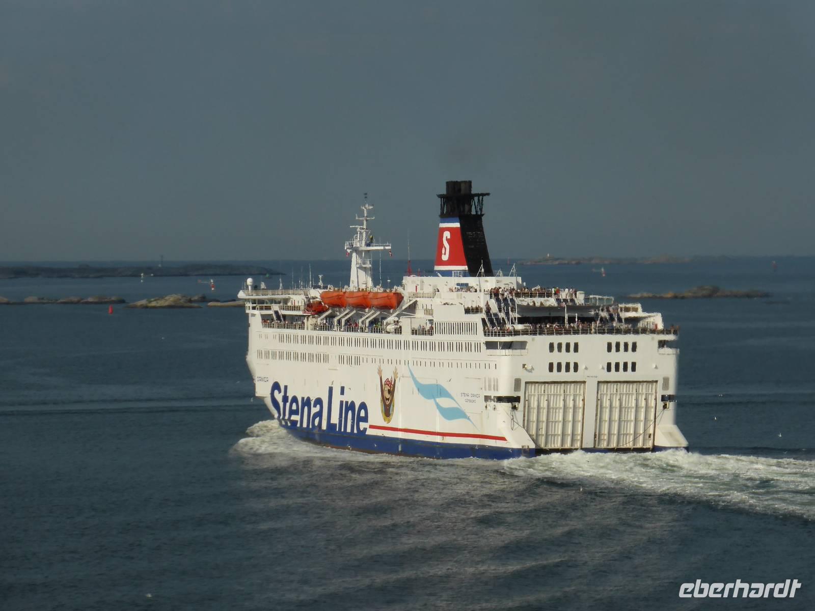 Unsere Reise begann bei strömenden Regen am Flughafen Dresden. Entlang der Autobahn erfolgten weitere Zustiege in Döbeln, am FH Leipzig und bei Coswig. Es hörte auf zu regnen und die Sonne kam heraus. Unsere Fahrtroute verlief über den Berliner Ring, die A 24 und über Bad Segeberg und endete in Kiel. Gegen 15.30 Uhr kamen wir dort am Hauptbahnhof an, wo zwei weitere Gäste zustiegen. Am Stena Line - Terminal angekommen, hatten wir noch genügend Zeit für einen kleinen Bummel durch das Stadtzentrum von Kiel. Anschließend nahmen wir am Bus unsere Kabinenschlüssel entgegen und gingen an Bord. Während wir langsam durch die Kieler Förde hinaus in die offene See fuhren, genossen wir unser reichhaltiges Buffet im Panorama-Restaurant.