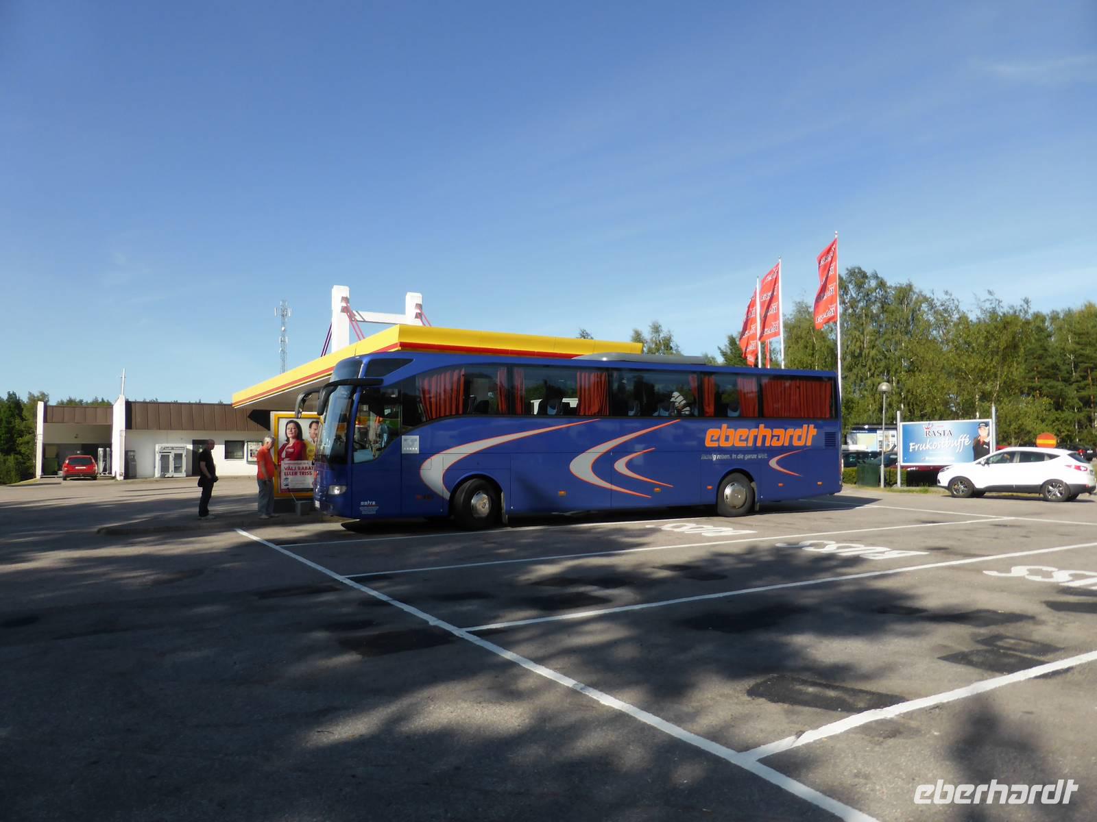 Dann ging es weiter Richtung Norden. Am Rasthof Tönnebro legten wir am See unsere Kaffeepause ein und machten unseren letzten Halt an den hölzernen Speicherhäusern in Hudviksvall. Anschließend fuhren wir weiter zu unserem Hotel „Strand" in Sundsvall. In der Stadt war viel Leben, denn es wurden gleich zwei Feste gefeiert, das „Ladies Race" und das „Thailändische Festival".