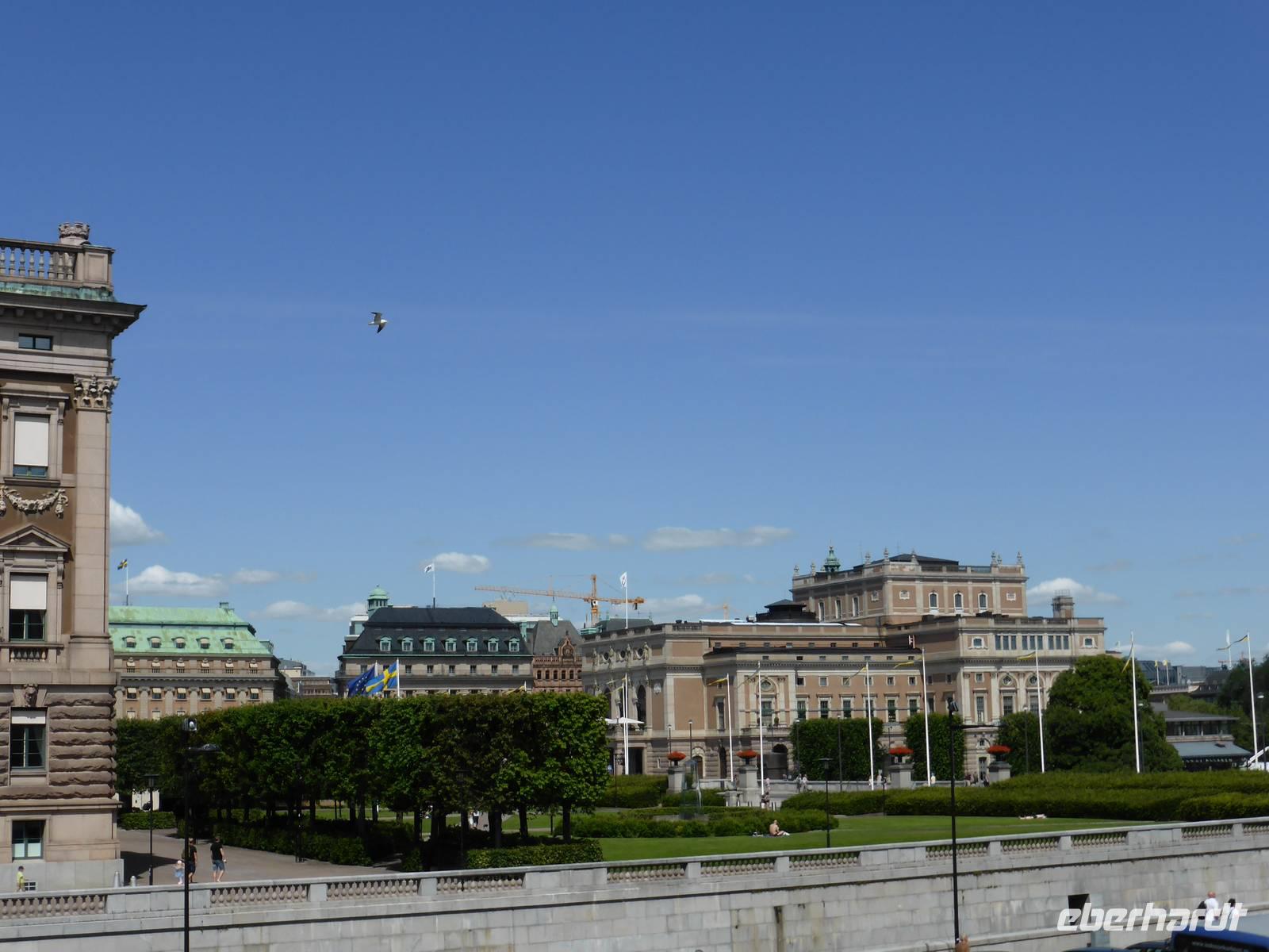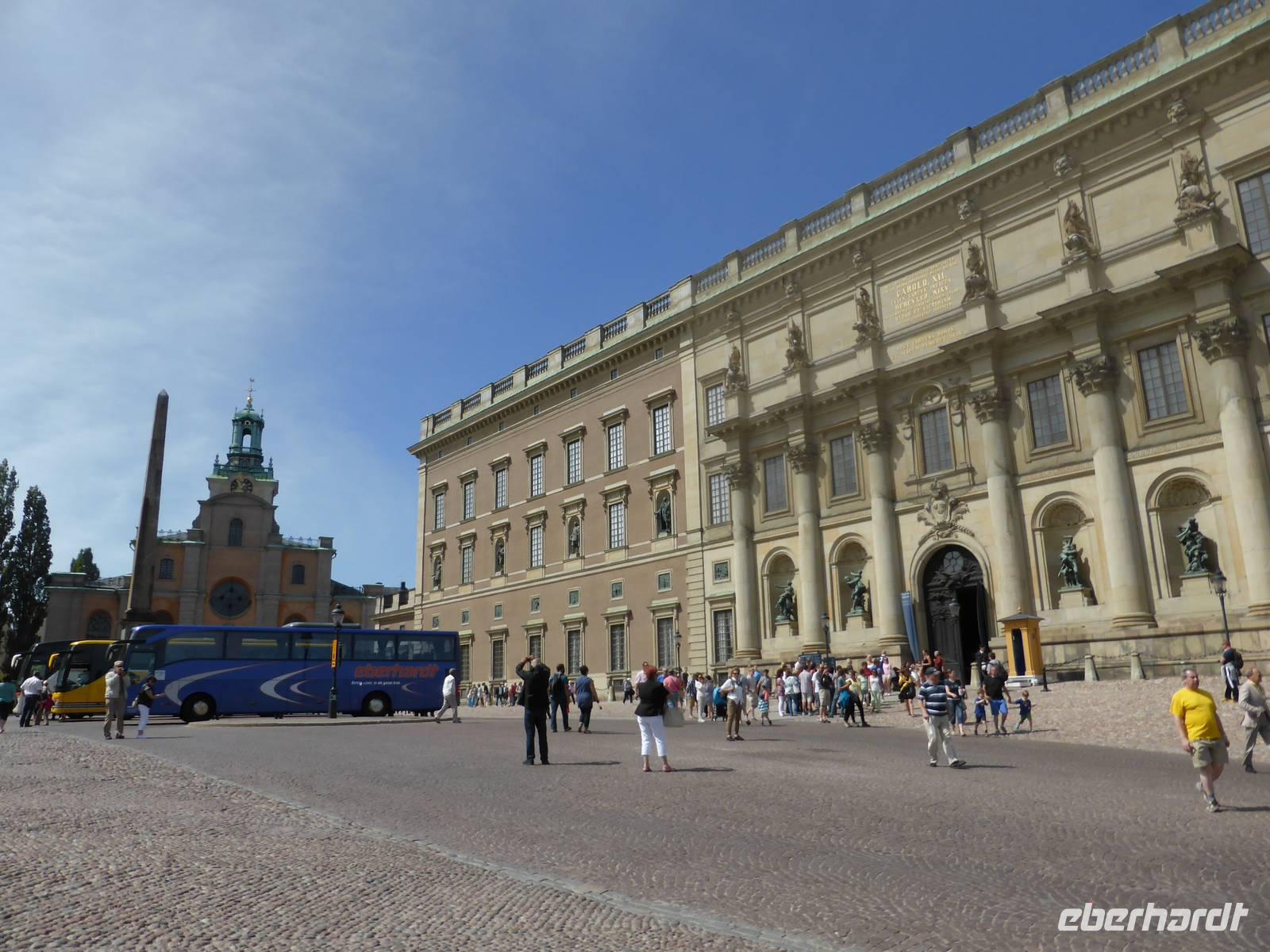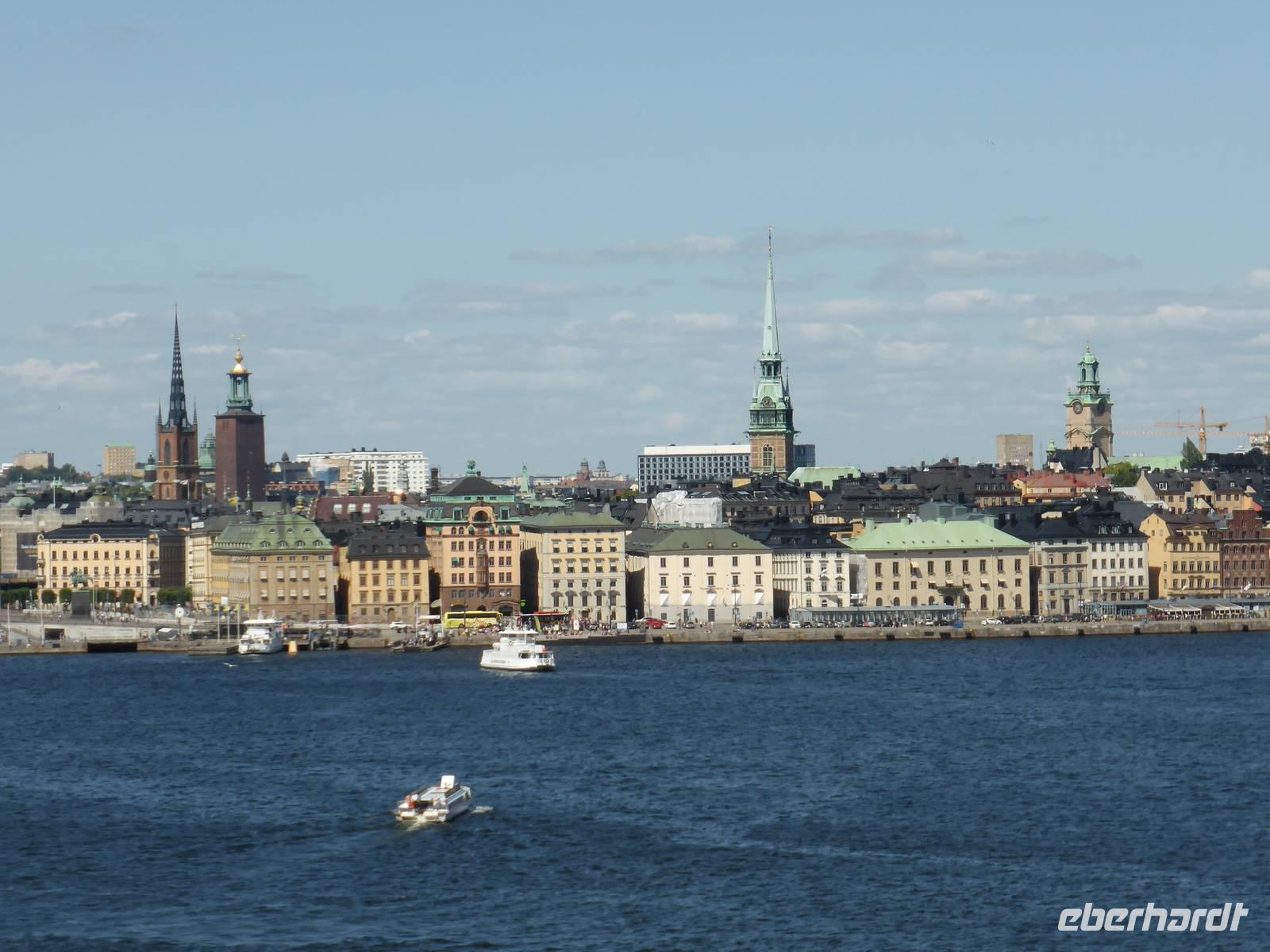 Nach dem Frühstück trafen wir uns mit unserem örtlichen Stadtführer David. Nach einem Rundgang vor dem Stadthaus fuhren wir zum Vasamuseum. Dieses gleich am frühen Morgen zu besichtigen war eine gute Entscheidung, denn bei unserer Ankunft war der Busparkplatz noch leer. Das Vasa-Museum ist vielleicht das schönste Schiffsmuseum der Welt. Das einzige ausgestellte Schiff ist das Kriegsschiff Vasa, welches beim Stapellauf im Jahre 1628 im Stockholmer Hafen versank. Als wir nach dem Museumsbesuch unsere Stadtrundfahrt fortsetzten, war der Parkplatz bereits voll. Es ging über die Skansen-Insel, vorbei an den ausländischen Botschaften und für einen Fotostopp auf die Insel „Söderholmen", von der aus wir einen grandiosen Blick auf die Stockholmer Altstadt hatten. Anschließend fuhren wir zur Altstadt hinüber und beendeten unsere Busrundfahrt vor dem Stockholmer Schloss. Gegen 12.10 Uhr paradierte die Kapelle zur Wachablösung an uns vorbei. Danach setzten wir unsere Stadtbesichtigung zu Fuß fort. Am Altstädter Markt beendete David die Stadtführung und bis zur Weiterfahrt um 13.00 Uhr hatten wir noch etwas Freizeit für eigene Erkundungen.