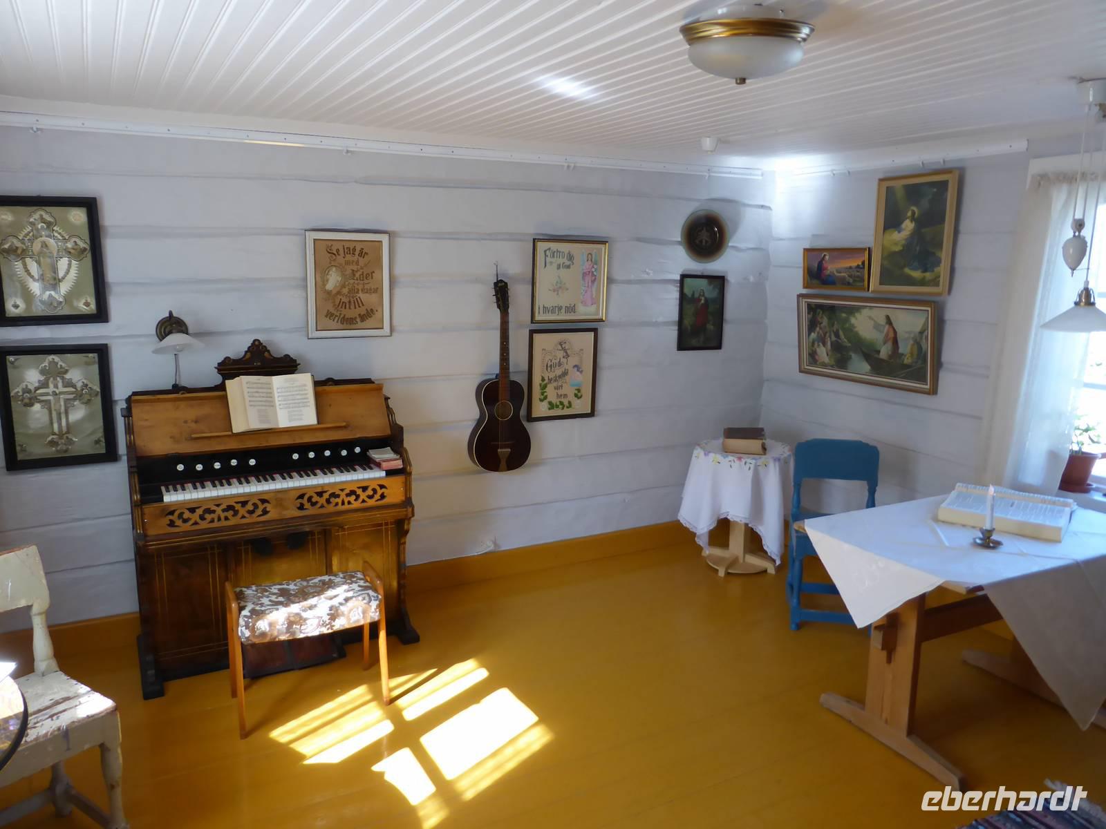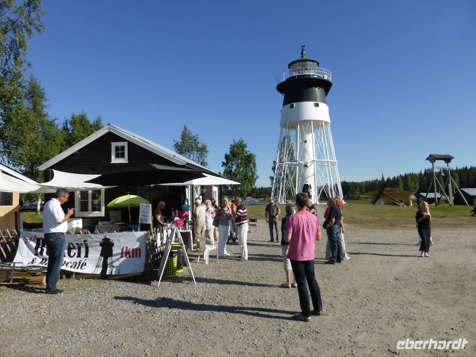 Kirchdorf von Lövanger. Da früher die Anfahrtswege für die Bauern zur nächstgelegenen Kirche zu weit waren, wurden überall in Schweden in der Nähe der Pfarrkirchen kleine Hütten für die auswärtigen Bauern und Ställe für ihr Vieh errichtet. Nach der mühevollen Anreise fanden sie hier für die Gottesdienste und Festtage eine Bleibe, bevor sie sich wieder auf den langen Heimweg machten. Unser letzter Stopp auf unserer Fahrt nach Lulea war am Leuchtturm von Jävre. Hier konnten wir Schnitten mit frisch geräuchertem Lachs kaufen und am Ufer des Sees spazieren gehen. Anschließend fuhren wir zu unserem Hotel „Quality" in Lulea. Es war einer der schönsten Abende unserer Reise, denn unsere Nationalmannschaft gewann im WM-Endspiel 1:0 gegen Argentinien und im Hotel waren überall die Jubelrufe zu hören.