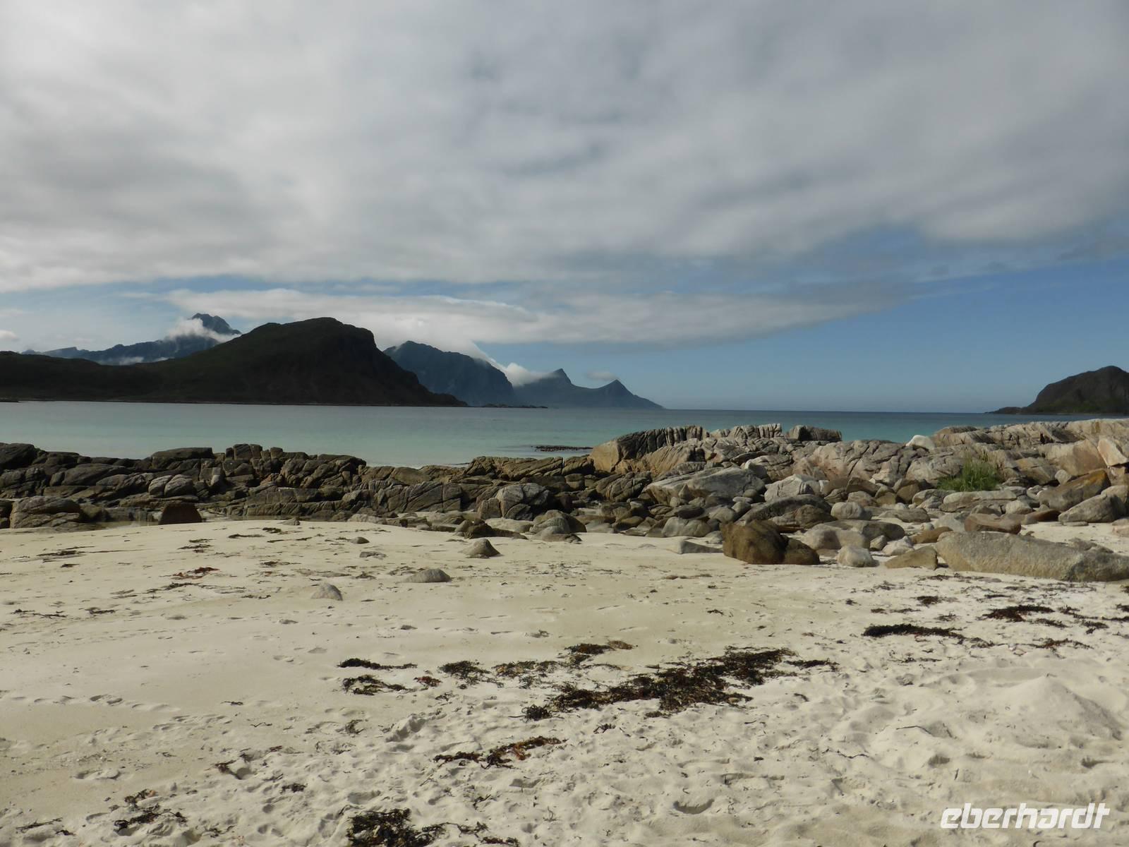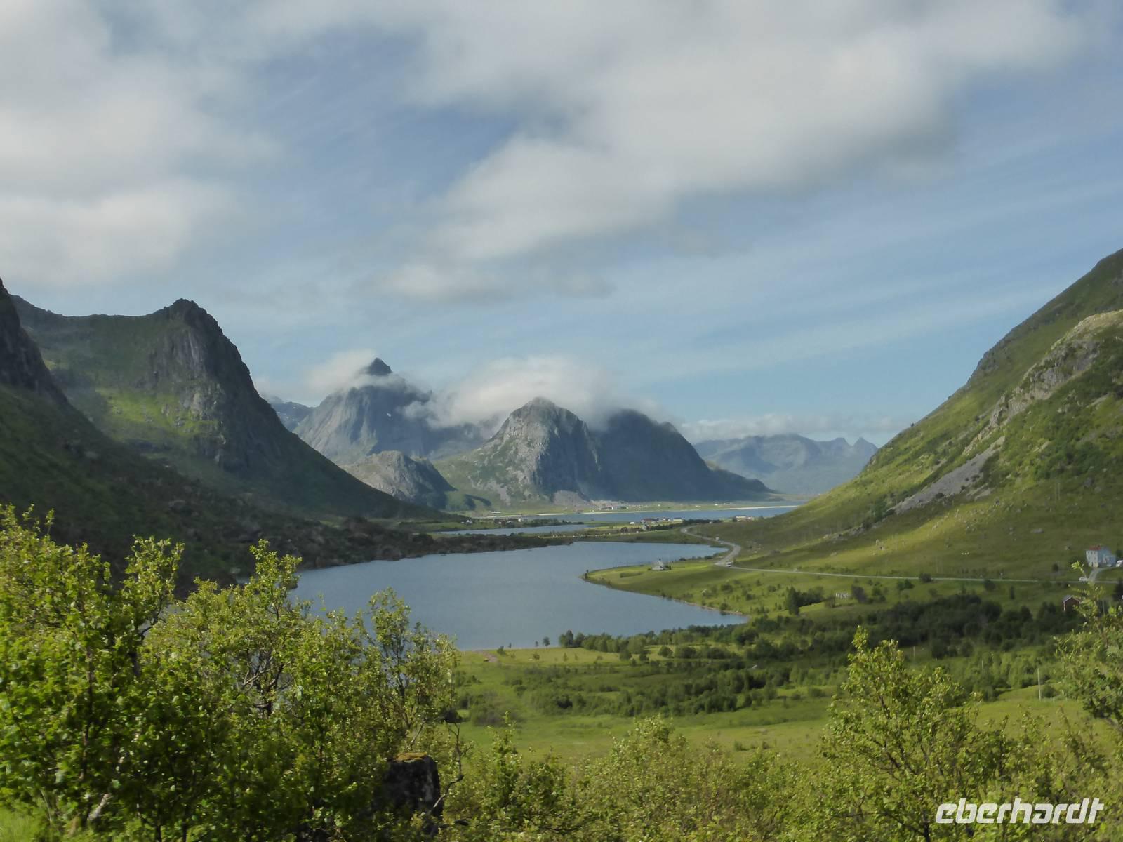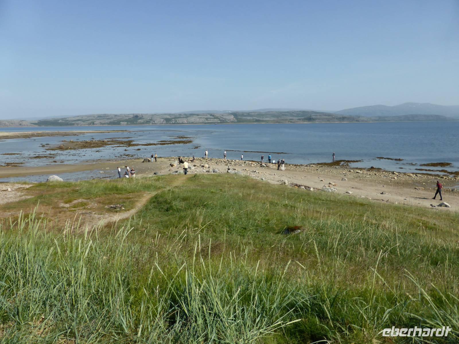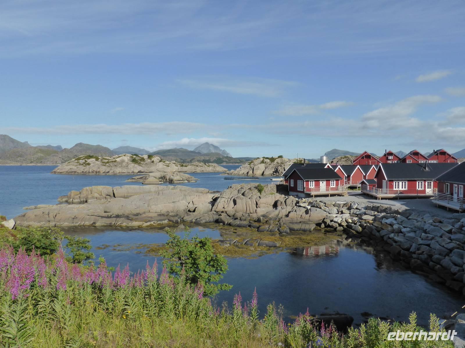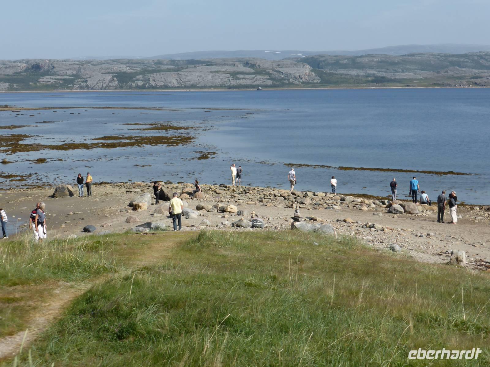 Nach dem Frühstück mit Ausblick auf die fantastische Schärenlandschaft begannen wir unsere Rundfahrt auf den Lofoten. Zuerst fuhren wir an die Bucht von Leknes, um die dort liegenden Kreuzfahrtschiffe zu fotografieren. Dann ging es über Napp zum Strand von Ramberg, wo wir bei strahlendem Sonnenschein und sommerlichen Temperaturen am Strand spazieren gingen. Von dort fuhren wir durch den Nappstraumen-Tunnel zurück auf die Insel Vestvagoy und machten noch einen Fotostopp am Strand von Utakleiv. Gegen Mittag erreichten wir schließlich die Ortschaft Borg, die durch das Wikingermuseum „Lofot" berühmt geworden ist. Zu Beginn besuchten wir gemeinsam mit unserem Museumsführer das Häuptlings- bzw. Fürstenhaus und stärkten uns bei einer kräftigen und wohlschmeckenden Lammsuppe. Vielleicht hätte man uns diese auch vor 1000 Jahren in dieser oder ähnlicher Form serviert. Nach der gemeinsamen Besichtigung hatten wir Freizeit für individuelle Erkundungen. Den Abschluss bildete der Museumsbesuch mit Filmvorführung.
