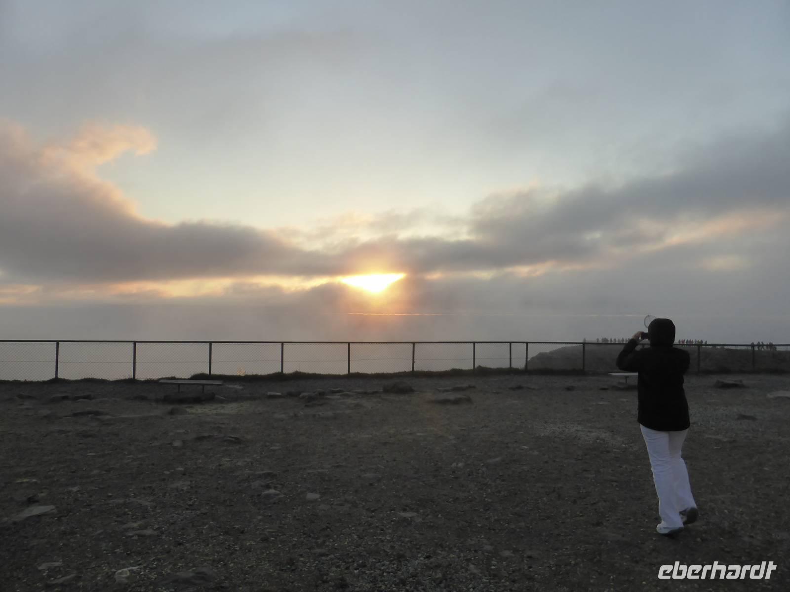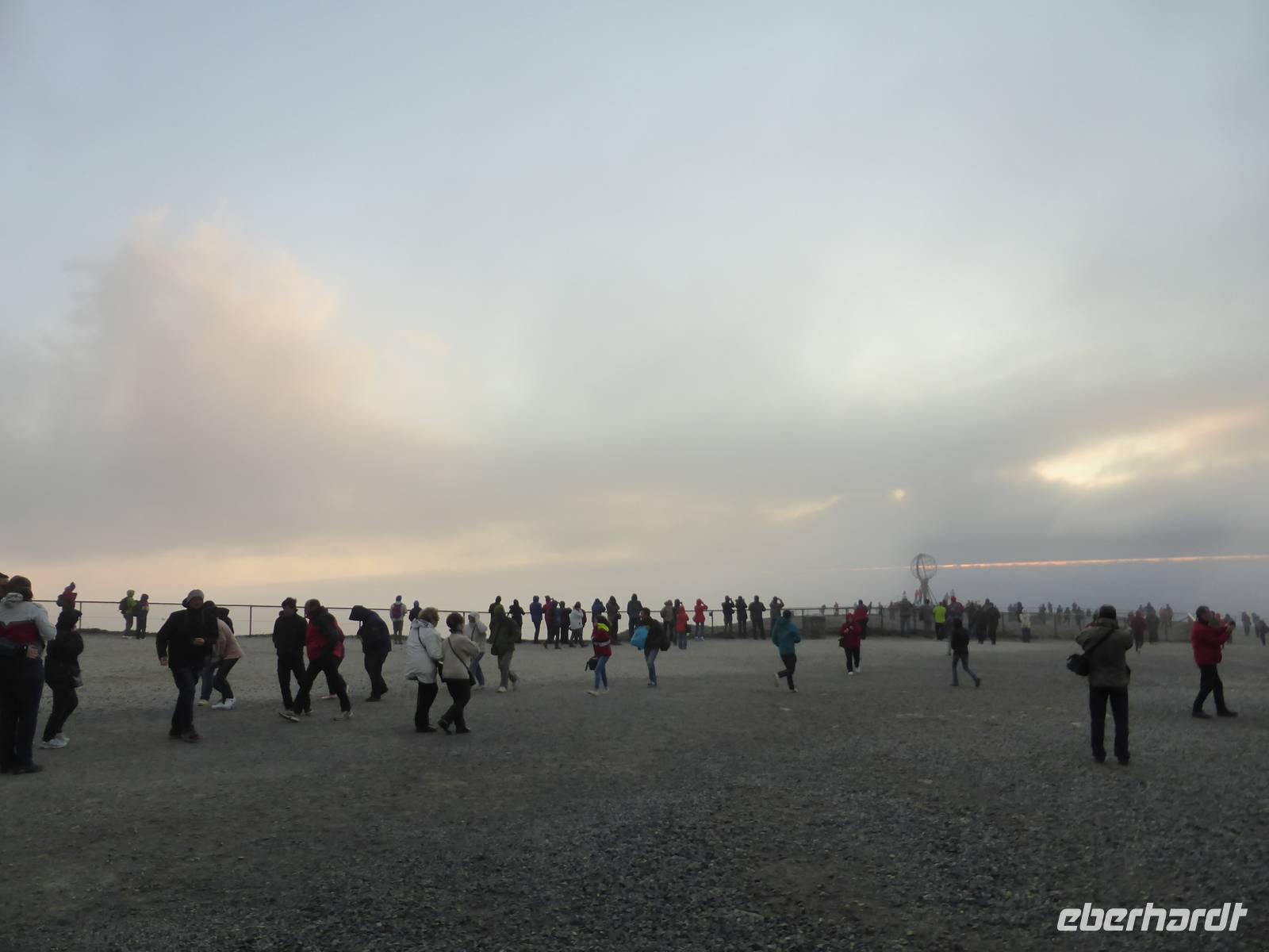 Nach dem Frühstück fuhren zum Inari-See und anschließend zur Bärenhöhle. Am Eingang des Geländes wurden wir zunächst von zwei ausgestopften Bären begrüßt. Wer wollte, der konnte den Weg zur Bärenhöhle auf Holzbohlen emporsteigen. Ein weiterer Höhepunkt des Tages war der Besuch des Siida-Museums in Inari. Hier erhielten wir viele Informationen über den Alltag der Sami und das Leben mit der langen Dunkelheit im Winter. Anschließend war für alle Gäste das Picknick vorbereitet und nach dieser Stärkung ging es weiter Richtung Finnmark. In Karasjok, der ersten norwegischen Stadt, besuchten wir das Informationszentrum und tauschten unsere Euro in norwegische Kronen. Nach Fotostopps am Porsangerfjord und einer Pause in Olderfjord kamen wir gegen 17.30 Uhr am Rica Hotel in Honningsvag an. Nach dem Abendessen fuhren wir um 21.00 Uhr erwartungsvoll zum Nordkap ab. Während der ca. 45 minütigen Fahrt war das Wetter sehr wechselhaft, trotzdem zumindest so gut, dass wir einen Fotostopp mit Blick auf die Barentsee einlegen konnten. Bei unserer Ankunft am Nordkap war es bedeckt und sehr windig. Wir hofften während unseres Aufenthaltes auf Wetter-Besserung, aber nur hin und wieder war ein Lichtstreifen am Horizont zu sehen. Völlig wolkenfrei war der Horizont allerdings nie. Es war trotzdem ein riesiges Erlebnis, nach der langen und erlebnisreichen Fahrt das Nordkap erreicht zu haben!