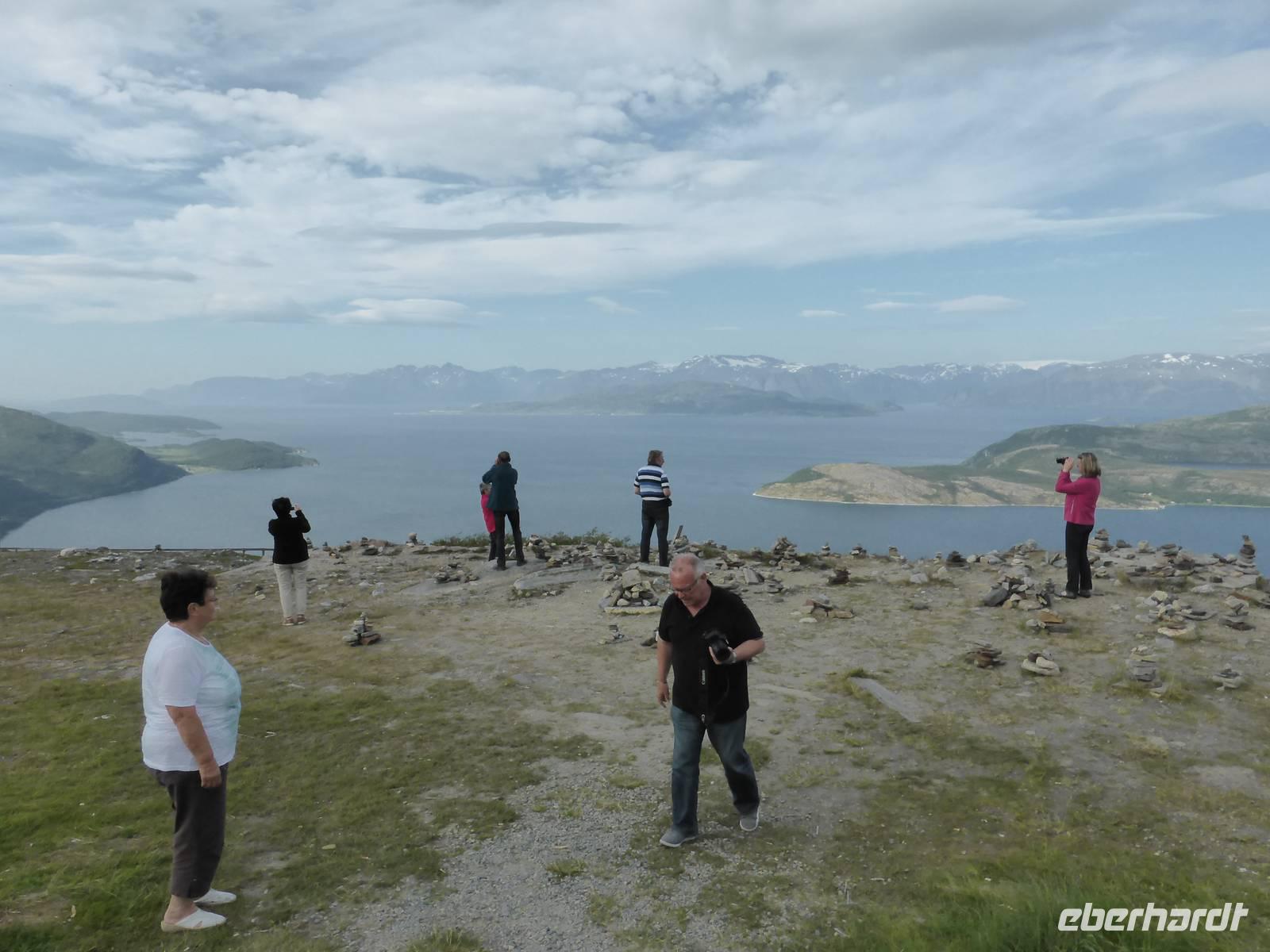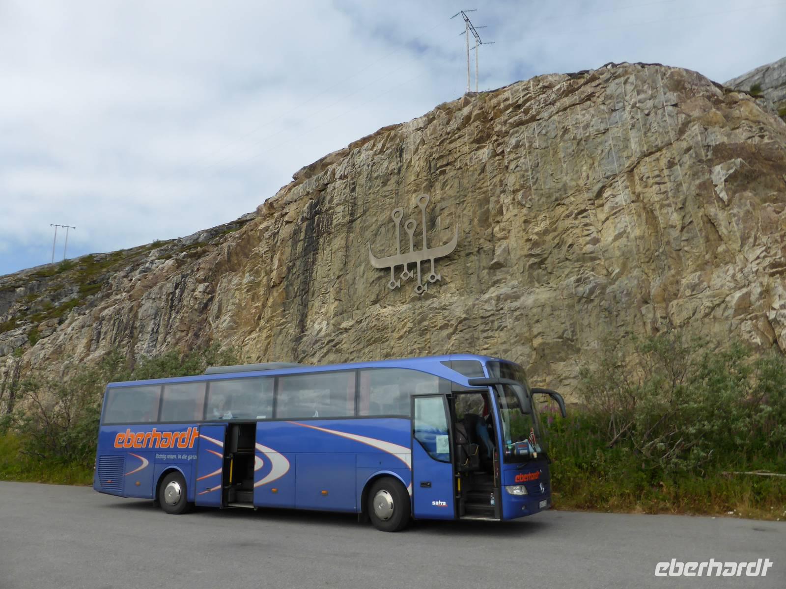 Nach einer verkürzten Nachtruhe in Honningsvag fuhren wir durch den Nordkaptunnel aufs Festland zurück. Die erste Pause legten wir wieder am Olderfjord ein und von dort ging es durch die Finnmarksvidda über eine fast baumlose bezaubernde Landschaft mit vielen Bergen, Sträuchern, Mooren und Seen, welche Sennalandet genannt wird. Nach dieser Fahrt kam der Alta-Fjord in Sicht. Alta ist die größte Stadt in der Provinz Finnmark. Dass die Stadt in ihren Ausmaßen wächst, sieht man an den vielen neuen Gebäuden, den farbenfrohen Häusern und am kleinen Flughafen. Zur Mittagszeit hielten wir am Hjemmeluft-Museum mit den berühmten Felszeichnungen von Alta, die auf der Liste des Weltkulturerbes stehen. Danach begann unsere Führung mit Katharina, dem örtlichen Guide. Durch sie lernten wir die Entstehung und Bedeutung der in den Felsen geritzten Bilder kennen und erfuhren so auch viel über die kunstvollen Variationen und über die stilistischen Ausführungen der Motive. Vom Alta-Museum aus fuhren wir an die Mündung des Langfjord in den Altafjord. Hier hielten wir bei den Sami-Zelten. Vom Rentier-Geweih bis zum Norweger-Pullover konnte man hier alles kaufen. Nach diesem Stopp ging es zum Kvaenenfjord, wo wir von einem hoch gelegenen Aussichtspunkt fantastische Aufnahmen vom Fjord und die in ihm liegenden Schären machen konnten. Der Blick reichte sogar bis zur offenen See! Anschließend fuhren wir zu unserem Hotel „Welcome Inn Lyngskroa" in Oteren.