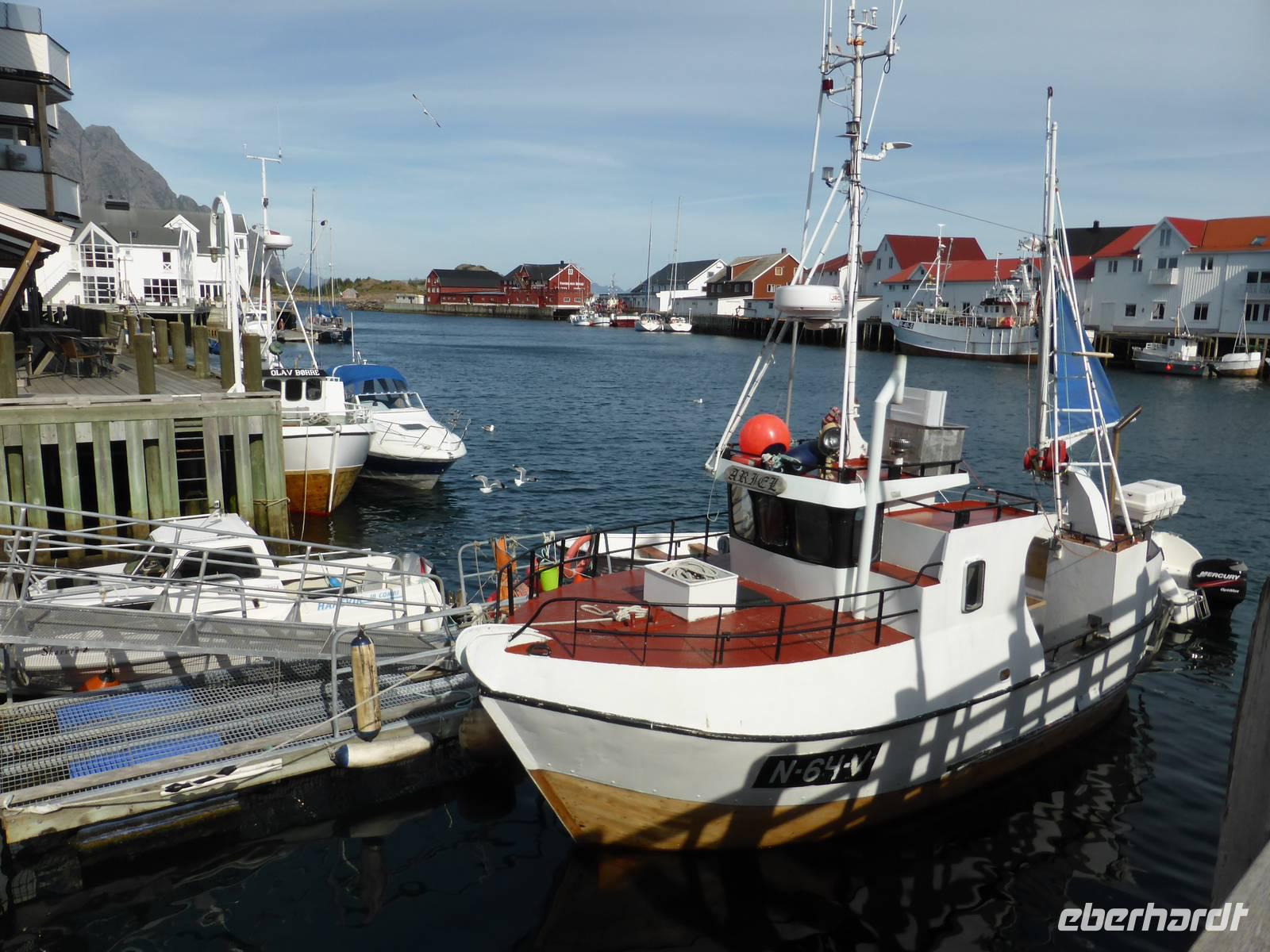 Von Borg aus fuhren wir zum kleinen Fischerdorf Henningsvaer, wobei die Anfahrt über die beiden schmalen Brücken ein Erlebnis wurde. Wir nutzten unseren Aufenthalt zum Bummeln durch die bunten Häuserzeilen und als ideales Fotomotiv für unsere Kameras. Von Henningsvaer aus ging es zu unserer Robu-Siedlung nach Mortsund zurück. Vor dem Abendessen besuchten wir Brigittes Vortrag über den Stockfisch und hatten auch Gelegenheit, getrockneten Fisch zu probieren.