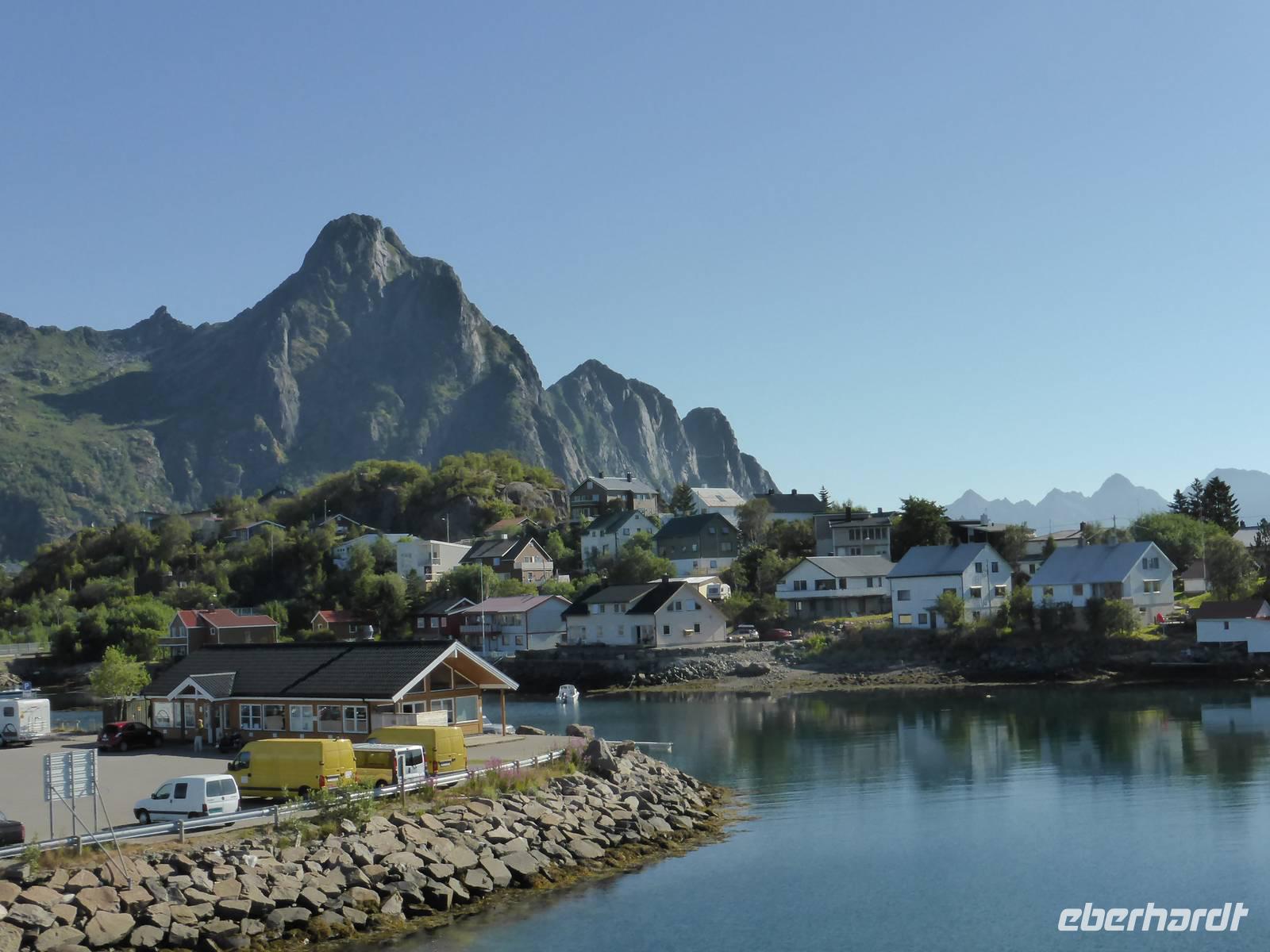 Am heutigen Morgen fuhren wir zeitig ab, um genügend Zeit auf dem Weg bis Stokmarknes zu haben. Nachdem wir in der Nähe des „Ovre Dividalen" - Nationalparks den Moselv-Fluss überquert hatten, regnete es stark. Wir fuhren durch das Bardu-Tal und von dort Richtung Narvik zum Ofotfjord. Überall entlang der Wegstrecke erinnerten kleine Kriegsdenkmäler an den Kampf um den eisfreien Erzhafen in Narvik im Verlauf des 2.Weltkrieges. Unsere nächste Pause legten wir am König Olafs- Weg, direkt an der Tjeldsund-Brücke, ein. Von hier hatten wir einen prächtigen Blick auf die Vesteralen-Insel Hinnoya. Anschließend fuhren wir weiter nach Stokmarknes. Hier wurde im Jahre 1893 die erste Linienverbindung von Trondheim nach Hammerfest eröffnet. Pünktlich legte die „MS Nordlys" in Richtung Svolvaer ab. Es war beeindruckend, zwischen den spitzen Bergmassiven der Vesteralen-Inseln hindurch zu fahren. Am aufregendsten war allerdings das Wendemanöver im schmalen Troll-Fjord, welches wir wohl immer in unserer Erinnerung behalten werden. Nach dieser traumhaften Fahrt auf der Hurtigrute kamen wir gegen 19.00 Uhr in Svolvaer auf den Lofoten an. Dort erwartete uns bereits Andreas zur Weiterfahrt zu unseren Rorbu-Hütten in Mortsund. Nach der Begrüßung bezogen wir unsere Zimmer und trafen uns anschließend zum gemeinsamen Abendessen.