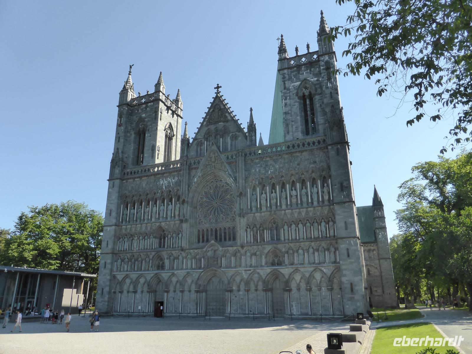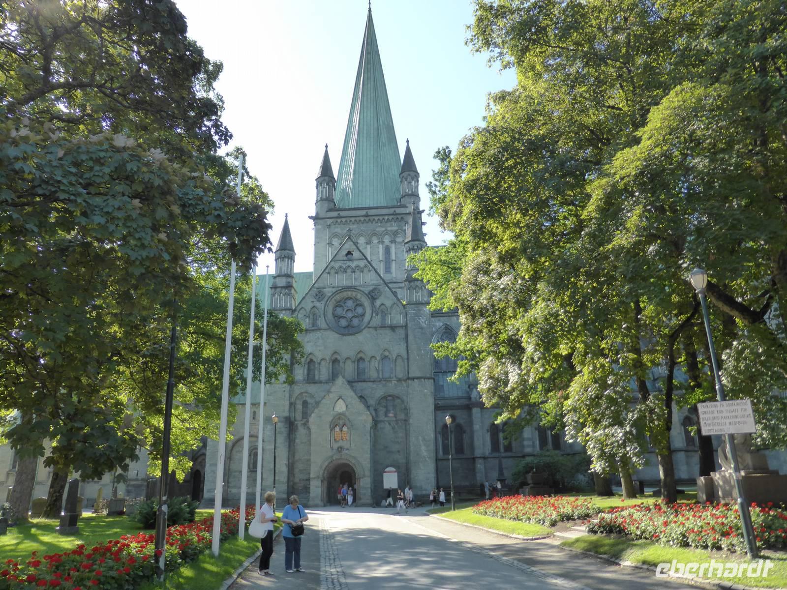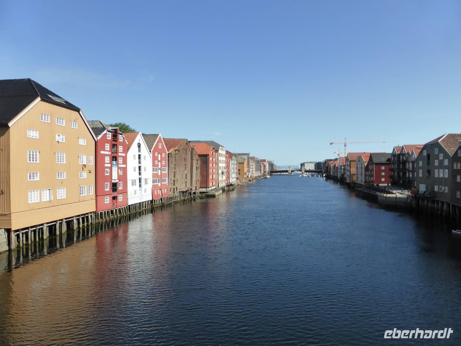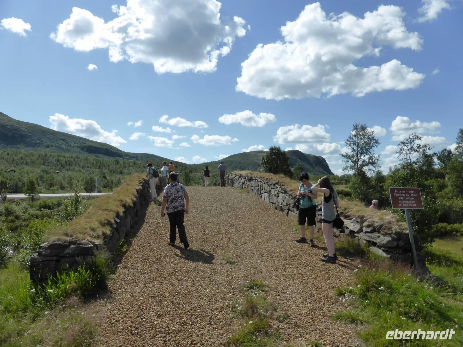 Nach dem Frühstück begann unsere Fahrt in die ehemalige Krönungsstadt der norwegischen Könige Trondheim. Dort angekommen, hielten wir am Nidaros-Dom. Nach einer kleinen Pause spazierten wir zur Bybrua (Bybrücke) und zu den hölzernen Lagerhäusern, die auf Pfählen am Ufer des Flusses Nidelva stehen. Die beiden Häuserreihen sind immer wieder ein schönes Fotomotiv. Von den Lagerhäusern aus gingen wir dann gemeinsam an der Frauenkirche vorbei bis zum Torget, dem Marktplatz, in dessen Mitte die Säule mit dem Standbild Olav Tryggvasons steht. Anschließend war noch etwas Freizeit für den Besuch des Nidaros-Domes oder einen kleinen individuellen Stadtbummel. Von Trondheim aus fuhren wir über Oppdal auf das Dovrefjell und hielten am Aussichtspunkt Hjerkinn mit Blick auf den schneebedeckten Berg „Snohetta" (2236 m). Moschusochsen, die auch im Dovrefjell Nationalpark vorkommen, haben wir leider nicht gesehen. Dombas, der erste Ort im 200 km langen Gudbrandstal, ist Ausgangspunkt für viele Aktivitäten in die Umgebung. Hier konnten wir Rentier- und Elchsalami kaufen. Auf der Weiterfahrt erfreuten wir uns an den historischen dunkelbraunen Bauernhöfen, die so typisch für diese Gegend sind. Der nächste Halt war an der Stabkirche von Ringebu. Da sie gerade restauriert wird, waren die Bauarbeiten noch im Gange und die Kirche für die Besichtigung geöffnet. Wir hatten Glück, denn normalerweise ist die Kirche um diese Uhrzeit bereits geschlossen. Unseren letzten Stopp machten wir am Schanzenauslauf in Lillehammer. Hier konnten wir noch die monumentale Feuerschale sehen, in der das Feuer der Winterolympiade 1994 angezündet wurde. Entlang des Mjoesa-Sees ging es danach zu unserem Scandic- Hotel in Hamar.
