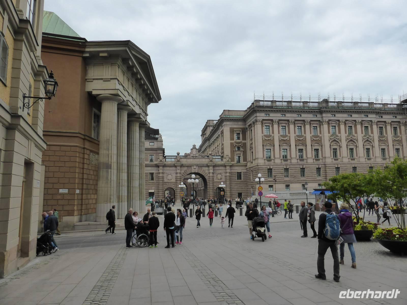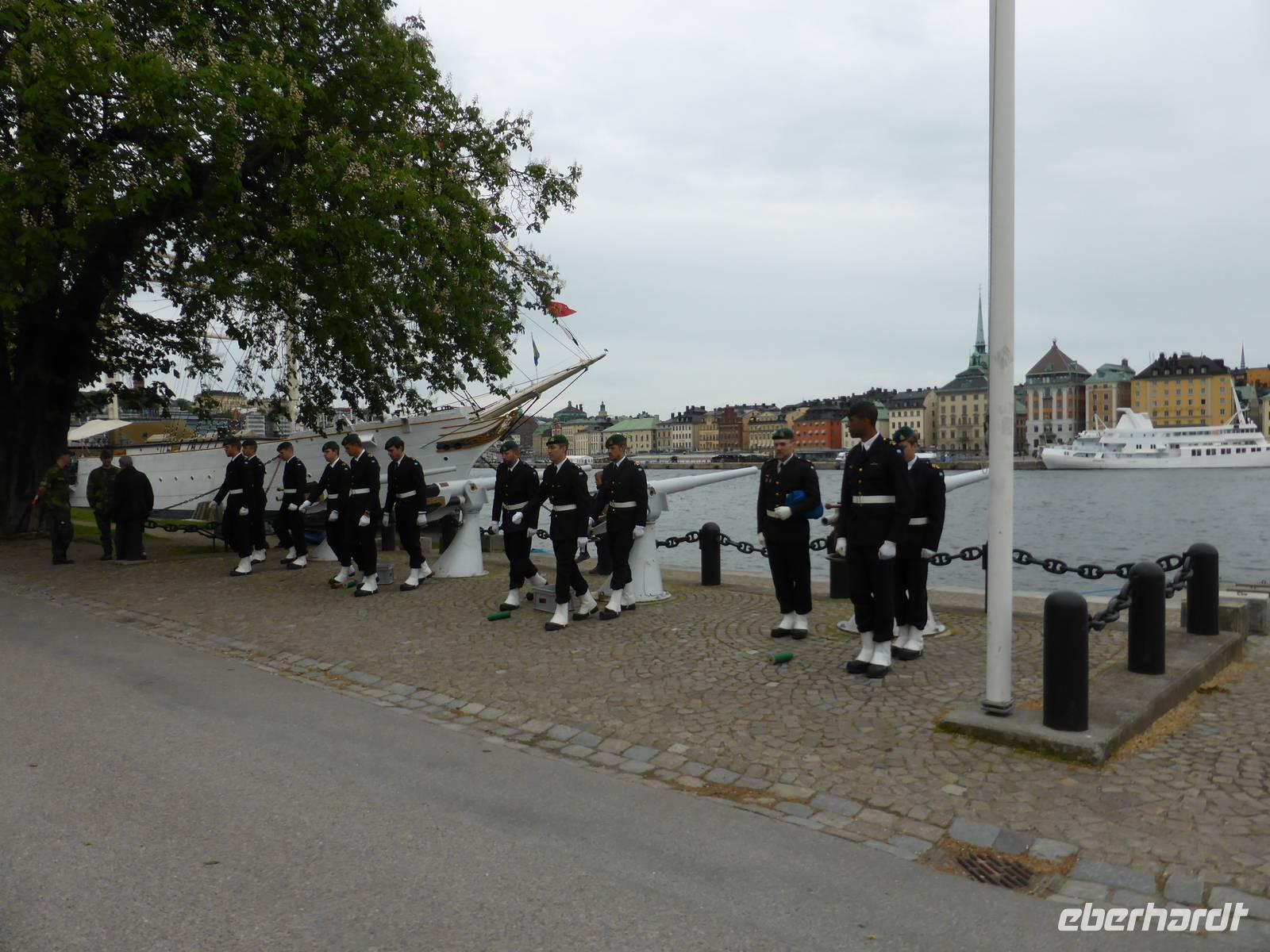 Nach dem Frühstück trafen wir uns mit unserer örtlichen Stadtführerin Gun. Leider stand sie am falschen Treffpunkt, wodurch wir einige Minuten vor dem Stockholmer Schloss warten mussten. Von dort fuhren wir gleich zum Vasa-Museum. Dieses am frühen Morgen zu besichtigen war eine gute Entscheidung, denn bei unserer Ankunft war der Busparkplatz noch leer. Das Vasa-Museum ist vielleicht das schönste Schiffsmuseum der Welt. Das einzige ausgestellte Schiff ist das Kriegsschiff Vasa, welches beim Stapellauf im Jahre 1628 im Stockholmer Hafen versank. Als wir nach dem Museumsbesuch unsere Stadtrundfahrt fortsetzten, war der Parkplatz bereits rappelvoll. Es ging auf Insel Djurgarden und wir sahen neben dem Nordischen Museum auch das Freilichtmuseum Skansen sowie mehrere ausländische Botschaften. Für den Nachmittag hatte sich die Königsfamilie für einen Besuch im Skansen-Museum angemeldet. Nach einem weiteren Fotostopp auf der Insel Skepsholmen hatten wir das Glück, einer Marineeinheit in Vorbereitung auf den königlichen Besuch beim Falten der Flaggen und beim Salutieren zusehen zu können. Anschließend fuhren wir auf die Südinsel „Söderholmen", von der aus wir einen grandiosen Blick auf die Stockholmer Altstadt hatten. Am Fuße der Altstadt endete unsere Stadtrundfahrt und Gun führte uns bis zur Deutschen Kirche. Im Anschluss hatten wir Freizeit für eigene Erkundungen. Viele von uns nutzten die Gelegenheit, der Wachablösung vor dem Stockholmer Schloss beizuwohnen. Gegen 12.15 Uhr marschierte die Kapelle zur Wachablösung vorbei. Nach unserer Freizeit trafen wir uns wieder am Bus und es ging weiter Richtung Norden.Am Nachmittag machten wir unseren letzten Halt an den hölzernen Speicherhäusern in Hudviksvall. Wir hatten Glück, denn in dem kleinen Städtchen fand gerade so etwas wie eine Art Sängerwettbewerb statt. Anschließend ging es zu unserem Hotel „Strand" in Sundsvall. Die Stadt ist unter Oldtimerfreunden bekannt, da „Ladies Race" zieht in jedem Jahr Gäste aus nah und fern an.