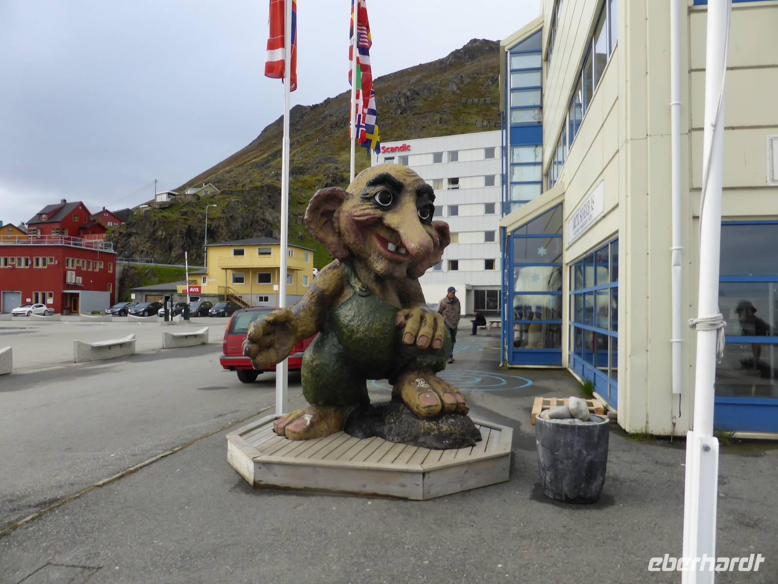Nach dem Frühstück fuhren zum Inari-See, dem heiligen See der Samen. An einer Blockhütte, genannt "Bärenhöhle" machten wir einen kurzen Zwischenstopp. Ein weiterer Höhepunkt des Tages war der Besuch des Siida-Museums in Inari. Hier erhielten wir viele Informationen über den Alltag der Sami und das Leben mit der langen Dunkelheit im Winter. Anschließend gaben wir das bestellte Mittagessen aus und danach ging es weiter Richtung Finnmark. In Karasjok, der ersten norwegischen Stadt, besuchten wir das Informationszentrum und tauschten unsere Euro in norwegische Kronen. Nach Fotostopps am Porsangerfjord und einer Pause in Olderfjord kamen wir gegen 17.40 Uhr am Rica Hotel in Honningsvag an. Nach dem Abendessen fuhren wir um 21.15 Uhr erwartungsvoll zum Nordkap ab. Während der ca. 45 minütigen Fahrt war das Wetter sehr wechselhaft und obwohl sich keine Sonne zeigte, hatten wir zumindest eine außerordentlich gute Fernsicht. Bei unserer Ankunft am Nordkap war der Himmel leider immer noch bedeckt. Wir hofften während unseres Aufenthaltes auf Wetter-Besserung, aber die Sonne schaffte es nicht durchzubrechen. Trotzdem war es ein riesiges Erlebnis, nach der langen und erlebnisreichen Fahrt das Nordkap erreicht zu haben!