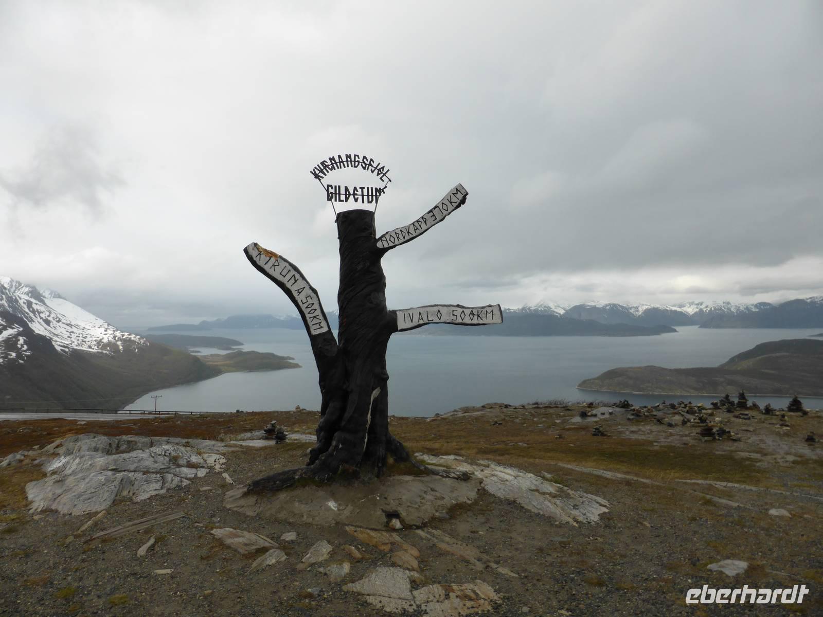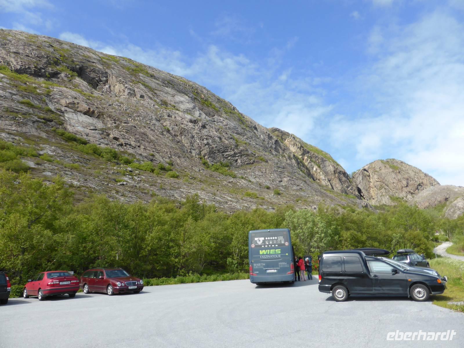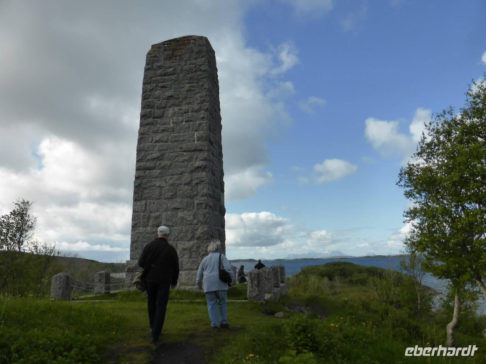 Am heutigen Morgen fuhren wir zeitig ab, um genügend Zeit auf dem Weg bis Stokmarknes zu haben. Nachdem wir in der Nähe des „Ovre Dividalen" - Nationalparks den Moselv-Fluss überquert hatten, regnete es ziemlich stark. Wir fuhren durch das Bardu-Tal zum Gratangen-Fjord-Hotel. Überall entlang der Wegstrecke erinnerten kleine Kriegsdenkmäler an den Kampf um den eisfreien Erzhafen in Narvik im Verlauf des 2.Weltkrieges. Auf der Weiterfahrt entlang des Ofotfjords wurden wir von Zollbeamten, die hochporzentigen Alkohol suchten, herausgewunken. Wir hatten nichts zu befürchten.