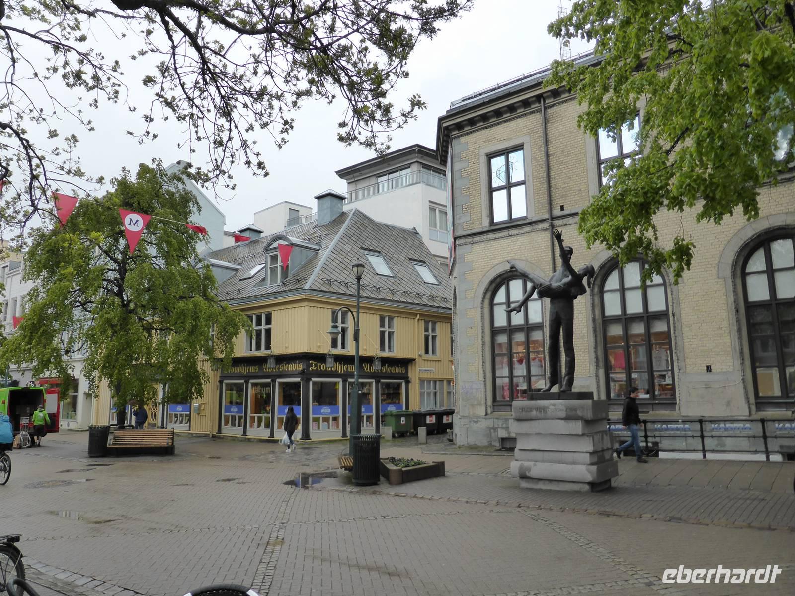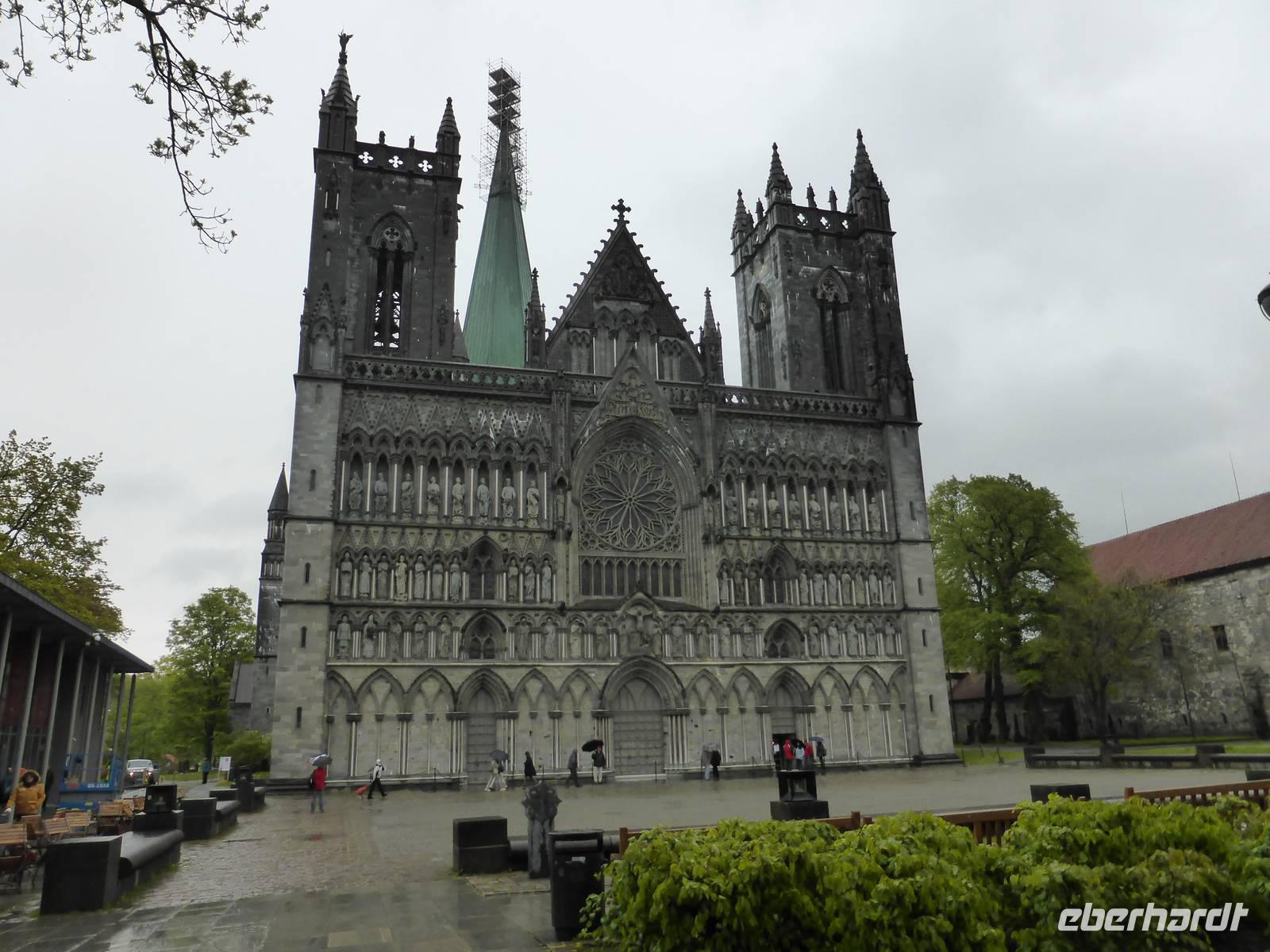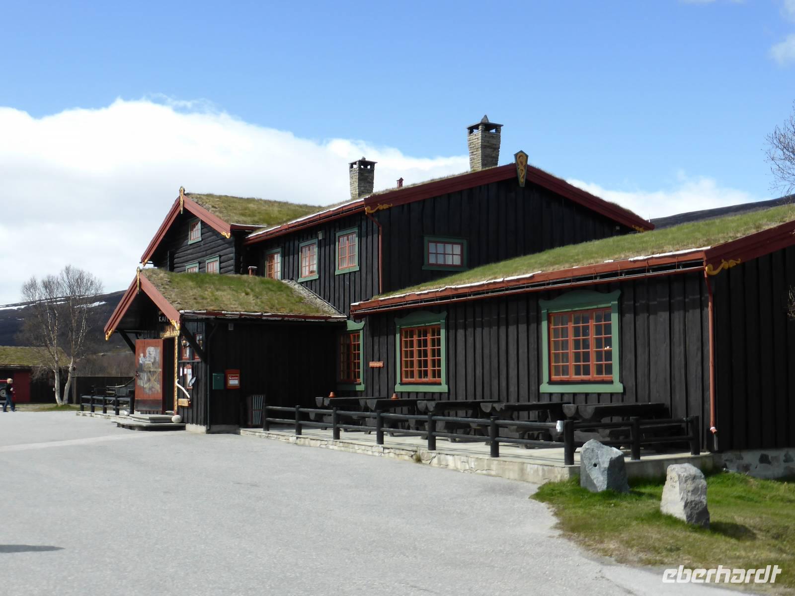 Nach dem Frühstück begann unsere Fahrt in die ehemalige Krönungsstadt der norwegischen Könige, Trondheim. Dort angekommen, hielten wir am Nidaros-Dom. Leider regnete es bei unserer Ankunft. Wir spazierten nach einer kleinen Pause zur Bybrua (Bybrücke) und zu den hölzernen Lagerhäusern, die auf Pfählen am Ufer des Flusses Nidelva stehen. Die beiden Häuserreihen sind immer wieder ein schönes Fotomotiv. Von den Lagerhäusern aus gingen wir dann gemeinsam an der Frauenkirche vorbei bis zum Torget, dem Marktplatz, in dessen Mitte die Säule mit dem Standbild Olav Tryggvasons steht. Anschließend war noch etwas Freizeit für den Besuch des Nidaros-Domes oder einen kleinen individuellen Stadtbummel. Von Trondheim aus fuhren wir über Oppdal auf das Dovrefjell und hielten am Aussichtspunkt Hjerkinn mit Blick auf den schneebedeckten Berg „Snohetta" (2236 m). Moschusochsen, die auch im Dovrefjell Nationalpark vorkommen, wollen zwar einige aus unserer Gruppe gesehen haben, aber so recht glauben wollte das keiner. Unser nächster Aufenthalt war in Dombas, dem ersten Ort im 200 km langen Gudbrandstal und Ausgangspunkt für viele Aktivitäten in die Umgebung. Hier konnten wir Rentier- und Elchsalami kaufen. Auf der Weiterfahrt erfreuten wir uns an den historischen dunkelbraunen Bauernhöfen, die so typisch für diese Gegend sind. Der nächste Halt war an der Stabkirche von Ringebu. Unseren letzten Stopp machten wir am Schanzenauslauf in Lillehammer. Hier konnten wir noch die monumentale Feuerschale sehen, in der das Feuer der Winterolympiade 1994 angezündet wurde. Entlang des Mjoesa-Sees ging es danach zu unserem Scandic-Hotel in Hamar.