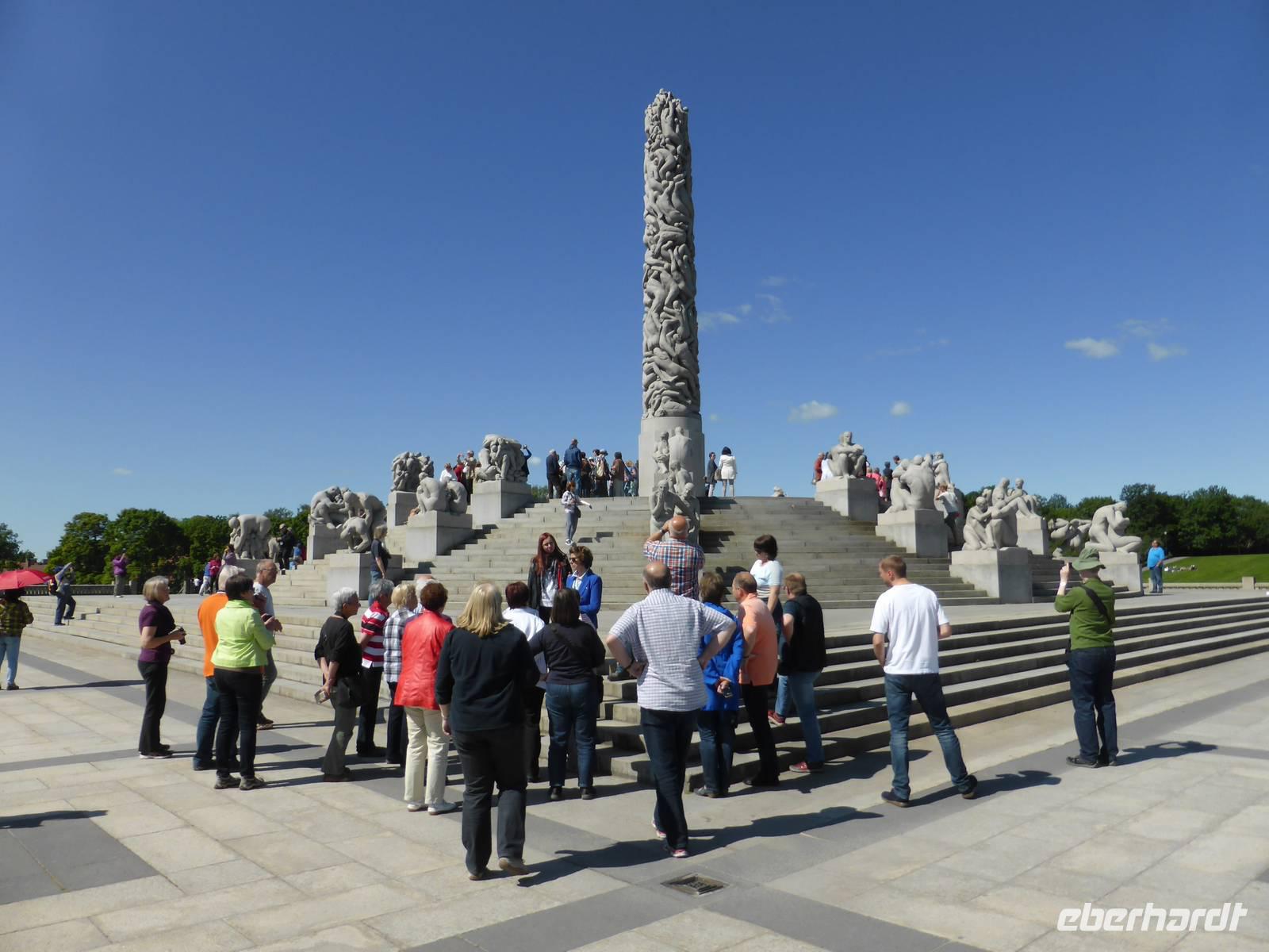 Von Hamar aus fuhren wir zunächst zum Osloer Flughafen und verabschiedeten unsere Fluggäste. Danach ging es zum Osloer Schloss Akerhus, dem Treffpunkt mit unserer örtlichen Reiseleiterin Jutta. Pünktlich zur vereinbarten Zeit begann unsere Stadtrundfahrt durch die norwegische Hauptstadt, entlang der Karl-Johann-Gatan zum königlichen Schloss bis zum Gustav-Vigeland-Park. Der Park mit seinen unzähligen Granit- und Bronzeskulpturen ist das beliebteste Ausflugsziel der Osloer. Von dort ging es dann zu einem längeren Fotostopp am Kontiki/ Fram-Museum. Zurück in der Innenstadt verabschiedeten wir unsere Stadtführerin und machten einen letzten Fotostopp am Opernhaus, einem weißen modernen und futuristischen Bau, der an einen Eisberg oder an eine Eisscholle erinnern soll. Danach fuhren wir weiter in Richtung Schweden. Gegen 17.30 Uhr kamen wir in Göteborg am Fährterminal der Stena Line an. Nach dem Bezug unserer Kabinen trafen wir uns wieder zum gemeinsamen Abendessen im Buffet-Restaurant. Obwohl die Auswahl der Speisen überwältigend war, wollten alle so schnell wie möglich an Deck, um die Fahrt entlang des Schärengürtels zu genießen.