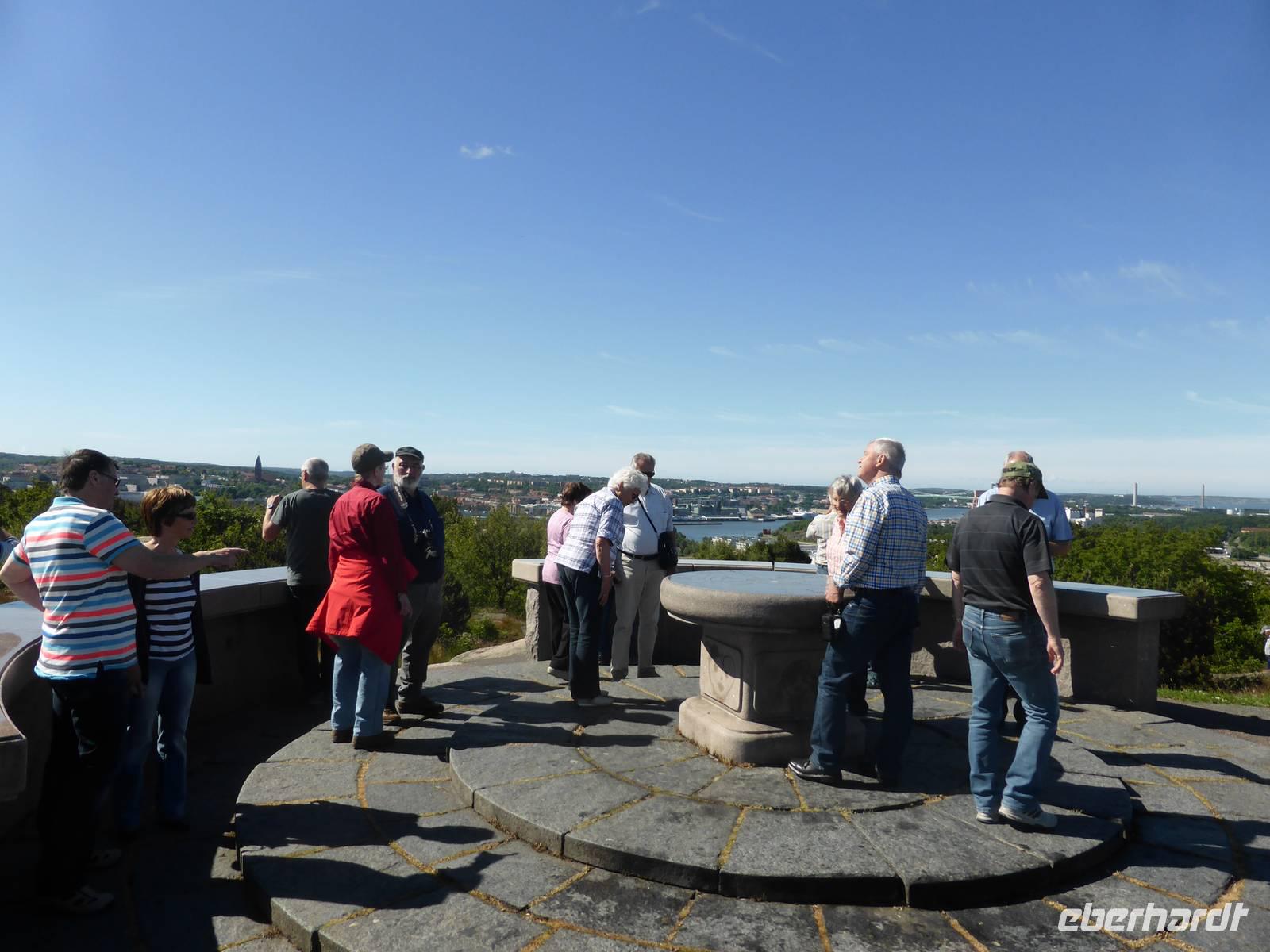 In Schweden begrüßte uns die Schärenlandschaft Göteborgs sowie Peter Möbius, unser Chauffeur für die kommenden Tage. Strahlend blauer Himmel sollte uns bis zum Nordkap begleiten. Durch die waldreiche mittelschwedische Landschaft fuhren wir nach Stockholm. Nach unserer Mittagspause beim Schloss Brahehus, das in den 1640er Jahren für Graf Per Brahe erbaut wurde erreichten wir den bekannten Runenstein Rökstenen. Anschließend besuchten wir die Schleusentreppe in Berg vom Götakanal. Der Götakanal wurde 1832 eröffnet und war eine wichtige Möglichkeit Holz und Eisen zwischen Stockholm und Göteborg zu transportieren. Heute schippern nur noch die Freizeitkapitäne entlang des Kanals. Auch wir hatten Glück beim Schleusen zu zusehen.