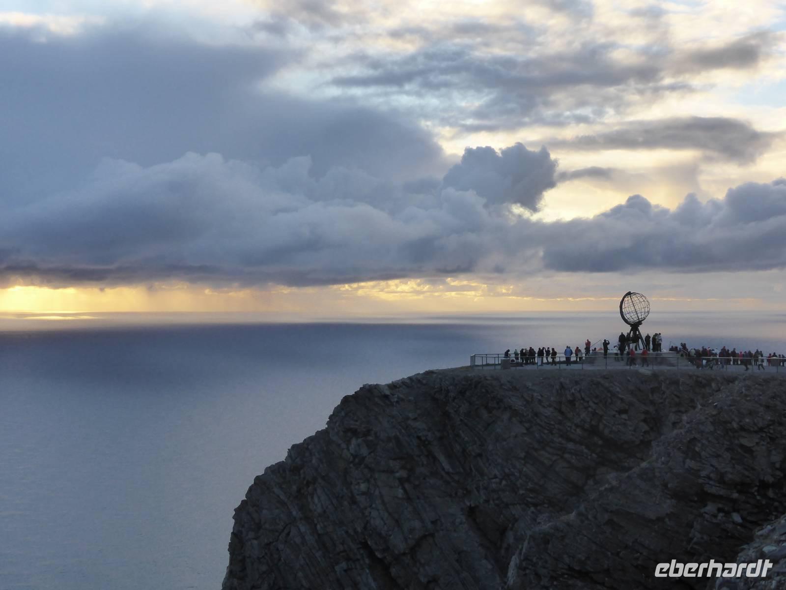Heute war es endlich soweit - unser Ziel das Nordkapp rückte immer näher. Bei strahlend blauem Himmel setzten wir unsere Reise nach Norden fort. Doch zuerst genossen wir die Aussicht vom Hausberg von Saariselkä - den Kaunispaää - tolle Sicht über die Weiten der finnischen Wälder. Nach einem kurzen Stopp am Inari See erreichten wir die Bärenhöhle. Dabei handelt es sich um einen Gletschermühle, in der der Legende nach ein Bär und ein Mensch einst zusammen Schutz gesucht hatten. Beeindruckend war der Besuch des Saiidi Museum in Inari. Das finnische Samenmuseum präsentiert das Urvolk der Samen auf eine besondere Art und Weise. Die Eismeerstrasse führte uns dann direkt an die Grenze nach Norwegen. Auf norwegischer Seite passierten wir Karasjok, dem Hauptort der norwegischen Samen. Mit der Grenze kamen einige Regenwolken, die sich dann auch öffneten. Wir hatten schon unsere Bedenken, aber am Horizont wurde es wieder heller. Unser erster Fjord war der Porsangerfjord. Er reicht ca. 145 km ins Landesinnere und ist flächenmäßig einer der größten des Landes. Durch das 6870 m lange Nordkaptunnel und 220 m unter dem Meeresspiegel erreichten wir die Nordkapinsel Mageroya. In Honningsvag bezogen wir das Scandic Hotel. Nach dem Abendessen chauffierte uns dann Claudian ans Nordkapp bei recht schönem Wetter. Das Wolkenspiel faszinierte uns. Bei recht gutem Wetter und frischen sechs Grad erreichten wir das Nordkapp. Die Mitternachtssonne zog uns in ihren Bann. Wir konnten die gesamte Eismeerküste überblicken und natürlich auch den 307 m hohen Nordkapfelsen.