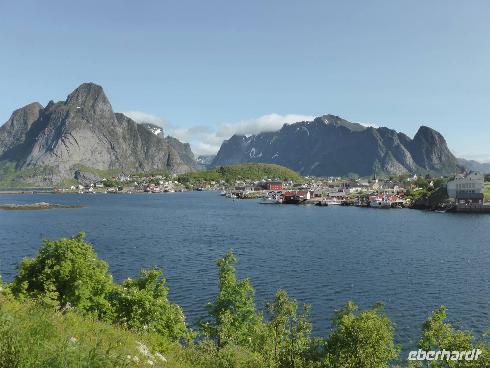 Nach dem Frühstück verließen wir Mortsund und leider auch die Lofoten. Petrus war uns hold - es schien die Sonne und wir erfreuten uns an der traumhaften Natur der Lofoten. Das schlechte Wetter des vergangenen Tages war vergessen. Mit Stopps am Nappskaret (Pass) sowie Reine erreichten wir Moskenes. Dort wartete bereits unsere Fähre nach Bodö.