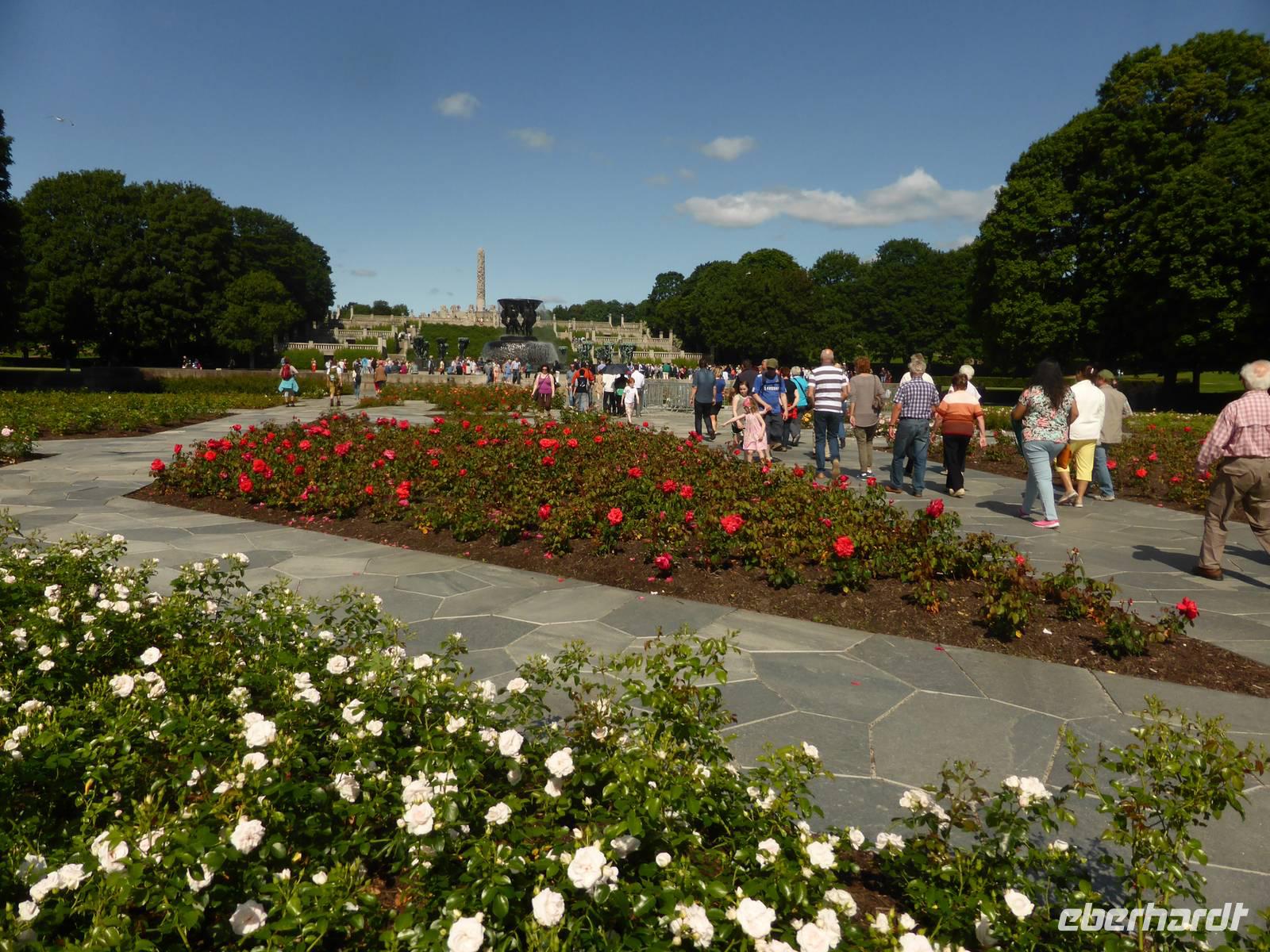 Jetzt neigt sich die Reise langsam dem Ende zu. Am Flughafen verließen uns die ersten Gäste, um nach Hause zu fliegen. Alle anderen setzen die Busreise nach Oslo fort. Wir wurden bereits von unserer Stadtführerin Stefanie erwartet. Sie zeigte uns ihre „Lieblingsstadt" auf eine ganz charmante Art und Weise. Beim Spaziergang durch den Vigelandpark bewunderten wir das Lebenswerk von Gustav Vigeland sowie die Blumepracht im Garten. Am Schluss blieb noch etwas Zeit am Rathaus für einen Bummel oder auch ein letztes Eis.