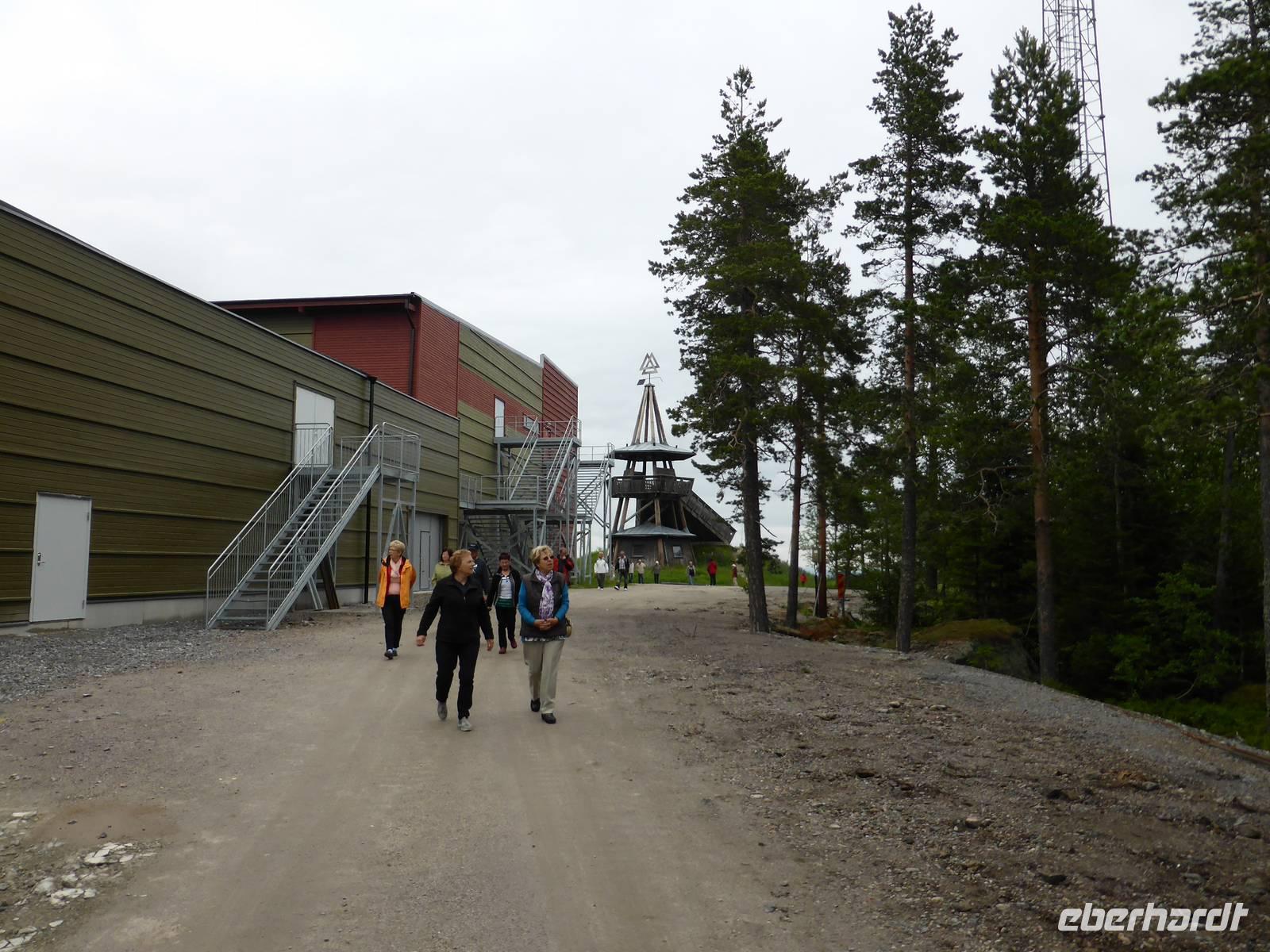 Am Morgen hieß es: Abschied nehmen von Lulea und Schweden. Unser letzter Halt war an der Kirche von Kalix. Über den Tornio-Fluss ging es nach Finnland. Nachdem wir die Uhr eine Stunde vorgestellt hatten, nutzten wir die Gelegenheit, um in einem finnischen Lebensmittelmarkt unsere Vorräte aufzufrischen und mit Euro zu bezahlen. Gegen Mittag kamen wir am Polarkreis und am Weihnachtsmanndorf bei Rovaniemi an. Einige von uns schrieben Karten, die dann erst zu Weihnachten vom Weihnachtsmann verschickt werden, andere ließen sich mit ihm fotografieren. Vom Weihnachtsdorf aus fuhren wir zur Holzkirche von Sodankylä. Es ist ein Wunder, dass eine Holzkirche aus dem Jahre 1689 die Zeit unbeschadet überstanden hat. Auf unserer Weiterfahrt nach Saariselkä ging es durch den Urho Kekkonen Nationalpark und vorbei am Goldwäscherdorf Tankavaara. Bevor wir in Saariselkä unser Hotel anfuhren, machten wir noch einen Abstecher auf den Kaunispää, mit 438 Metern ist er der Hausberg des kleinen Urlauberortes. Anschließend ging es zu unserem Lappland Hotel „Riekonlinna".