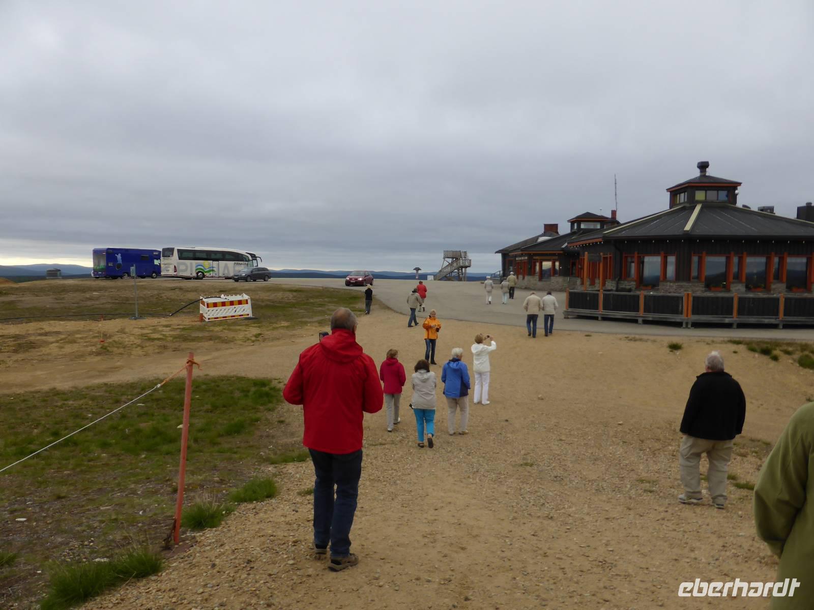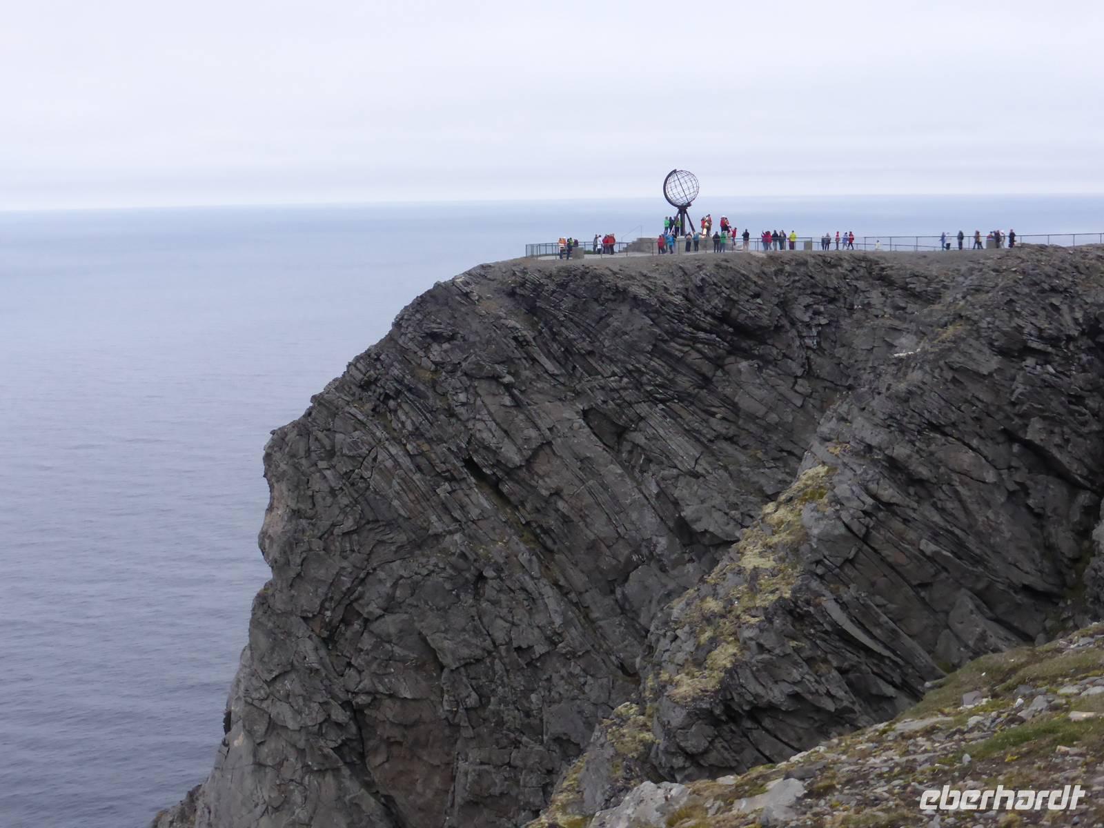 Nach dem Frühstück fuhren zum Inari-See, dem heiligen See der Samen. An einer Blockhütte, genannt "Bärenhöhle", machten wir einen kurzen Zwischenstopp. Ein weiterer Höhepunkt des Tages war der Besuch des Siida-Museums in Inari. Hier erhielten wir viele Informationen über den Alltag der Sami und das Leben mit der langen Dunkelheit im Winter. Anschließend gaben wir das bestellte Mittagessen aus und danach ging es weiter Richtung Finnmark. In Karasjok, der ersten norwegischen Stadt, besuchten wir das Informationszentrum und tauschten unsere Euro in norwegische Kronen. Nach Fotostopps am Porsangerfjord und einer Pause in Olderfjord kamen wir gegen 17.00 Uhr am Rica Hotel in Honningsvag an. Nach dem Abendessen fuhren wir um 21.15 Uhr erwartungsvoll zum Nordkap ab. Während der ca. 30 minütigen Fahrt war das Wetter sehr wechselhaft und obwohl sich keine Sonne zeigte, hatten wir zumindest eine gute Fernsicht. Bei unserer Ankunft am Nordkap war der Himmel leider immer noch bedeckt. Wir hofften während unseres Aufenthaltes auf Wetterbesserung, aber die Sonne schaffte es nicht durchzubrechen. Trotzdem war nach der langen und erlebnisreichen Fahrt ein riesiges Erlebnis das Nordkap erreicht zu haben!