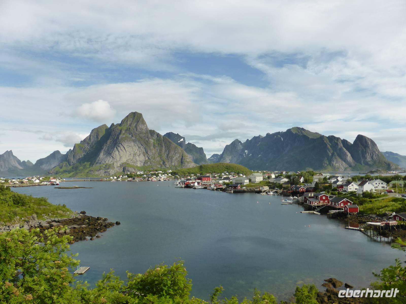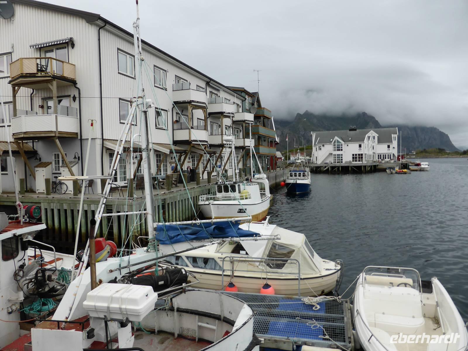 An diesem Morgen starteten wir zeitig, um genügend Zeit auf dem Weg bis nach Stokmarknes zu haben. Nachdem wir in der Nähe des „Ovre Dividalen" - Nationalparks den Moselv-Fluss überquert hatten, fuhren wir durch das Bardu-Tal zum Gratangen-Fjord-Hotel. Hier machten wir unsere Kaffeepause. Überall entlang der Wegstrecke erinnerten kleine Kriegsdenkmäler an den Kampf um den eisfreien Erzhafen in Narvik im Verlauf des 2.Weltkrieges. Unsere nächste Pause war am König Olafs- Weg, direkt an der Tjelsund-Brücke, an der wir einen prächtigen Blick auf die Vesteralen-Insel Hinnoya hatten. Anschließend fuhren wir weiter nach Stokmarknes. Hier wurde im Jahre 1893 die erste Linienverbindung von Trondheim nach Hammerfest eröffnet. Pünktlich legte die „MS Nordlys" in Richtung Svolvaer ab. Es war beeindruckend, zwischen den spitzen Bergmassiven der Vesteralen-Inseln hindurch zu fahren. Am aufregendsten war allerdings das Wendemanöver im schmalen Troll-Fjord, welches wir wohl immer in unserer Erinnerung behalten werden. Nach dieser traumhaften Fahrt auf der Hurtigrute kamen wir gegen 18.45 Uhr in Svolvaer auf den Lofoten an. Dort erwartete uns bereits Frank zur Weiterfahrt zu unseren Rorbu-Hütten in Mortsund. Nach dem Zimmerbezug trafen wir uns anschließend zum gemeinsamen Abendessen.