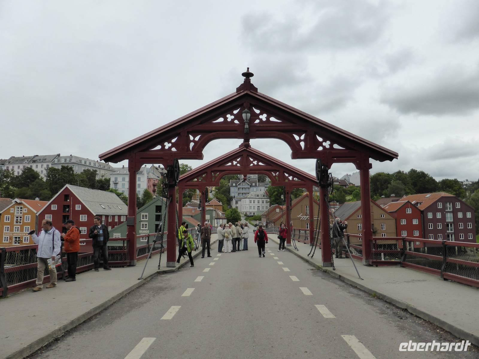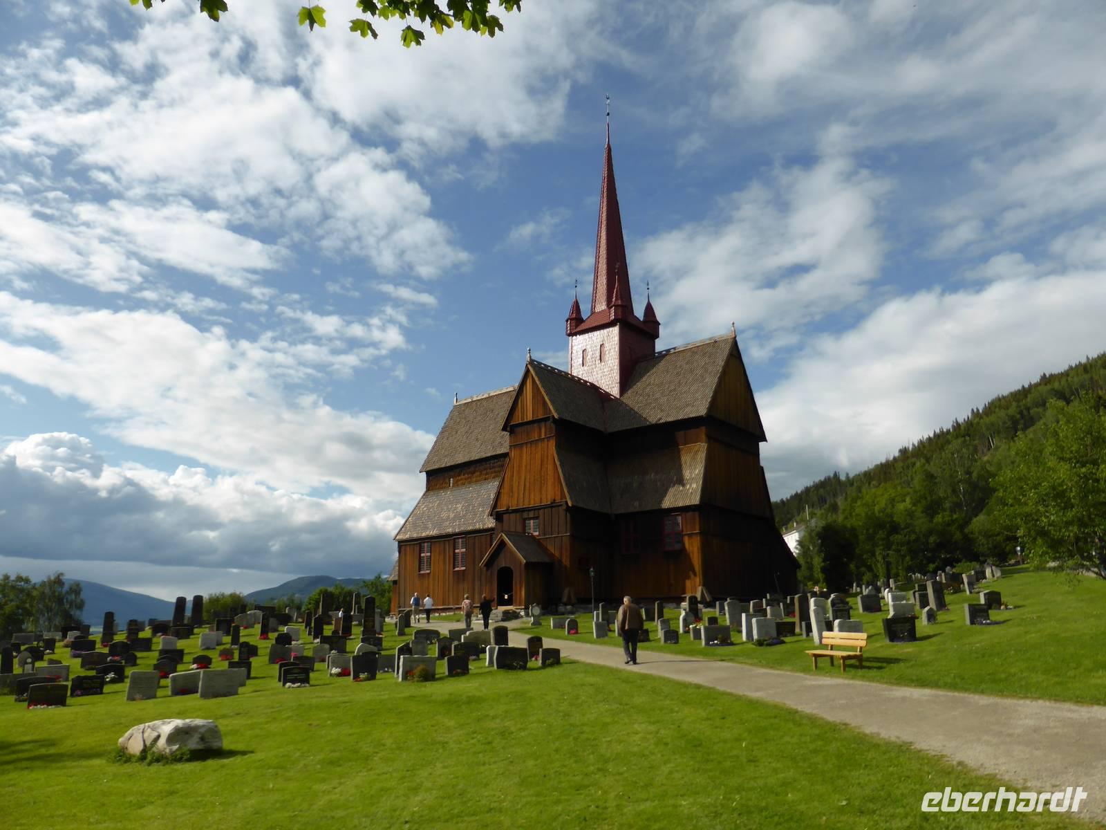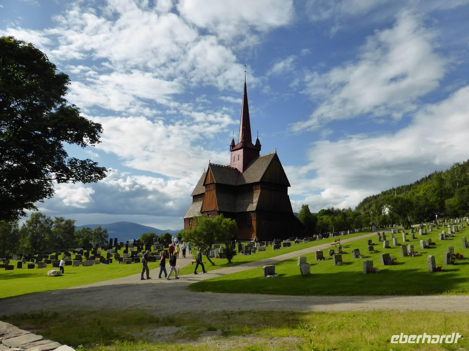 Nach dem Frühstück begann unsere Fahrt in die ehemalige Krönungsstadt der norwegischen Könige, Trondheim. Dort angekommen, hielten wir am Nidaros-Dom und spazierten nach einer kleinen Pause zur Bybrua (Bybrücke) und zu den hölzernen Lagerhäusern, die auf Pfählen am Ufer des Flusses Nidelva stehen. Die beiden Häuserreihen sind immer wieder ein schönes Fotomotiv. Von den Lagerhäusern aus gingen wir dann gemeinsam an der Frauenkirche vorbei bis zum Torget, dem Marktplatz, in dessen Mitte die Säule mit dem Standbild Olav Tryggvasons steht. Anschließend war noch etwas Freizeit für den Besuch des Nidaros-Domes oder einen kleinen individuellen Stadtbummel. Von Trondheim aus fuhren wir über Oppdal auf das Dovrefjell und hielten im Dovrefjell Nationalpark an der Dovregubbens Hall. Hier gingen wir ein Stück auf dem alten Königsweg über das Dovrefjell entlang. Unser nächster Aufenthalt war in Dombas, dem ersten Ort im 200 km langen Gudbrandstal und Ausgangspunkt für viele Aktivitäten in die Umgebung. Hier konnten wir Rentier- und Elchsalami kaufen. Auf der Weiterfahrt erfreuten wir uns an den historischen dunkelbraunen Bauernhöfen, die so typisch für diese Gegend sind. Der nächste Halt war an der Stabkirche von Ringebu. Unseren letzten Stopp machten wir am Schanzenauslauf in Lillehammer. Hier sahen wir die monumentale Feuerschale sehen, in der das Feuer der Winterolympiade 1994 angezündet wurde. Entlang des Mjoesa-Sees ging es danach zu unserem Scandic-Hotel in Hamar.