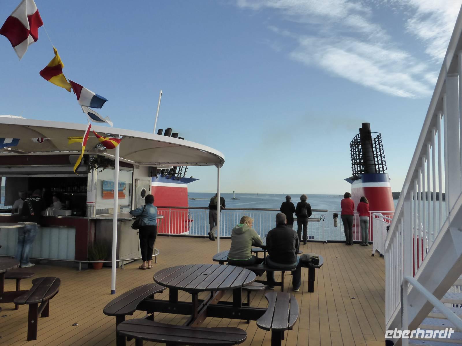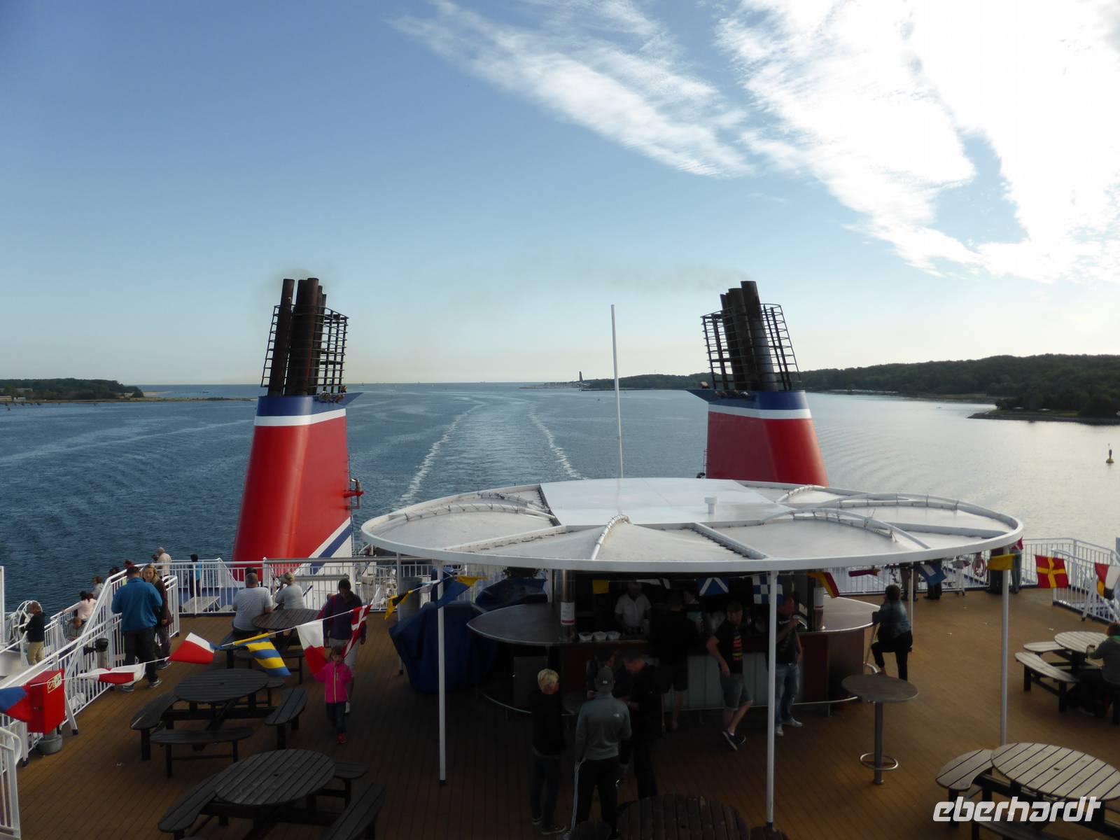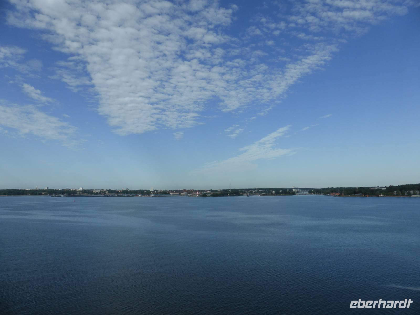 Unsere Reise begann am Flughafen Dresden. Entlang der Autobahn erfolgten weitere Zustiege am FH Leipzig und bei Halle-Peißen. Unsere Fahrtroute verlief über die A2 in Richtung Hannover und über die A7 durch die Lüneburger Heide nach Kiel. Gegen 15.00 Uhr kamen wir am Terminal der Stena Line in Kiel an und holten unsere Kabinenschlüssel ab. Nach dem Bezug der Kabinen war bis zum Abendessen noch etwas Freizeit für den Besuch der Kieler Innenstadt. Während wir langsam durch die Kieler Förde hinaus in die Ostsee fuhren, genossen wir im Panorama-Restaurant das skandinavische Buffet.