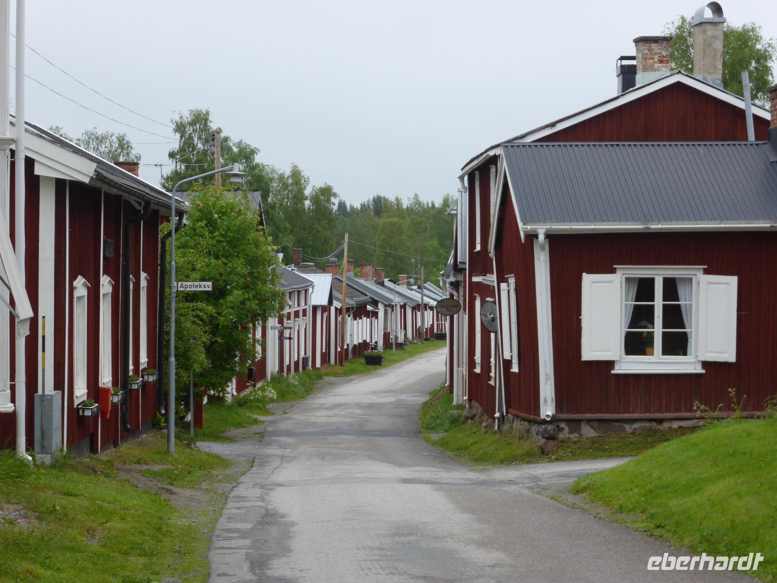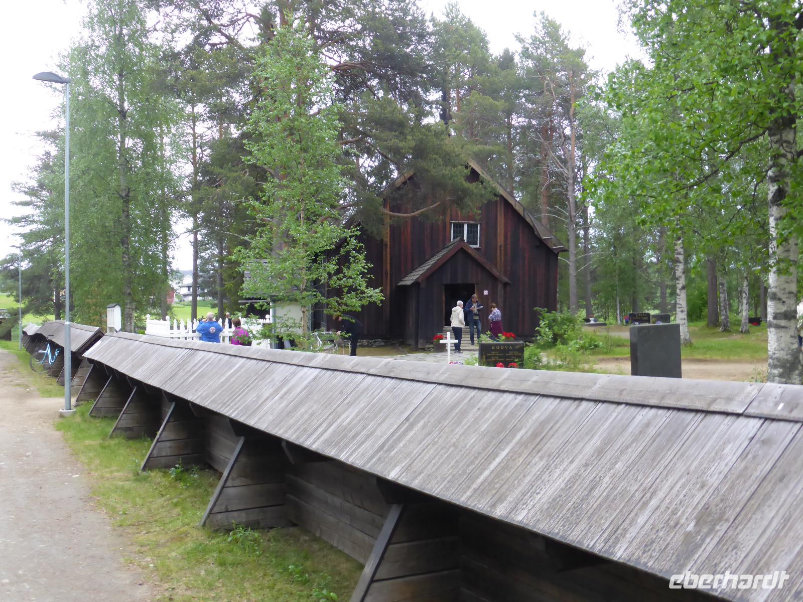 Als erstes fuhren wir hinauf zum Aussichtsberg „Södre Berget". Leider war es oben sehr neblig, so dass wir nur auf halber Höhe etwas von der schönen Aussicht hatten. Ein besonderes Erlebnis war die Fahrt entlang der „Hohen Küste" und unser Aufenthalt an der Högaküsten-Brücke, einem architektonischen Meisterwerk. Beschrieben wird sie als die neuntlängste Hängebrücke der Welt. Von dort ging es zur Olofsfors Eisenhütte, welche über 250 Jahre alt ist und heute als technisches Museum besichtigt werden kann. Die Eisenhütte gleicht einem kleinen Dorf mit alten Produktionsstätten, Wohnhäusern und Läden! Das Museumsgelände wählten wir auch gleich für unsere Mittagspause. Anschließend fuhren wir weiter zum Kirchdorf von Lövanger. Da früher die Anfahrtswege für die Bauern zur nächstgelegenen Kirche sehr weit waren und die Kirchgänge Pflicht waren, wurden überall in Schweden in der Nähe der Pfarrkirchen kleine Hütten für die auswärtigen Bauern und teilweise auch Ställe für ihr Vieh errichtet. Nach der mühevollen Anreise fanden sie hier für die Gottesdienste und Festtage eine sichere Unterkunft, bevor sie sich wieder auf den langen Heimweg machten. Unser letzter Stopp auf unserer Fahrt nach Lulea war am Leuchtturm von Jävre. Anschließend fuhren wir zu unserem Hotel „Quality" in Lulea.