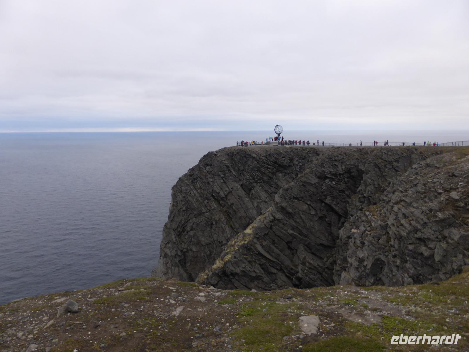 Nach dem Frühstück fuhren wir zum Inari-See, dem heiligen See der Samen. An einer Blockhütte, genannt "Bärenhöhle", machten wir einen kurzen Zwischenstopp. Ein weiterer Höhepunkt des Tages war der Besuch des Siida-Museums in Inari. Hier erhielten wir viele Informationen über den Alltag der Sami und das Leben mit der lang anhaltenden Dunkelheit im Winterhalbjahr. Anschließend gaben wir das bestellte Mittagessen am Bus aus und danach ging es weiter Richtung Finnmark. In Karasjok, der ersten norwegischen Stadt, besuchten wir das Informationszentrum und tauschten unsere Euro in norwegische Kronen. Nach Fotostopps am Porsangerfjord und einer Pause in Olderfjord kamen wir gegen 18.00 Uhr an der Galerie der Künstlerin Eva Schmutterer an. Sie erzählte uns über das Leben auf der Nordkapinsel und stellte uns anschließend ihre Bilder vor, deren Motive sie auch ausschließlich in dieser Landschaft findet. Gegen 19.00 Uhr erreichten wir das Scandic-Hotel in Honningsvag und nach dem Abendessen fuhren wir um 21.30 Uhr erwartungsvoll zum Nordkap ab. Während der ca. 30 minütigen Fahrt war das Wetter sehr wechselhaft und obwohl sich keine Sonne zeigte, hatten wir zumindest eine gute Fernsicht. Bei unserer Ankunft am Nordkap war der Himmel zwar leicht bedeckt, aber die Sicht war fantastisch und das Wetter trocken und mild. Nach der tagelangen Fahrt hatten wir endlich das Nordkap erreicht. Ein Grund, um nach dem Besuch der Nordkaphalle darauf anzustoßen.
