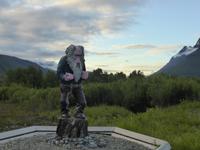 An diesem Morgen hieß es Abschied nehmen von den Lofoten und Svolvaer. Bei gutem Wetter fuhren wir mit dem Fährschiff über den Vestfjord nach Leknes. Anschließend ging es durch das Saltdal bis in den Nationalpark Saltfjell-Svartisen, wo wir beim RH Storjord/ Junkerdalen unsere Pause geplant hatten. Wir bereiteten ein kleines Picknick mit Moltebeer-Marmelade, Elch- und Rentiersalami, Kaviar und Fladen- bzw. Knäckebrot vor. Gegen 17.30 Uhr kamen wir am Polarkreis an. Dieses Mal war es uns aufgrund der kahlen Landschaft bewußter, am Polarkreis zu sein. Vereinzelt lag auch noch etwas Schnee. Unser Tagesziel war in Mo i Rana das Hotel „Meyergarden".