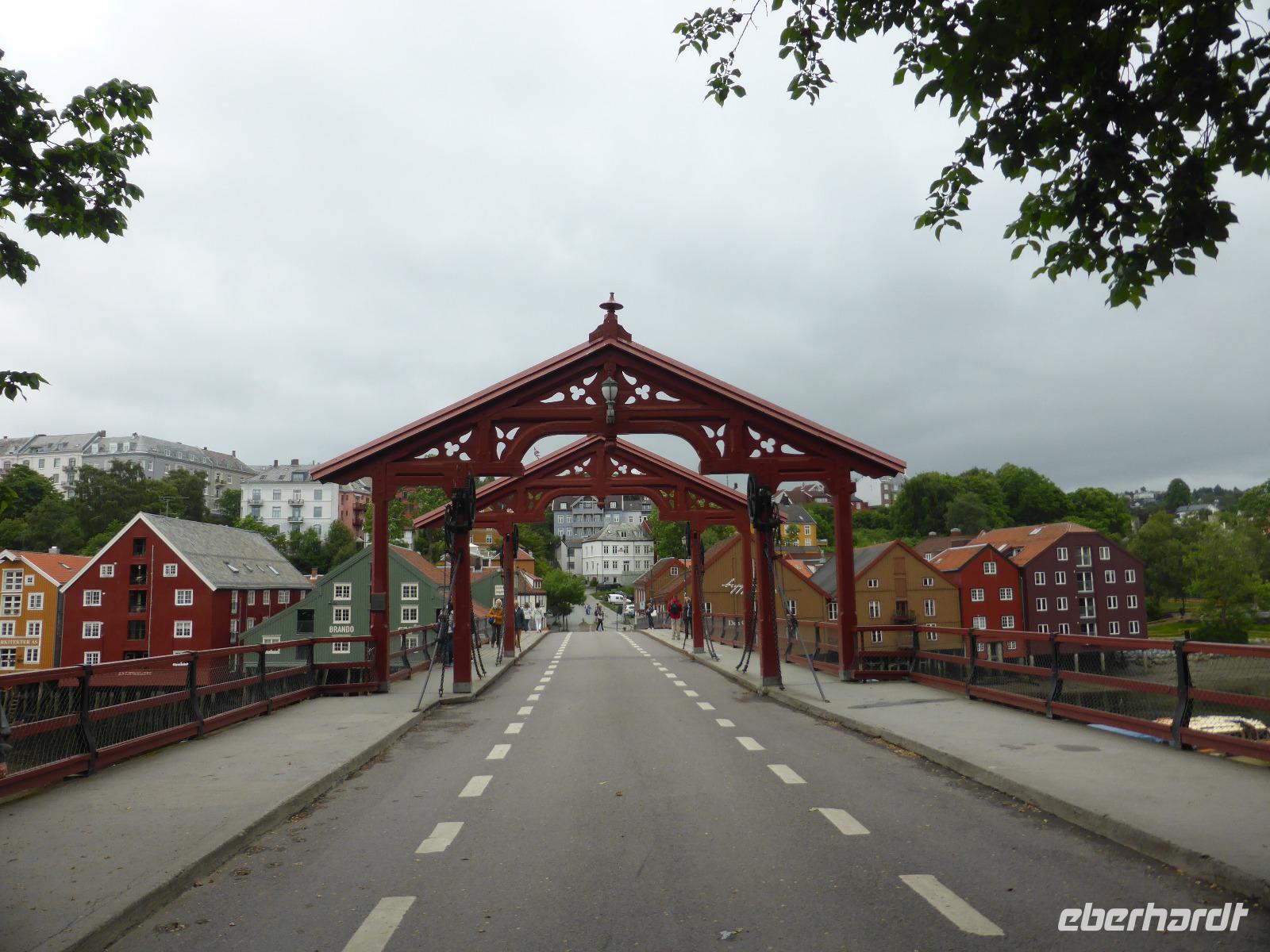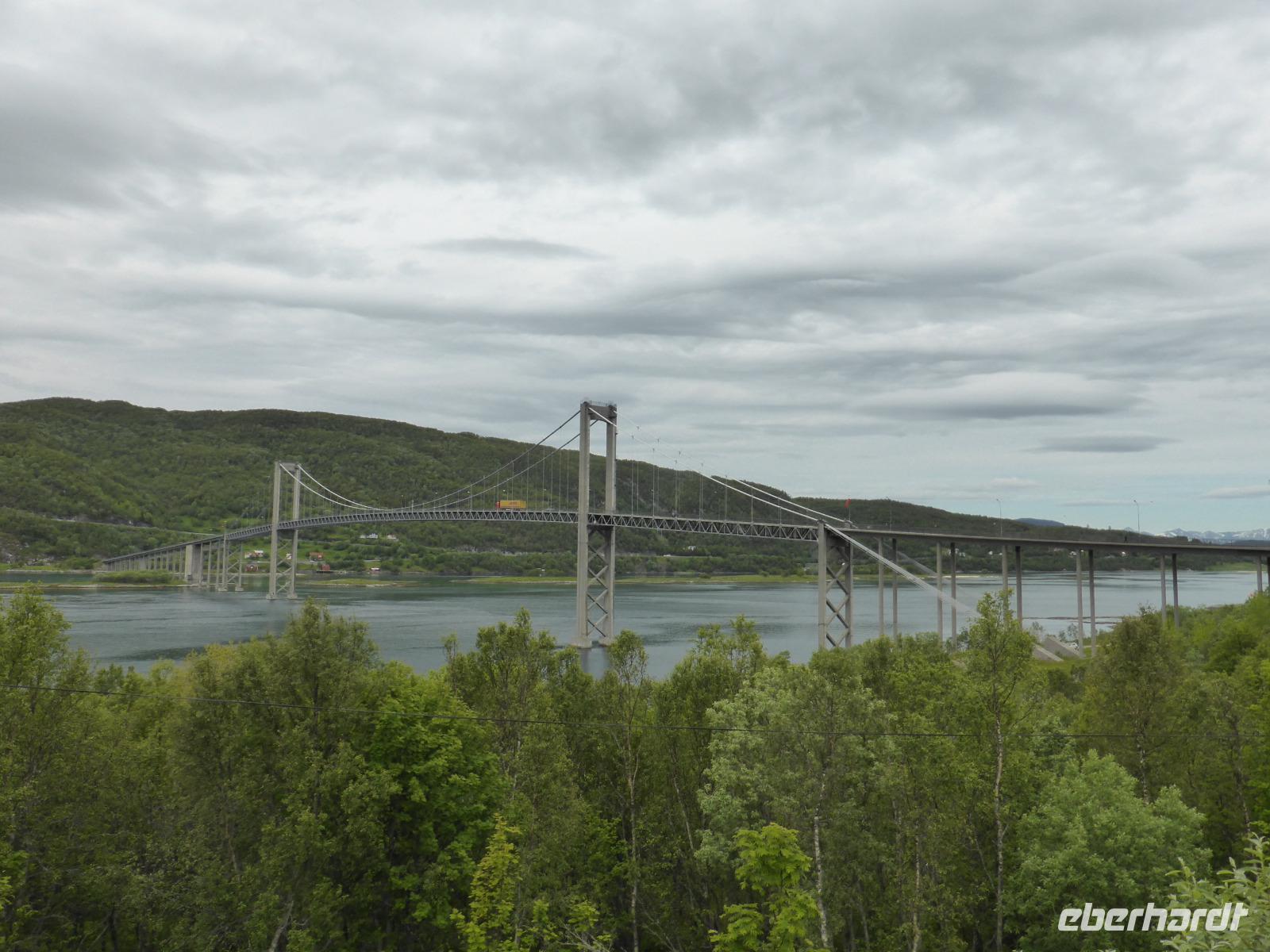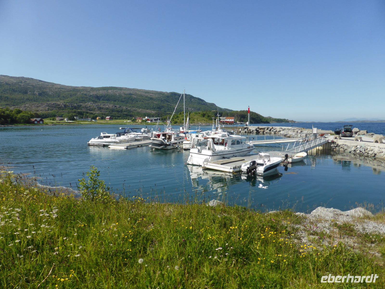 Am Morgen fuhren wir von Mo i Rana zunächst in südliche Richtung und später durch den fast 11 Kilometer langen Toventunnel nach Sandnessjoen. Dort gab es mit der weißen Helgelandbrücke, die sogar einmal zu Norwegens beliebtester Brücke gewählt worden war, eine architektonische Meisterleistung zu bewundern. Nach diesem Fotostopp ging es an der Bergkette der „Sieben Schwestern" vorbei, von denen die Bergspitzen leider hinter Wolken verborgen blieben. Die anschließende einstündige Fahrt mit der Fähre von Tjoetta nach Forvik war sehr angenehm und es boten sich viele schöne Fotomotive. Die zweite Fährpassage von Andalsvagen nach Horn dauerte nur 20 Minuten. Dort angekommen, machten wir einen Abstecher zur Brücke von Brønøysund, über welche wir spazierten und von der aus wir fantastische Aufnahmen vom Ort Brønøysund und vom Berg „Torghatten" machen konnten. Die Legende sagt, dass einst der König von Sömna seinen schützenden Hut vor das hübsche Mädchen Lekamoya warf, um es vor dem Pfeil des Hestmannes zu schützen. Der Pfeil durchbohrte genau in dem Moment den Hut, in dem die Sonne aufging und alles zu Stein erstarren ließ. Die Hutform des Torghatten ist heute noch gut zu erkennen, nur das Loch im Felsen kann man schwer finden. Die dritte und letzte Fähre brachte uns dann von Vennesund nach Holm. Nach einem Fotostopp am Parkplatz Heilhornet und einer weiteren Pause kamen wir am Abend im Hotel Tingvold in Steinkjer an.
