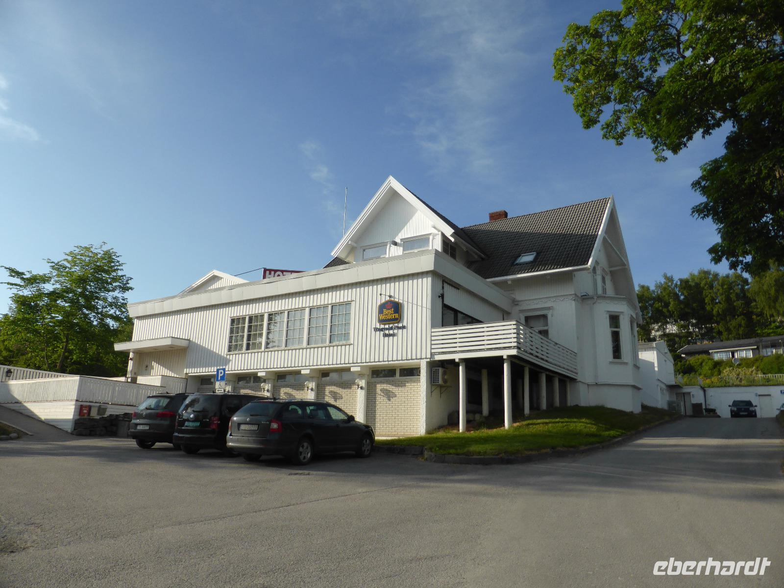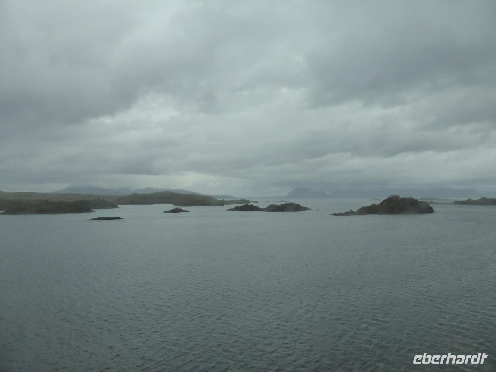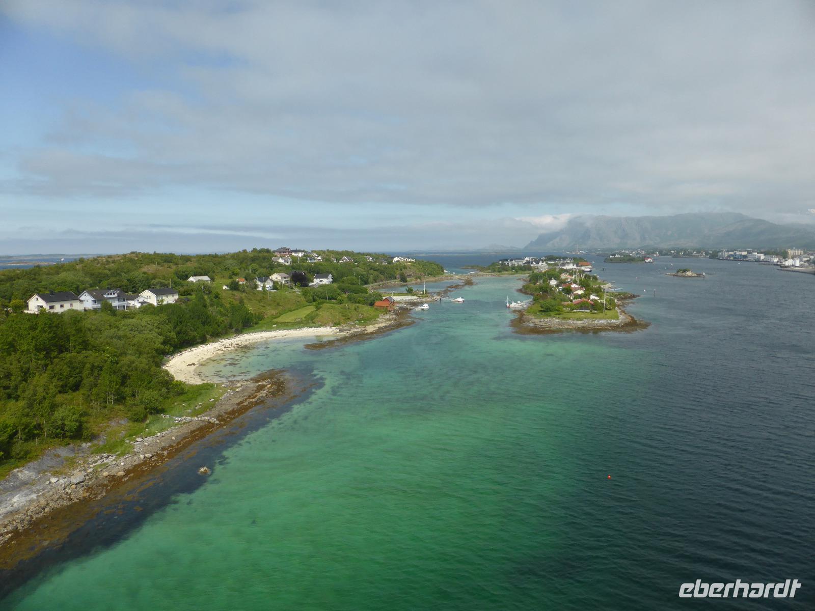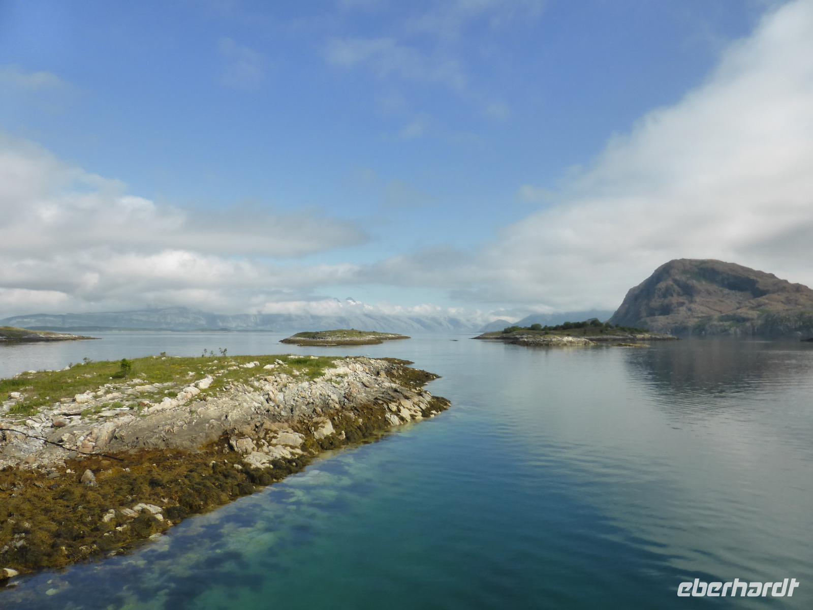 Am Morgen fuhren wir von Mo i Rana zunächst in südliche Richtung und später durch den fast 11 Kilometer langen Toventunnel nach Sandnessjoen. Dort gab es mit der weißen Helgelandbrücke, die sogar einmal zu Norwegens beliebtester Brücke gewählt worden war, eine architektonische Meisterleistung zu bewundern. Nach diesem Fotostopp ging es an der Bergkette der „Sieben Schwestern" vorbei, von denen die Bergspitzen leider hinter Wolken verborgen blieben. Die anschließende einstündige Fahrt mit der Fähre von Tjoetta nach Forvik war sehr angenehm und es boten sich viele schöne Fotomotive. Die zweite Fährpassage von Andalsvagen nach Horn dauerte nur 20 Minuten. Dort angekommen, machten wir einen Abstecher zur Brücke von Brønøysund, über welche wir spazierten und von der aus wir fantastische Aufnahmen vom Ort Brønøysund und vom Berg „Torghatten" machen konnten. Die Legende sagt, dass einst der König von Sömna seinen schützenden Hut vor das hübsche Mädchen Lekamoya warf, um es vor dem Pfeil des Hestmannes zu schützen. Der Pfeil durchbohrte genau in dem Moment den Hut, in dem die Sonne aufging und alles zu Stein erstarren ließ. Die Hutform des Torghatten ist heute noch gut zu erkennen, nur das Loch im Felsen kann man schwer finden. Die dritte und letzte Fähre brachte uns dann von Vennesund nach Holm. Nach einem Fotostopp am Parkplatz Heilhornet und einer weiteren Pause kamen wir am Abend im Hotel Tingvold in Steinkjer an.