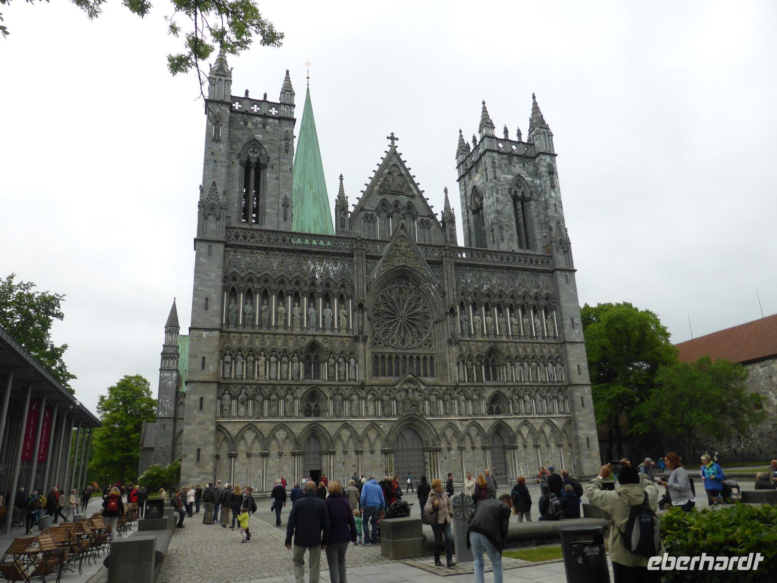 Nach dem Frühstück begann unsere Fahrt nach Trondheim, der ehemaligen Krönungsstadt der norwegischen Könige. Dort angekommen, besuchten wir den Nidaros-Dom und spazierten individuell zur Bybrua (Bybrücke) und zu den hölzernen Lagerhäusern, welche auf Pfählen am Ufer des Flusses Nidelva stehen. Die beiden Häuserreihen sind ein sehr schönes Fotomotiv. Im Zentrum Trondheims steht auf dem Marktplatz eine Säule mit dem Standbild des Stadtgründers Olav Tryggvason. Von Trondheim aus fuhren wir über Oppdal in Richtung Dovrefjell und sahen unterwegs gleich an zwei verschiedenen Stellen Elche. Im Dovrefjell Nationalpark hielten wir an der Dovregubbens Hall und gingen über eine steinerne Brücke entlang des alten Königswegs. Unser nächster Aufenthalt war in Dombas, dem ersten Ort des 200 km langen Gudbrandstals. Hier konnten wir Rentier- und Elchsalami kaufen. Auf der Weiterfahrt erfreuten wir uns an den historischen alten Bauernhöfen, die so typisch für diese Gegend sind. Der nächste Halt war an der Stabkirche von Ringebu und unseren letzten Stopp machten wir am Schanzenauslauf in Lillehammer. Entlang des Mjoesa-Sees ging es danach zu unserem Scandic-Hotel in Hamar.