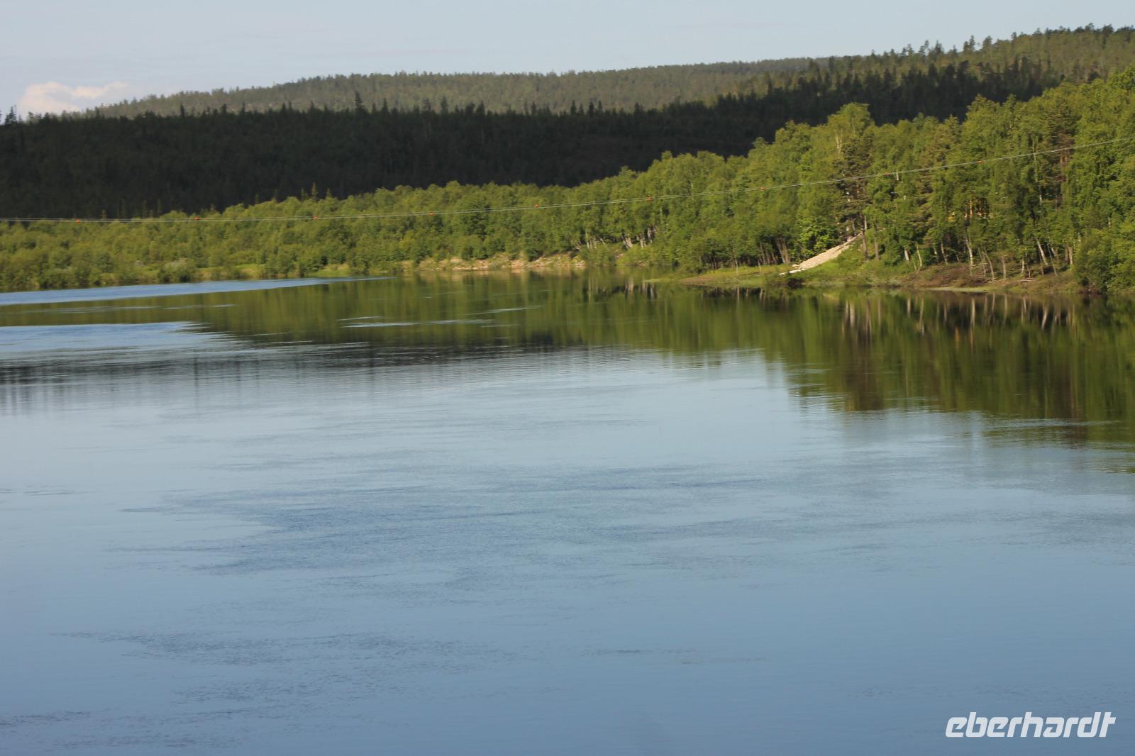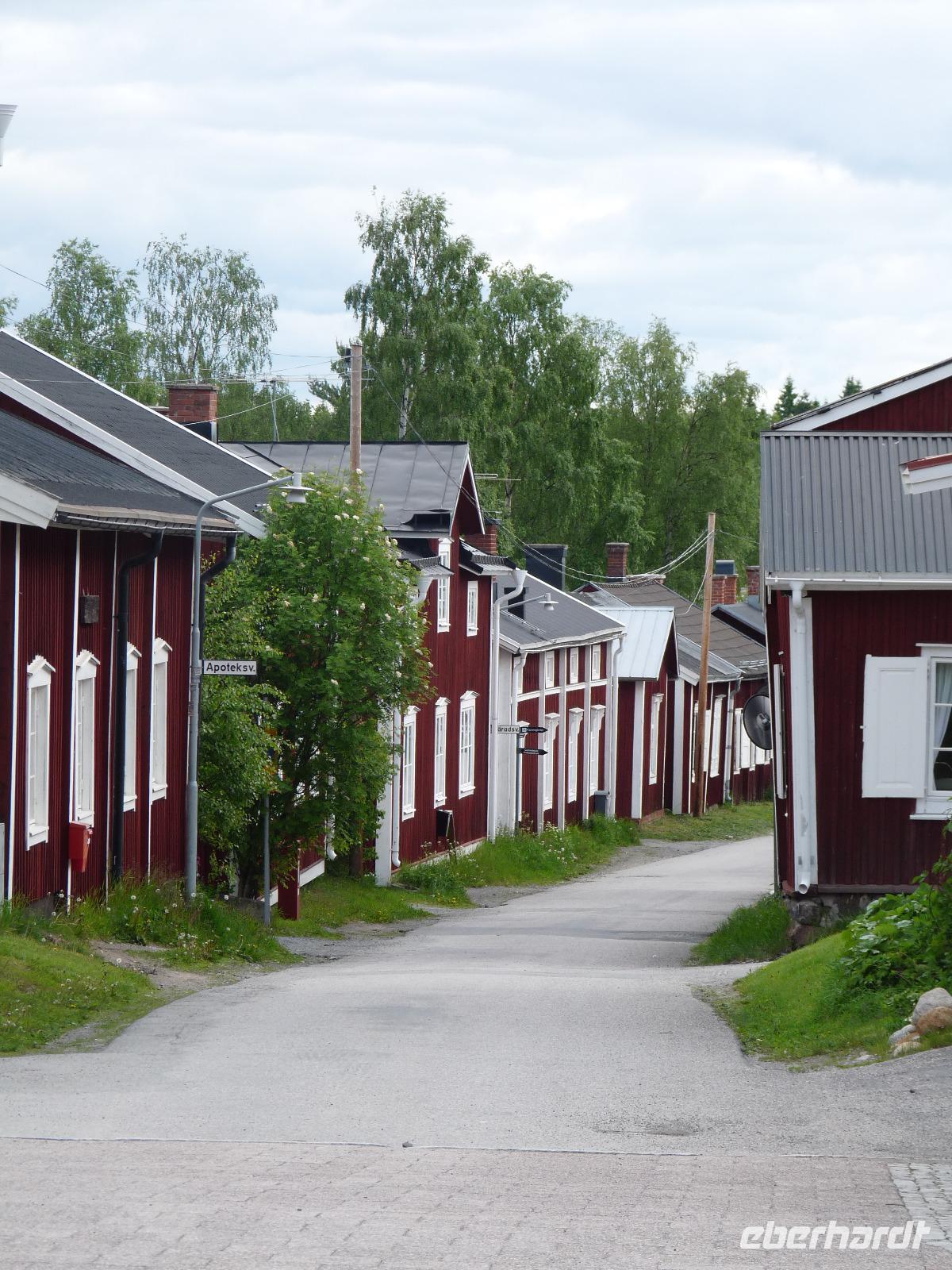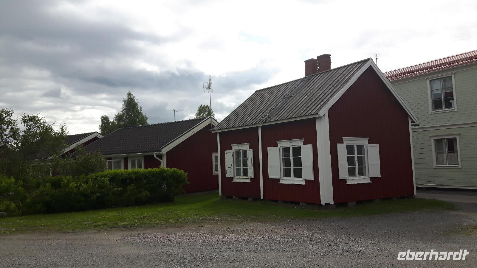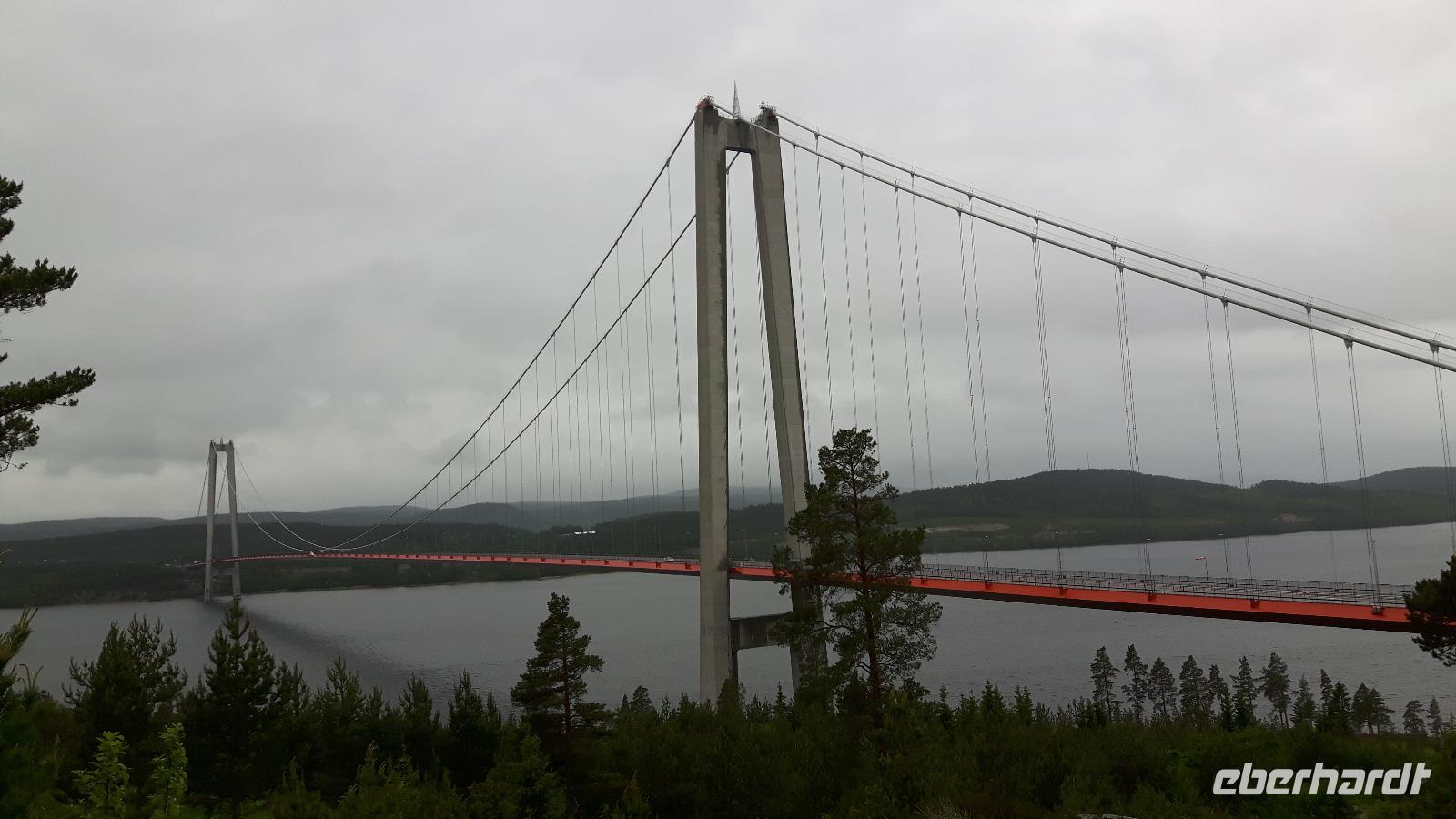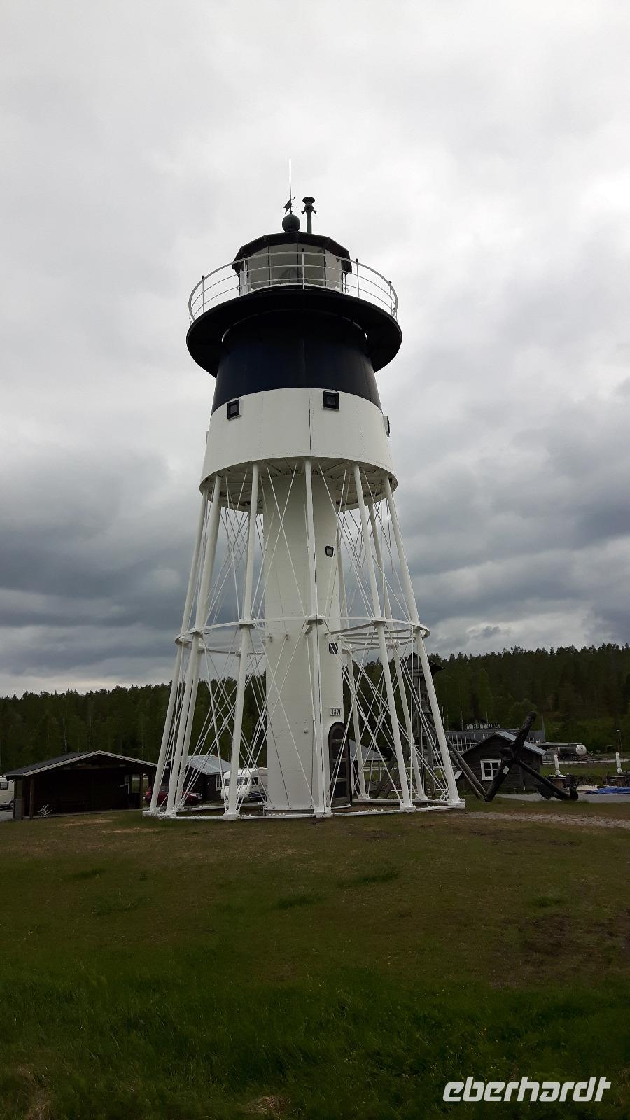 Högakustenbron, einer 1997 eröffneten Hängebrücke über den Fluss Ångermanälven. Hier zeigte übrigens das Thermometer Temperaturen im einstelligen Bereich und so wurde kurzerhand Grog gereicht! Im weiteren Verlauf statteten wir der ehemaligen Eisenhütte „Olofsfors Bruk" einen Besuch ab. Diese wurde bereits 1762 gegründet und zwar in der Nähe von drei Wasserläufen, die genug Strömung hatten, um Maschinen anzutreiben. Warum eine Eisenhütte? Die schwedische Eisengewinnung und -bearbeitung begann in Bergslagen. Während des 14. Jahrhunderts wurde eine sehr wichtige Erfindung gemacht, der Hochofen, gleichzeitig wurde der Bergbau weiterentwickelt. Im 17. Jahrhundert erlangte die schwedische Eisenindustrie große Bedeutung. 1750 wurden 35% der Weltproduktion an Eisen in Schweden produziert. Es entstanden immer neue Eisenhütten in Bergslagen und Uppland.Bei der Weiterfahrt entlang der Hohen Küste ging es durch Felsenlandschaften, durch Wälder und über Flüsse, vorbei an kleinen Dörfern mit ihren Kirchen und den daneben extra stehenden Glockentürmen. Am Nachmittag erreichten wir das Kirchendorf Lövanger und besichtigen die historischen Häuschen und die Kirche. Später hielten wir noch am Leuchtturm bei Jävre, bevor wir am Abend in der Stadt Luleá, die durch ihren Erzverladehafen bekannt ist,ankamen. Noch zu später Stunde saßen oder spazierten wir in hellem Sonnenschein an der schönen Ufermagistrale der Stadt!