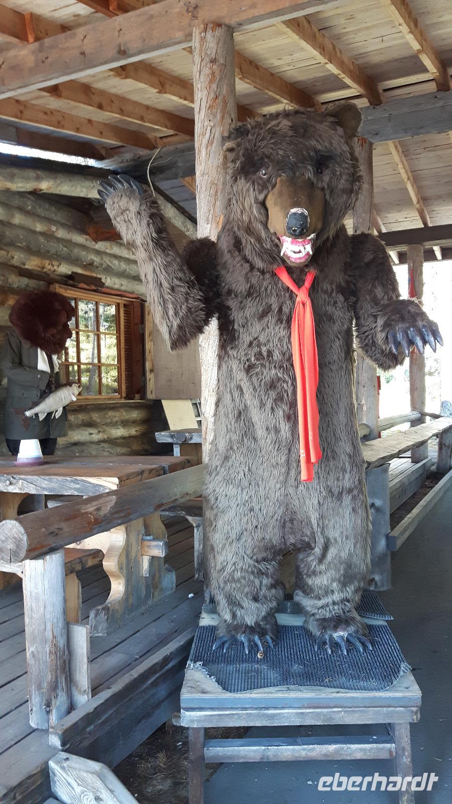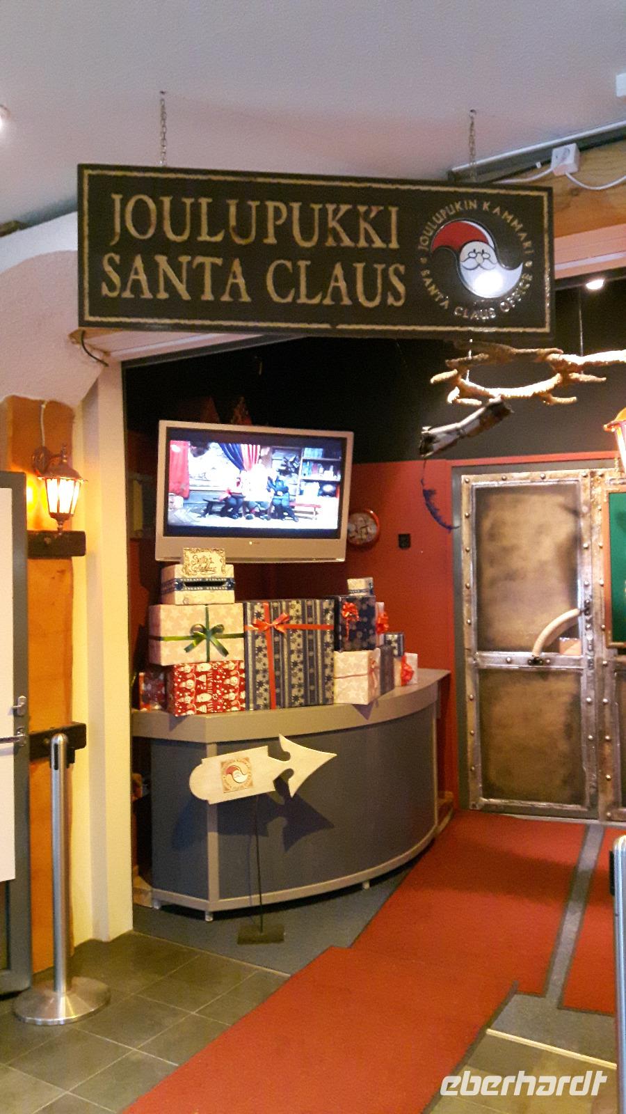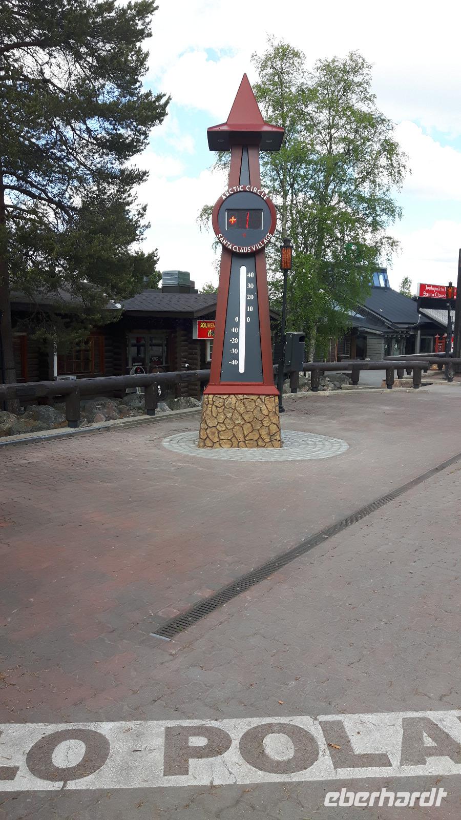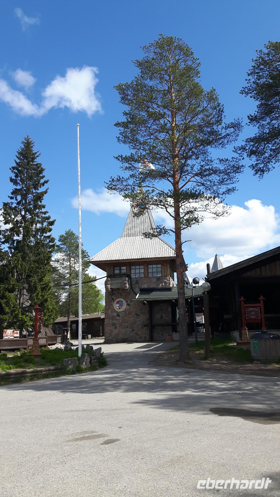 Ein kurzer außerplanmäßiger Abstecher führte uns gleich am Morgen nach Luleá Gammelstad mit seiner Kirche, den 424 Holzhäusern und insgesamt 555 einzelnen Räumen - es ist das größte und am besten bewahrte Beispiel eines Kirchendorfs in Schweden. Kirchendörfer, die es übrigens nur in Nordskandinavien gibt, entstanden aufgrund der enormen Größe der Pfarrein und der schwierigen, geografischen Verhältnisse und Wetterbedingungen - Faktoren, die den Kirchgang zu einer enormen Unternehmung machten. Die Lösung war ganz einfach - man baute ein Dorf um die Kirche, in dem man übernachten, andere Gemeindemitglieder treffen und an den wöchentlichen Messen und Kirchenfeierlichkeiten teilnehmen konnte. Die roten Häuschen wurden in ihrer ursprünglichen Nutzung bis in die 1950er Jahre genutzt. Jetzt ist das auf der UNESCO-Weltkulturerbeliste stehende Dorf eine lebende Gemeinde und ein Freilichtmuseum. Einige der Häuschen dienen nach wie vor bei größeren kirchlichen Feierlichkeiten als Unterkünfte für die Kirchgänger. Bei der weiteren Fahrt durch Wälder mit zahllosen Mooren, Seen und Flüssen genossen wir das tolle WetterLächelnd! Bereits am Mittag überschritten wir bei Haparanda die schwedisch-finnischen Grenze und das bedeutete auch, unsere Uhren eine Stunde vor zu stellen! Von hier aus ging es weiter in den Norden hinauf. Schließlich trafen wir bei Rovaniemi auf den Polarkreis und das Weihnachtsdorf und dies war ein gute Gelegenheit, um mit einem, von Eberhardt TRAVEL spendierten Glas Sekt, auf die Polarkreis-Überquerung anzustossen - na dann Prost...! Der weiterhin wald- und seenreichen Landschaft folgten wir am Nachmittag weiter bis Saariselkä, wo wir im Lapland-Hotel unser heutiges Nachtlager aufschlugen. Wir hatten bei dieser Fahrt bisher noch kein Rentier gesehen, aber in diesem schönen Wintersportort liefen sie uns prompt über den Weg!