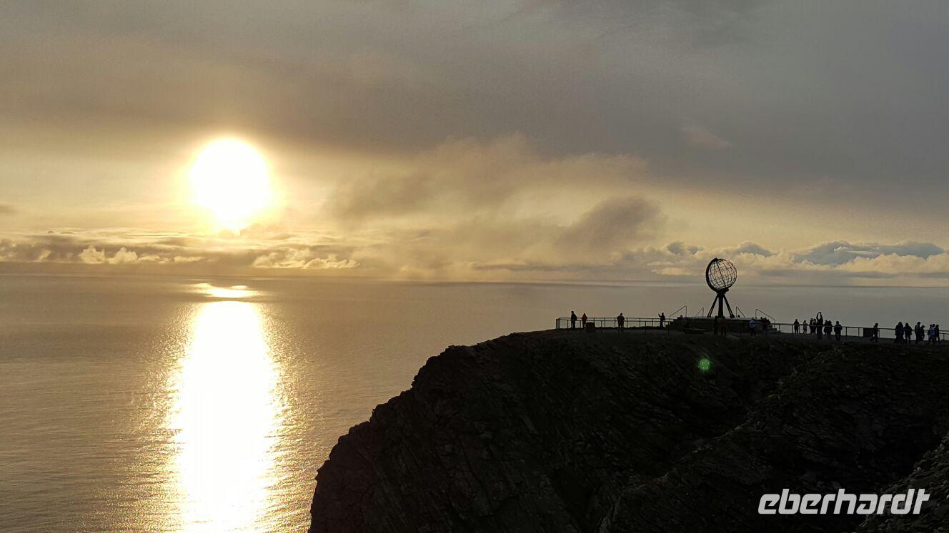 Die Sonne lachte und nach einem stärkenden Frühstück gelangten wir zunächst auf den 438 Meter hohen Kaunispää, den Hausberg Saariselkäs - die 360-Grad-Aussicht über die Weiten Lapplands war einfach einmalig und wunderschön! Weiter ging es hinein in die Tundra Finnlands! Mitten darin die Wälder um den riesigen Inarisee, dem größten See Finnlands. Schließlich fuhren wir zur Bärenhöhle weiter. Ganz unsportlich sollte man nicht sein, wenn man den Bärenhöhlenstein besichtigen will. Zunächst gilt es die 284 Treppenstufen zu dem riesigen Findling hinaufzusteigen und dann durch die relativ kleine Öffnung in sein Inneres - die Bärenhöhle - hineinzukriechen. Diese ist dann aber überraschend geräumig und sieht teilweise aus wie ein Schweizer Käse - der Fels ist von Löchern übersät. Spannend und interessant zugleich! Wer noch nicht erschöpft war, kraxelte weitere 186 Treppenstufen den Hang hinauf. Von oben hatte man eine schöne Aussicht über die lappländische Landschaft und am Horizont war sogar der berühmte Inari-See zu sehen! Um den Bärenhöhlenstein ranken sich natürlich einige Legenden. Angeblich wurde er 1930 von einem Bärenjäger entdeckt, der in der Nacht vor einem Unwetter Schutz suchte. Erst am nächsten Morgen soll er bemerkt haben, dass er die Nacht gemeinsam mit einem schlafenden Bären in der Höhle verbracht hatte. Ob er den Bären dann erschossen hat oder nicht, darüber gibt es unterschiedliche Ansichten. Gegen Mittag überschritten wir die finnisch-norwegische Grenze und über die Samihauptstadt Karasjok und entlang des Lakselven-Flusses bzw. des Porsangerfjordes gelangten wir in den äüßersten Norden Norwegens. Am Nachmittag passierten wir den 6,8 Kilometer langen Nordkap-Tunnel, der seit seiner Eröffnung am 15. Juni 1999 die Insel Magerøya mit dem Festland verbindet. Er ist gleichzeitig der nördlichste Unterseetunnel der Welt und der tiefste Punkt liegt immerhin 212 Meter unter dem Meeresspiegel! Das „Scandic Hotel" in Honningsvåg erwartete uns bereits und wir nutzten den Nachmittag, um uns für einen langen Abend zu rüsten! Nach dem Abendessen, also gegen 21 Uhr, startete unser Bus zum Nordkap - jetzt mit einem isländischen Buschauffeur vom Nordkap-Service, denn unser Buschauffeur Roy musste die gesetzlich vorgeschriebenen Lenk- und Ruhezeiten einhalten! Wir erreichten die Hochfläche der Insel Magerøya und die in das Felsgestein hinein gebaute Nordkaphalle, wo uns eine Vielfalt interessanter Erlebnisse erwartete! Ein spektakulärer Panoramafilm nahm uns auf eine Reise durch die vier Jahreszeiten mit, in eine Landschaft voller Kontraste, Licht und überwältigender Natur. Historische Ausstellungen und die künstlerisch ausgeschmückte Johanneskapelle rundeten das Angebot ab! Der Himmel hielt sich zwar bei unserer Ankunft noch wolkenverhangen, aber kurz vor Mitternacht hatte der Wettergott ein Einsehen mit uns und wir erlebten die Mitternachtssonne! Die Sonne schien, die Buchten spiegelten das Licht und wir fotografierten das Nordkaphorn. Wir gehörten zu den 20% der jährlichen Besucher, die dieses Glückserlebnis hatten! Alle Gäste erhielten ihr persönlichs Norkap-Diplom und einen kleinen Aquavit-Schnaps zum Anstoßen auf dieses großartige Erlebnis! Begeistert kehrten wir nach Mitternacht ins Hotel zurück, auch wenn es mittlerweile regnete!