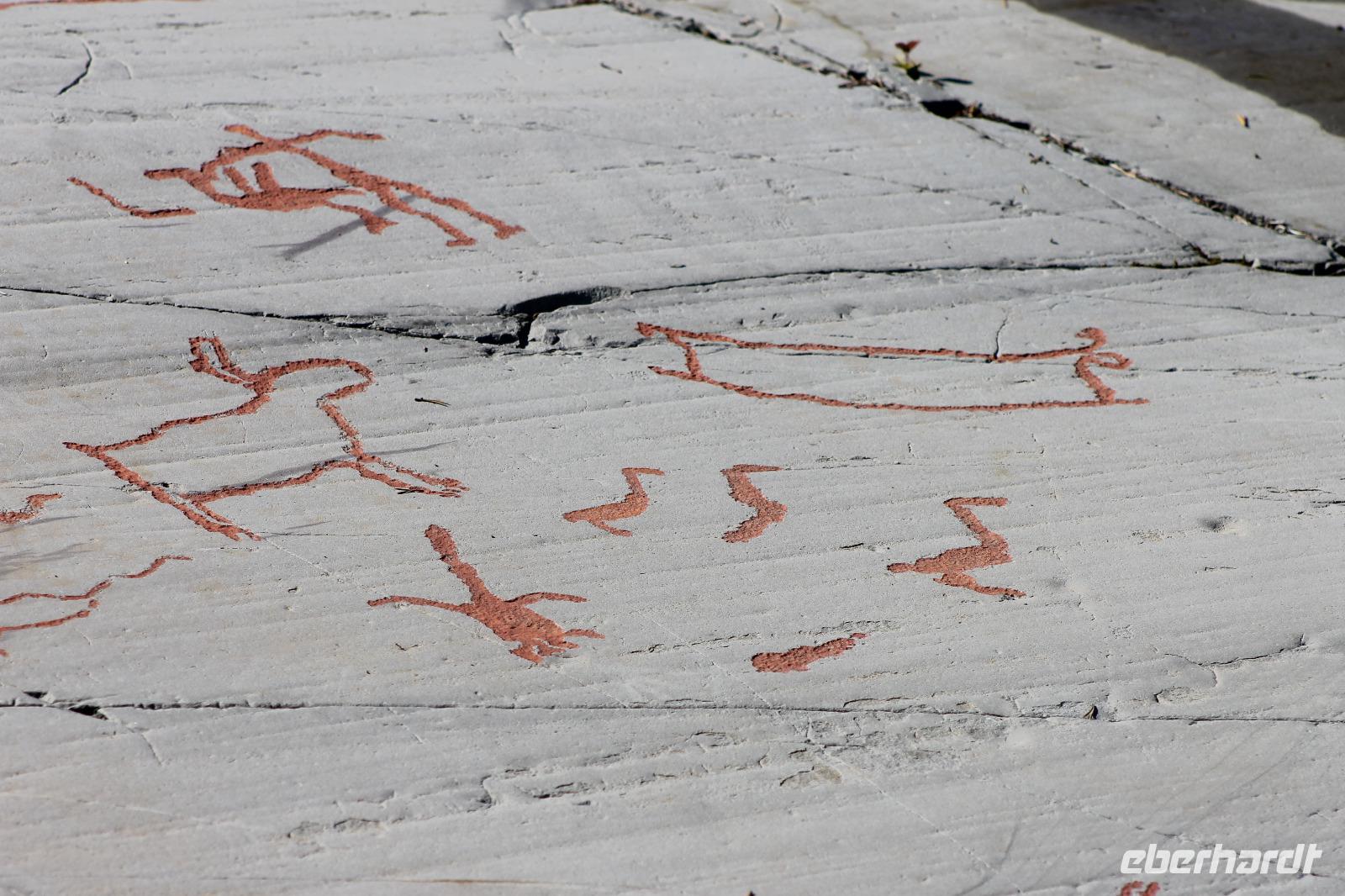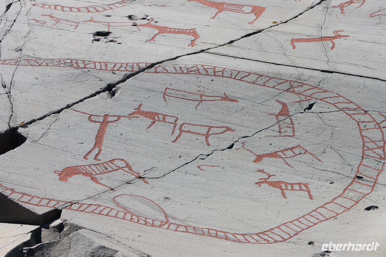 Der Fahrt führte uns an diesem Reisetag nach Oteren, dem reizvollen Ort in den Lyngen-Alpen. Bezaubernde Landschaften erwarteten uns - wechselnde Formen und Farben der Berge, der Fjells und der Fjorde, wilde Bergflüsse und stille Buchten... Ein Höhepunkt des Tages war die geführte Besichtigung im Alta Museum, welches auf seinem Außengelände die seit 1985 zum UNESCO-Weltkulturerbe gehörenden grandiosen Felszeichnungen aus der Steinzeit beherbergt. Die ca. 6000 Felszeichnungen sind zwischen 2.000 und 6.200 Jahren alt und wurden 1973 entdeckt. Am Abend machten wir es uns dann am Kamin des Hotels „Welcome Inn Lyngskroa" so richtig gemütlich und genossen ein überaus leckeres Drei-Gänge-Menü. Die Gegend wirkte zwar recht einsam (unser Hotel war das einzige weit und breit), aber hier wurde Gastfreundschaft immerhin noch groß geschrieben und das tat uns allen sehr gut!