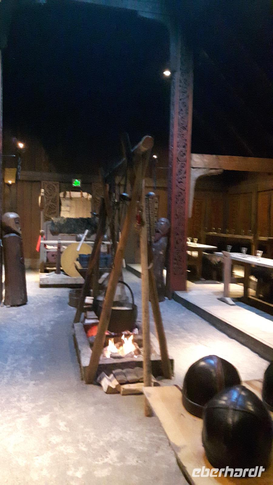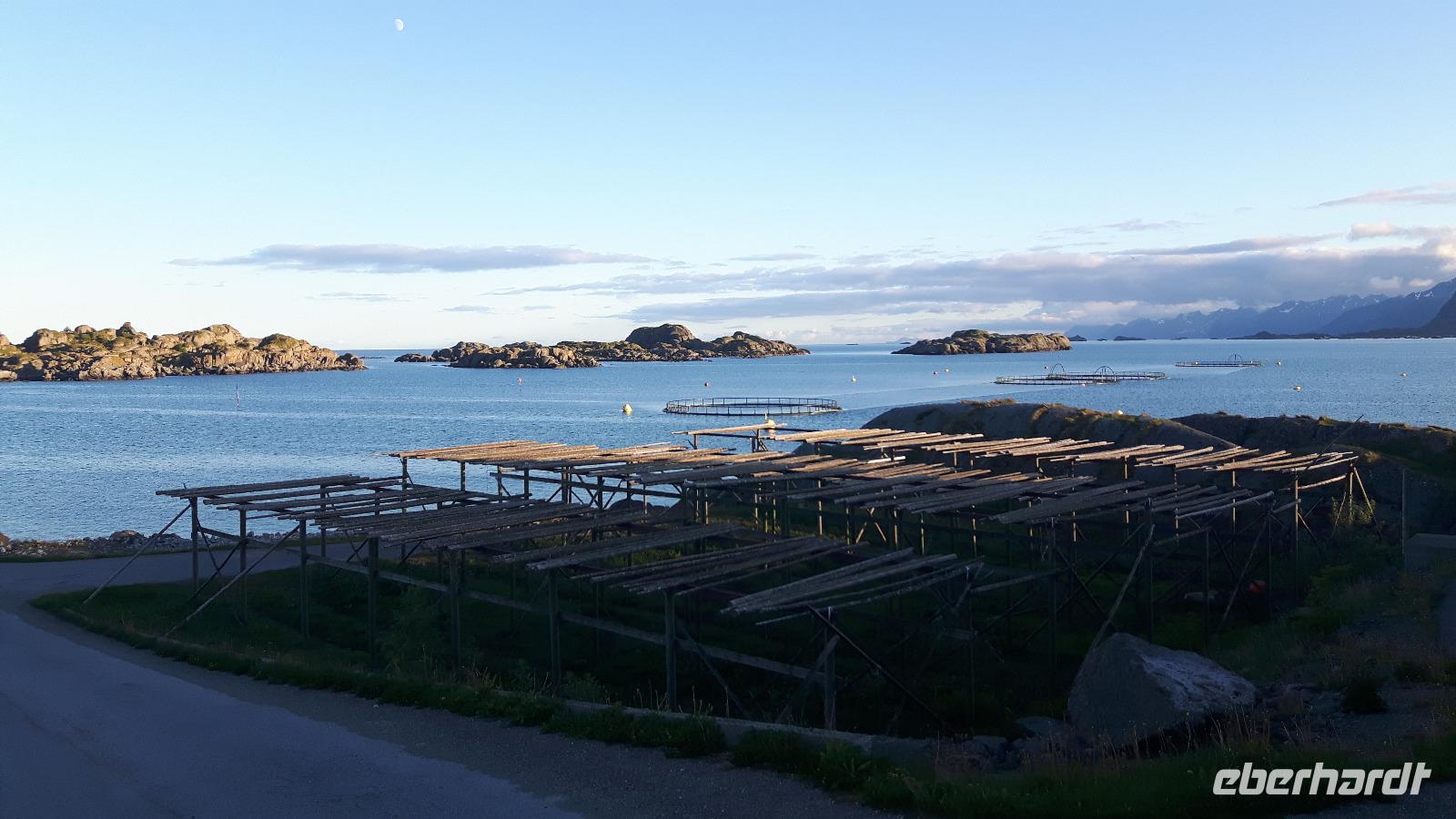 Anschließend besuchten wir das Wikingermuseum in Borg, ein „Museum zum Anfassen". In Borg haben Archäologen 1983 ein Langhaus aus Wikingerzeiten entdeckt. Um den größten Fund aus dieser Zeit entstand ein Museum, in dem jedermann 1.000 Jahre zurück in die Vergangenheit reisen kann. Wie sich die Vorfahren der heutigen Norweger ernährt haben und wie es auf ihren Festen zuging, erfuhren wir ebenso und wurden wir nach einer interessanten Führung mit leckerer Wikingersuppe verwöhntLächelnd! Gut gestärkt ging es nach Svolvær, einem Fischerdorf, weiter. Der malerische Hafen von Svolvær liegt am Vestfjord. Wir bummelten durch den Ort, in dem jahrhundertealte Seefahrertraditionen bewahrt wurden. Die umliegenden Inseln, steil aufragenden Berge, schönen Strände und geschützten Buchten sind die perfekte Kulisse für eine Vielzahl aufregender Aktivitäten! Auf dem Rückweg legten wir schließlich einen letzten Aufenthalt an der als „Lofot-Kathedrale" bekannten Kirche Vågan ein. Es handelt sich hier um eine aus Holz gebaute Kreuzkirche im neugotischen Stil. Sie wurde von Architekt Carl Julius Bergstrøm entworfen und im Oktober 1898 eingeweiht. Dieses Gotteshaus mit 1.200 Sitzplätzen löste die zu klein gewordene Kirche aus dem Jahr 1798 ab und ist ist der größte Holzbau nördlich von Trondheim. Am Abend hielt dann Brigitte, eine überaus sympathische Mitarbeiterin des Statles Rorbusenter, einen informativen und lustigen Vortrag über die Kabeljau-Fischerei, den Lebertran und das Leben auf den Lofoten. Sogar eine Verkostung durfte dabei nicht fehlenZwinkernd! Es war ein sehr beeindruckender und sonnenreicher Tag, den wir auf den Lofoten erleben durften - vielen Dank an Petrus!