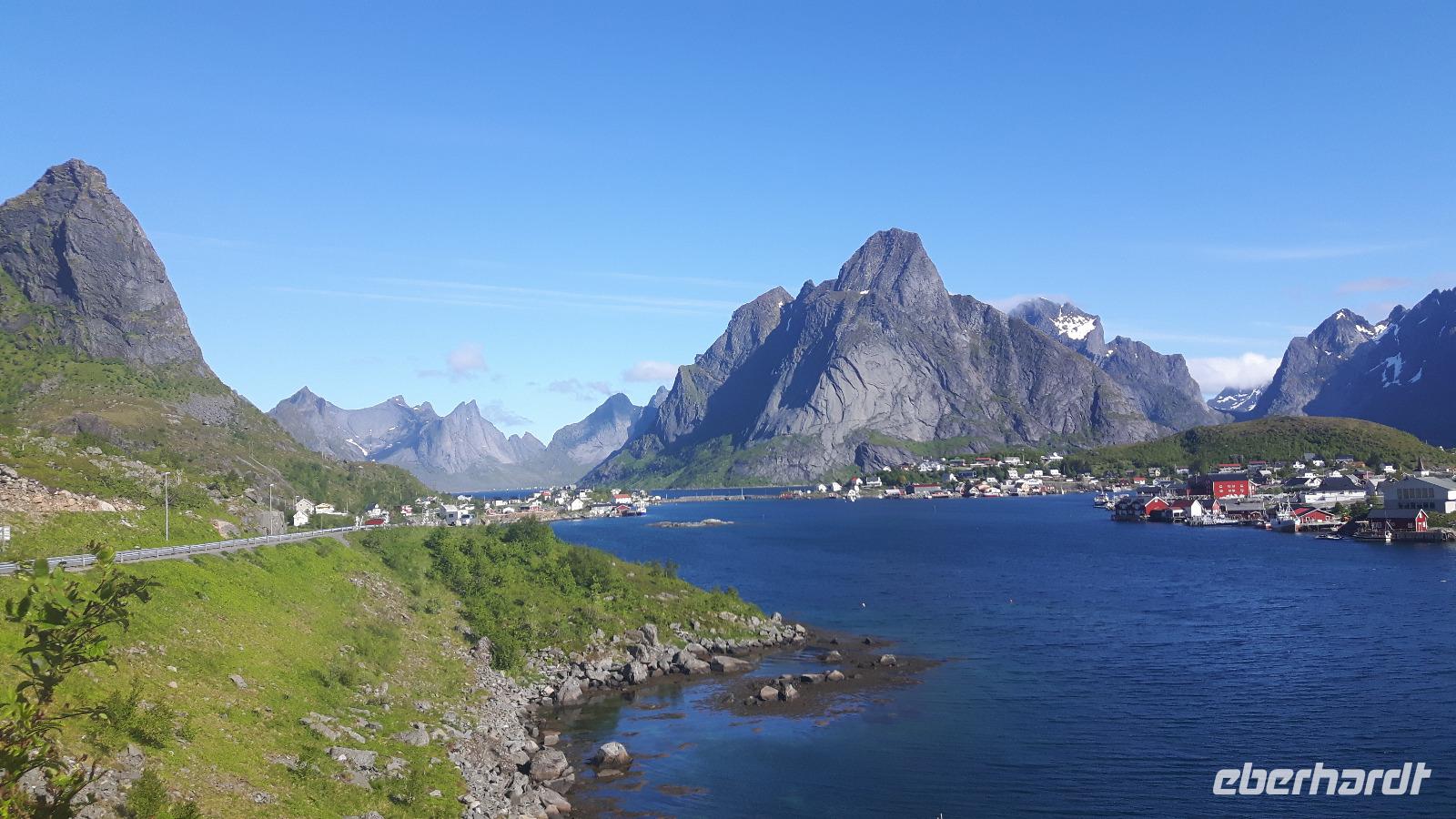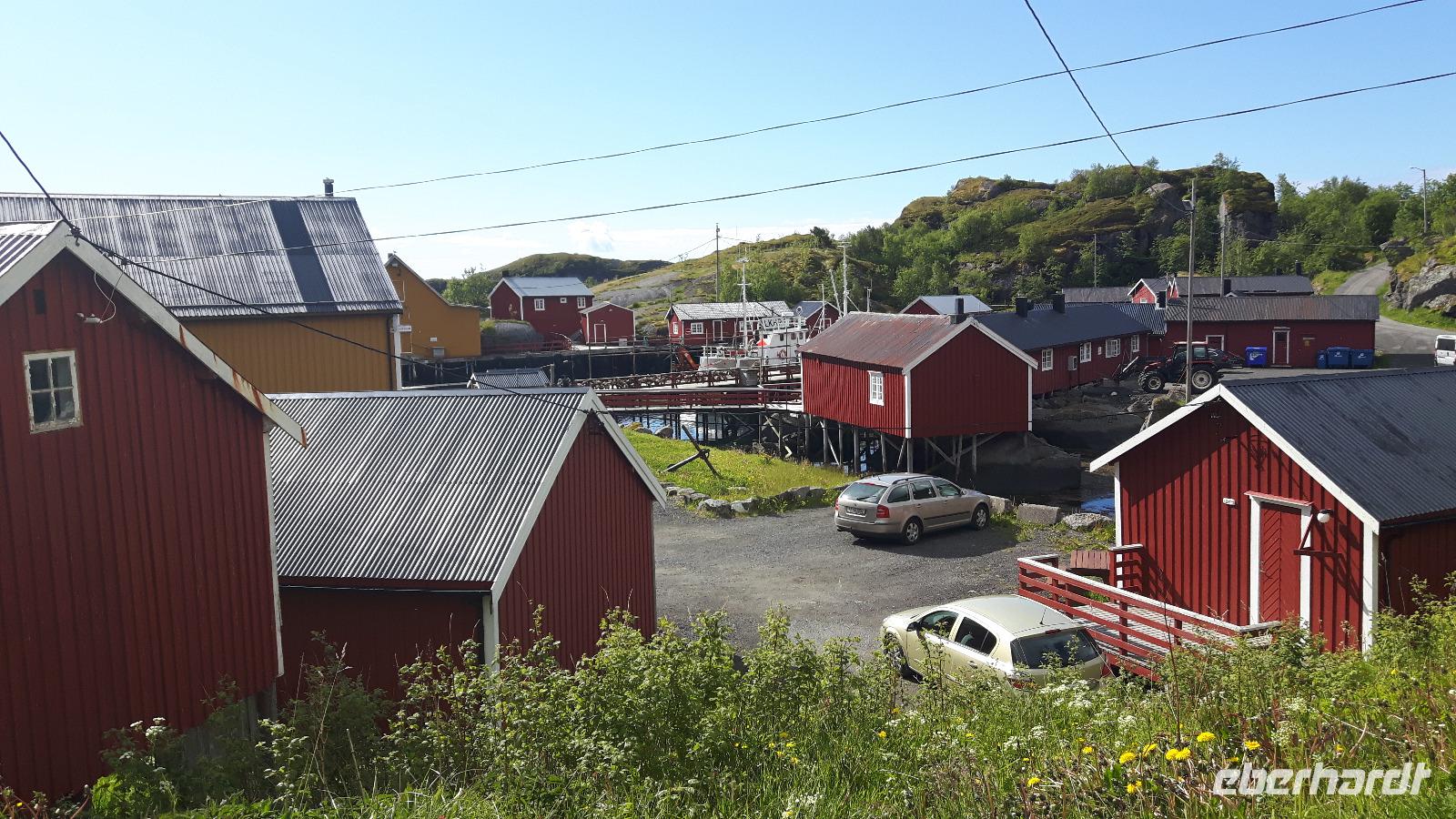 Wir ließen den neuen Tag mal etwas geruhsamer angehen. An diesem sonnigen Morgen wachten wir auf, gingen nach draußen und standen in einem Natur-Idyll - türkisblaues Meer und kleine Fische, die sich um die Pfähle der Hütten tummelten... Ein gemütliches Frühstück und ganz entspannt begannen wir die Lofoten-Rundfahrt. Einen ersten Aufenthalt legten wir im kleinen Fischerdorf Nusfjord auf der Insel Flakstadøy, einer der Hauptinseln des Lofotenarchipels, ein.