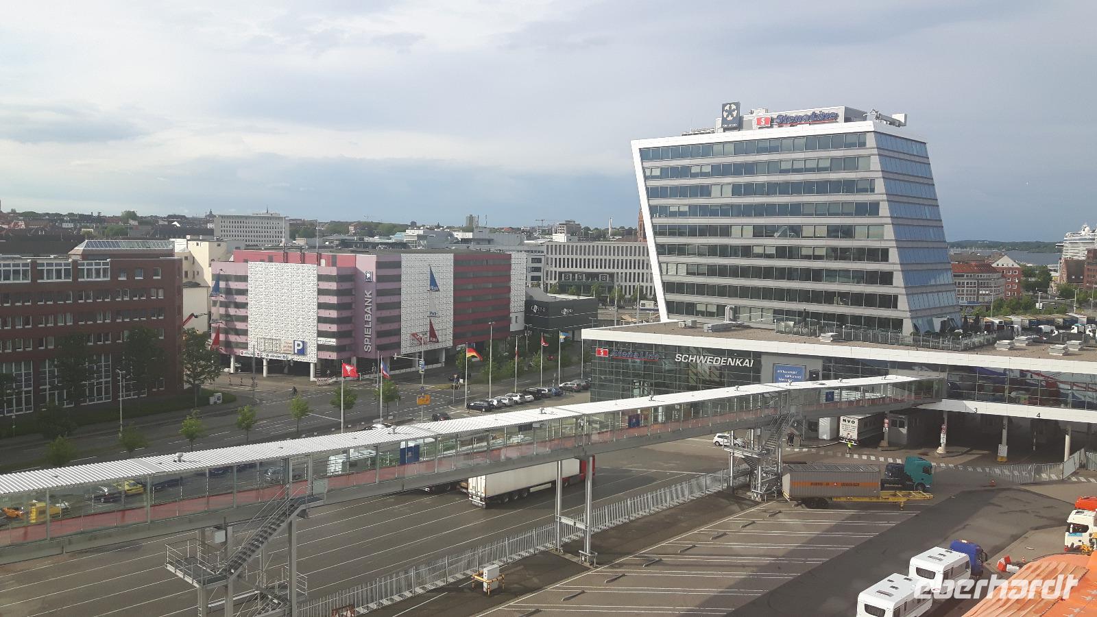 Mit einigen Gästen starteten wir bereits am Dresdner Flughafen, über Döbeln ging es dann zum Leipziger Flughafen und in der Nähe von Berlin war unsere Gruppe vorerst mit 26 Gästen komplett. Die Route führte uns weiter in Richtung Hamburg und über die B404 bzw. die A21 gelangten wir letztendlich am frühen Nachmittag den Schwedenkai in Kiel. Wir hatten noch etwas Zeit und machten einen kleinen Spaziergang durch die Innenstadt von Kiel. Nachdem wir einen weiteren Gast direkt in Kiel begrüßt hatten, betraten wir pünktlich um 17 Uhr die Fähre der „Stena Germanica", welches insgesamt ca. 1.300 Personen fasst. Bereits 18 Uhr trafen wir uns alle wieder, um das Abendessen als Skandinavisches Buffet zu genießen - sogar die Getränke waren hier inklusive! Danach fielen die meisten von uns müde ins Bett. Einige unserer noch aktiven Gäste erlebten allerdings gegen Mitternacht die imposante Fahrt durch den Großen Belt - unsere Fähre fuhr hier schließlich durch eine 18 km lange Brücke, die Ost- und Westdänemark miteinander verbindet; das wach bleiben lohnte sich also!