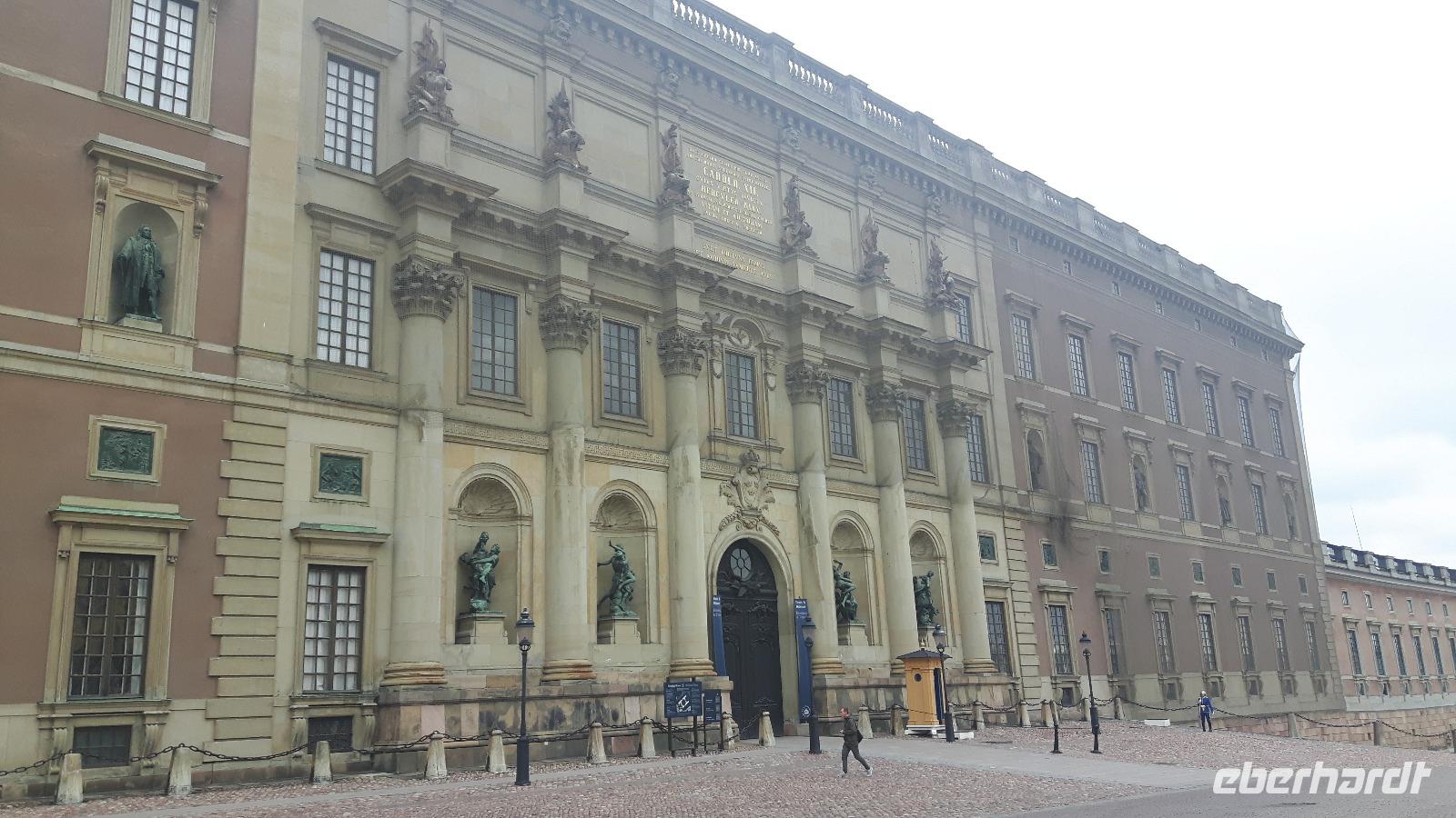 Am nächsten Morgen erfreuten wir uns an der Einfahrt durch die Schären vor Göteborg! Weiter geht es dann mit unserem Bus - quer durch Göteborg und hinaus in die Landschaft des sommerlichen Südschwedens. Leider war der Wettergott vorerst nicht auf unserer Seite, denn es regnete. Natürlich legten wir auf unserer Route trotzdem interessante Pausen ein - so z. B. in der Nähe von Gränna am Vätternsee, bekannt für seine Zuckerstangen - in Schweden heißen diese „Polkagris". Eine gewisse Amalie Erikson eröffnete hier nämlich Mitte des 19. Jahrhunderts die erste Zuckerstangenbäckerei. Weiter ging es bis Linköping und von hier aus führte uns ein zusätzlicher Abstecher ins benachbarte Berg, am westlichen Ufer des Roxen-Sees an der Mündung des Göta-Kanals in diesen See, gelegen. Bekannt ist der Ort vor allem wegen seiner zahlreichen Schleusen (Bergs slussar). Die Schleusen des Göta-Kanals sind beliebte Ausflugsziele und jede Schleusung ist ein wahrhaft sehenswertes Schauspiel! Die hiesige Anlage umfasst sieben Schleusen und danach zwei weitere Doppelschleusen - echt sehenswert, wie die Schiffe den Höhenunterschied von 18,8 Metern überwinden! Von hier waren es nun nur noch knapp 200 Kilometer bis in die schwedische Hauptstadt Stockholm! Gegen 18.30 Uhr erreichten wir schließlich unser Hotel in der Nähe des Stockholmer Messegeländes. Hier begrüßen wir nunmehr auch unsere acht Fluggäste, die fortan unsere Reisegruppe komplettierten.