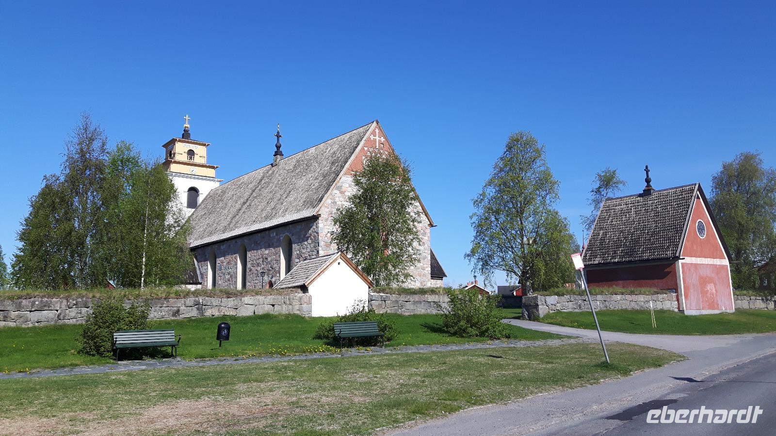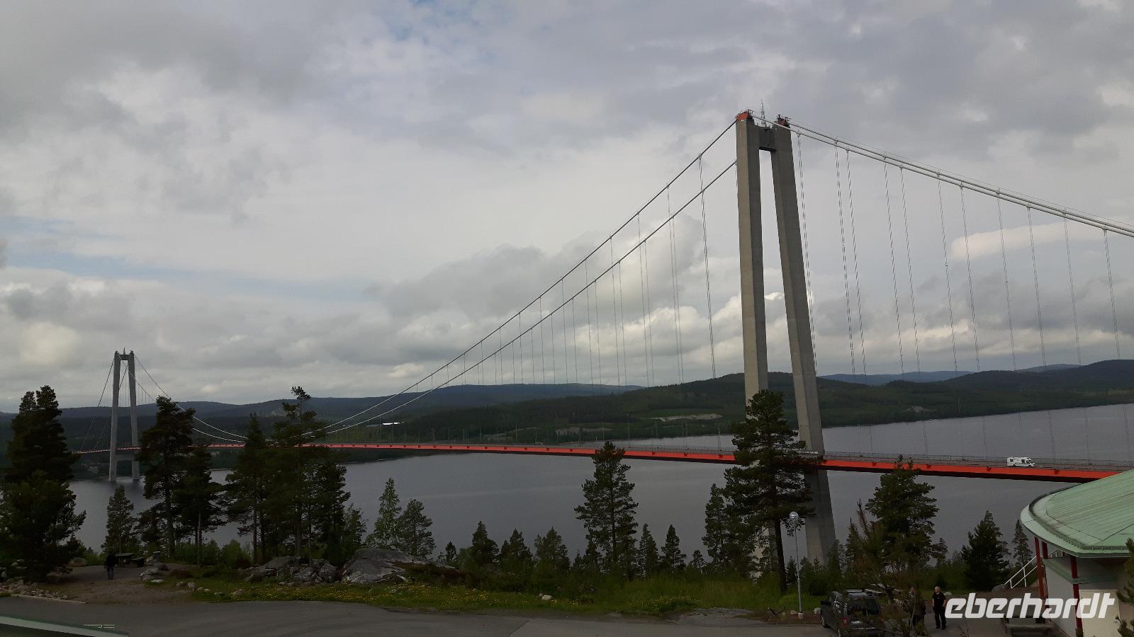 Gut gestärkt vom reichhaltigen Frühstück starteten wir mit frischen Kräften weiter nordwärts. Der Himmel über Sundsvall war wolkenverhangen, aber Petrus meinte es im Laufe des Tages schließlich besser mit uns und so stand einem Aufenthalt an der imposanten Högakustenbron, einer 1997 eröffneten Hängebrücke über den Fluss Ångermanälven, nichts mehr im Wege. Im weiteren Fahrtverlauf statteten wir am Mittag der ehemaligen Eisenhütte „Olofsfors Bruk" einen Besuch ab. Diese wurde bereits Mitte des 18. Jahrhunderts gegründet und zwar in der Nähe von drei Wasserläufen, die genug Strömung hatten, um Maschinen anzutreiben. Bei der Weiterfahrt entlang der Hohen Küste ging es durch bizarre Felsenlandschaften, durch Wälder und über Flüsse, vorbei an kleinen Dörfern mit ihren Kirchen und den daneben extra stehenden Glockentürmen. Am Nachmittag erreichten wir das Kirchendorf Lövanger und besichtigen die historischen Häuschen und die Kirche. Später hielten wir noch am Leuchtturm bei Jävre, bevor wir am Abend in der Stadt Luleá, die durch ihren Erzverladehafen bekannt ist, ankamen. Noch zu später Stunde saßen oder spazierten wir in hellem Sonnenschein an der schönen Ufermagistrale der Stadt!