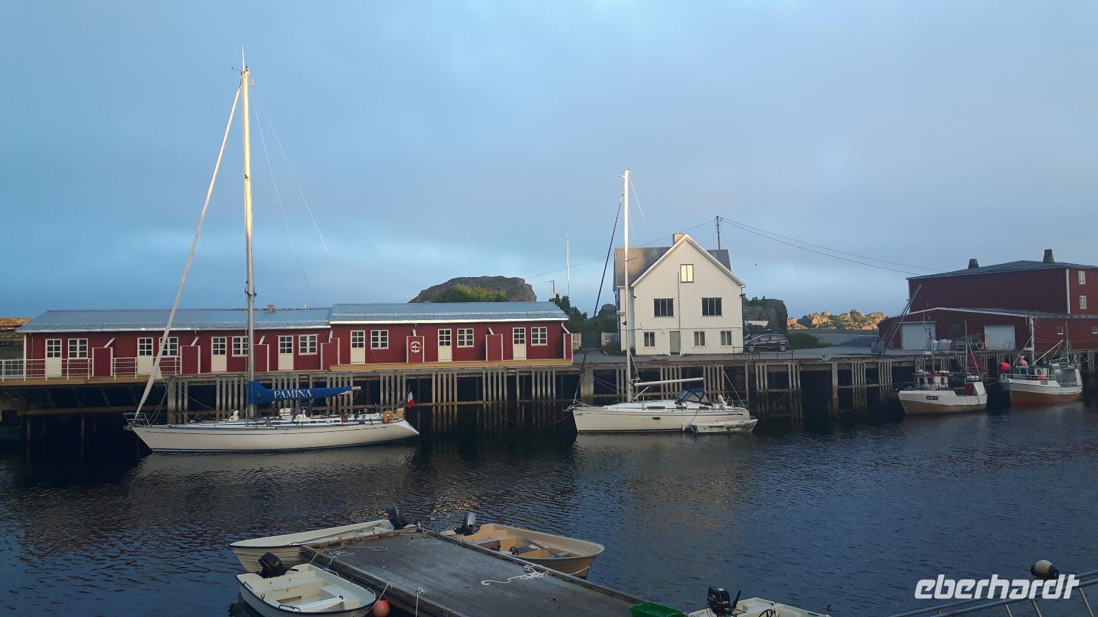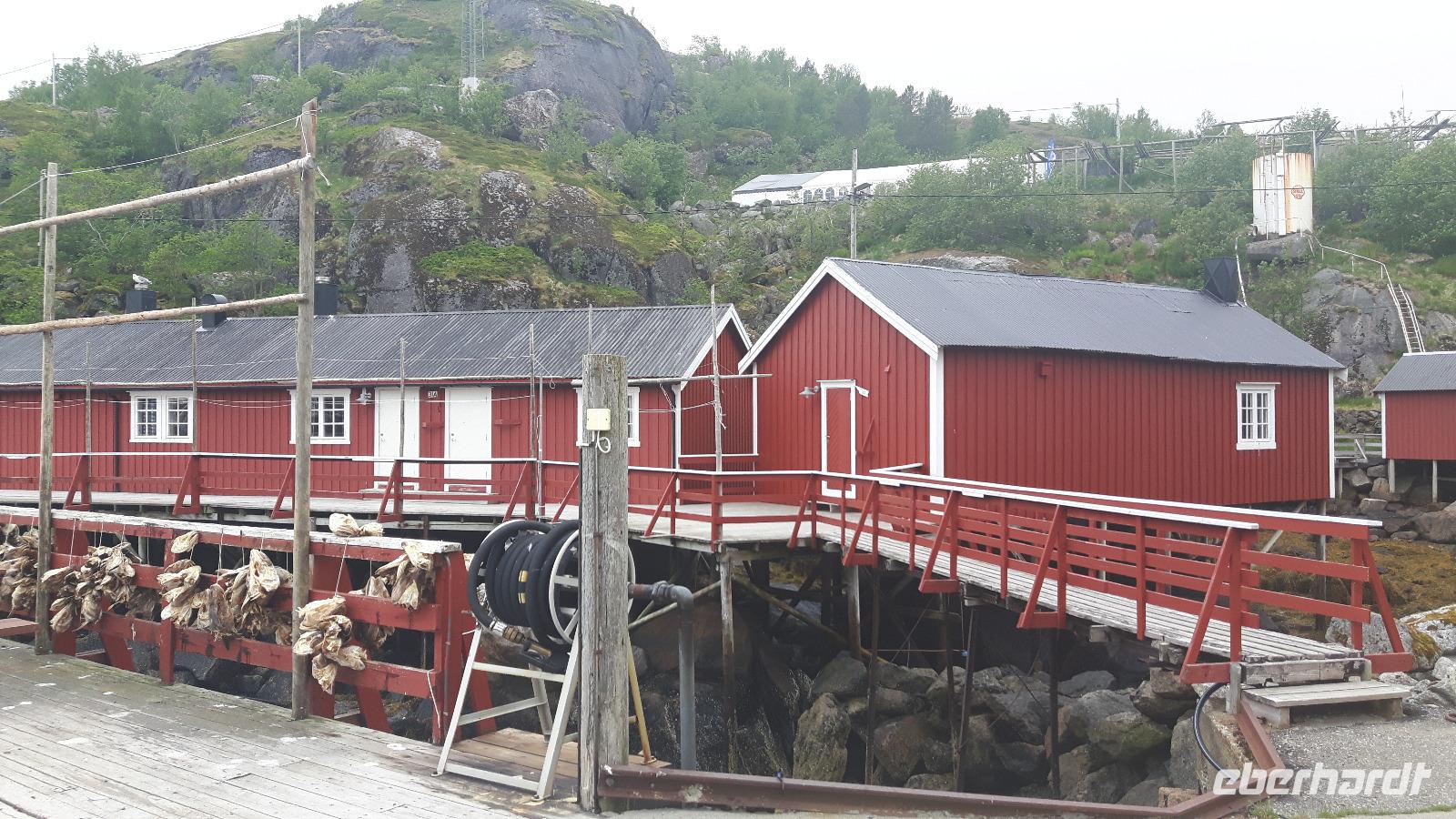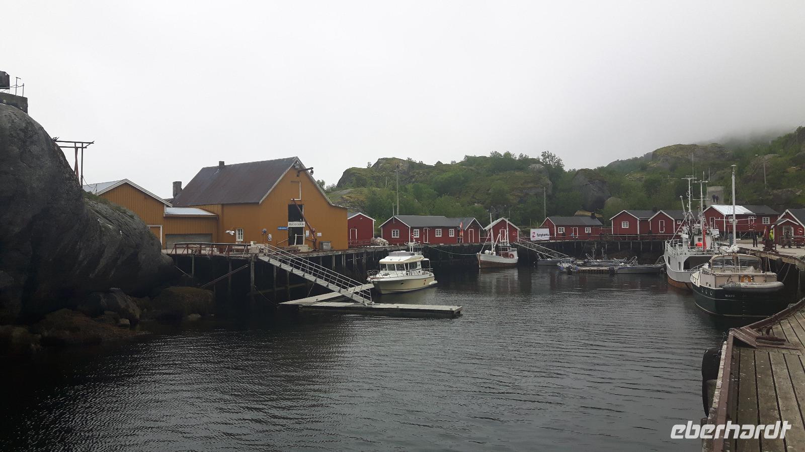 Wir ließen den neuen Tag mal etwas geruhsamer angehen. An diesem Morgen wachten wir auf, gingen nach draußen und standen in einem Natur-Idyll - türkisblaues Meer und kleine Fische, die sich um die Pfähle der Hütten tummelten... Ein gemütliches Frühstück und ganz entspannt begannen wir die Lofoten-Rundfahrt. Einen ersten Aufenthalt legten wir im kleinen Fischerdorf Nusfjord auf der Insel Flakstadøy, einer der Hauptinseln des Lofoten-Archipels, ein. Anschließend besuchten wir das Wikingermuseum in Borg, ein „Museum zum Anfassen". In Borg haben Archäologen 1983 ein Langhaus aus Wikingerzeiten entdeckt. Um den größten Fund aus dieser Zeit entstand ein Museum, in dem jedermann 1.000 Jahre zurück in die Vergangenheit reisen kann. Während einer interessanten und kurzweiligen Führung erfuhren wir beispielsweise wie sich die Vorfahren der heutigen Norweger ernährt haben und wie es auf ihren Festen zuging. Außerdem wurden wir mit leckerer Wikingersuppe (Lamm) verwöhnt!