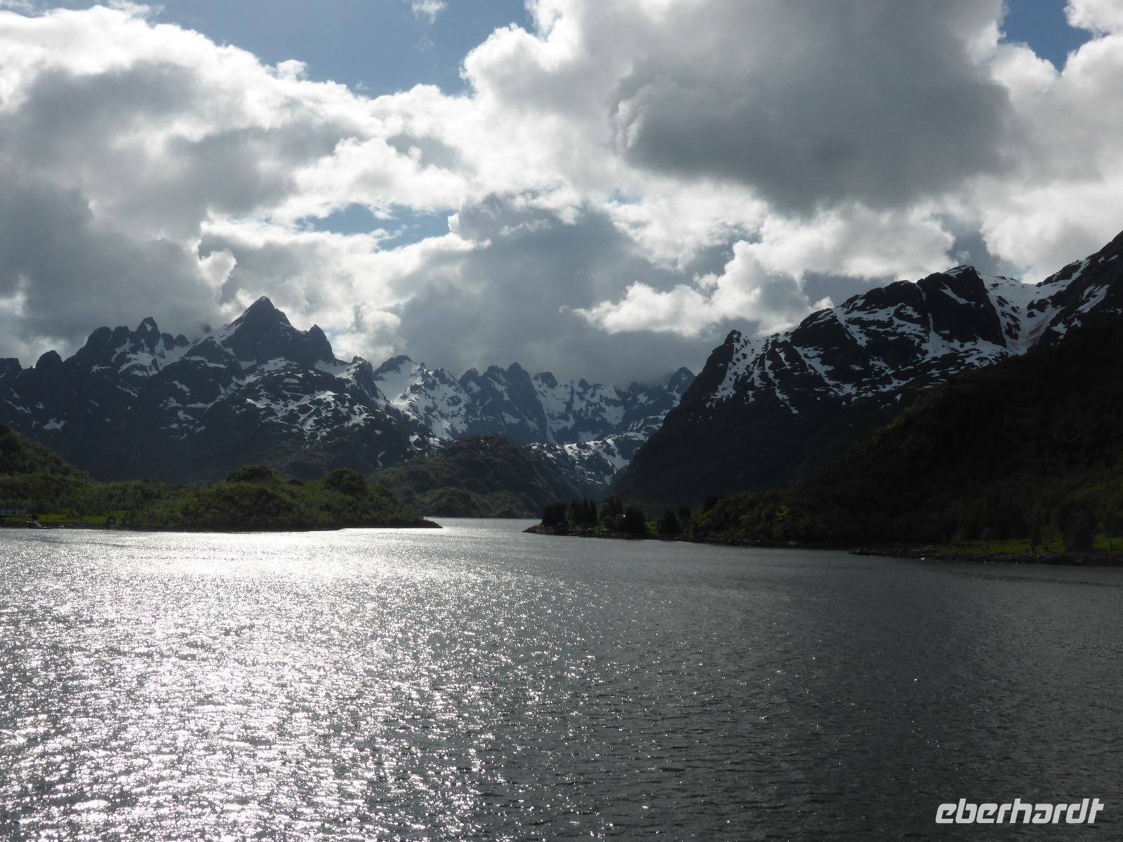 Auf dem Weg über den Vestfjord konnten wir die volle Schönheit der Lofotenwand genießen. Es war eine ruhige Überfahrt. Am frühen Nachmittag erreichten wir Bodö.