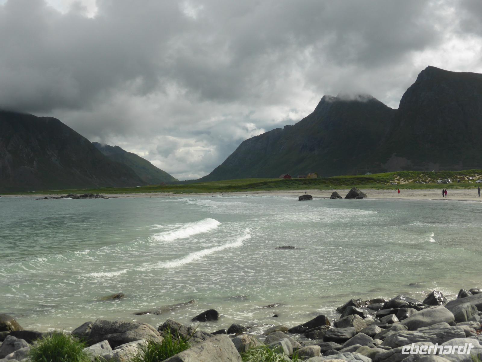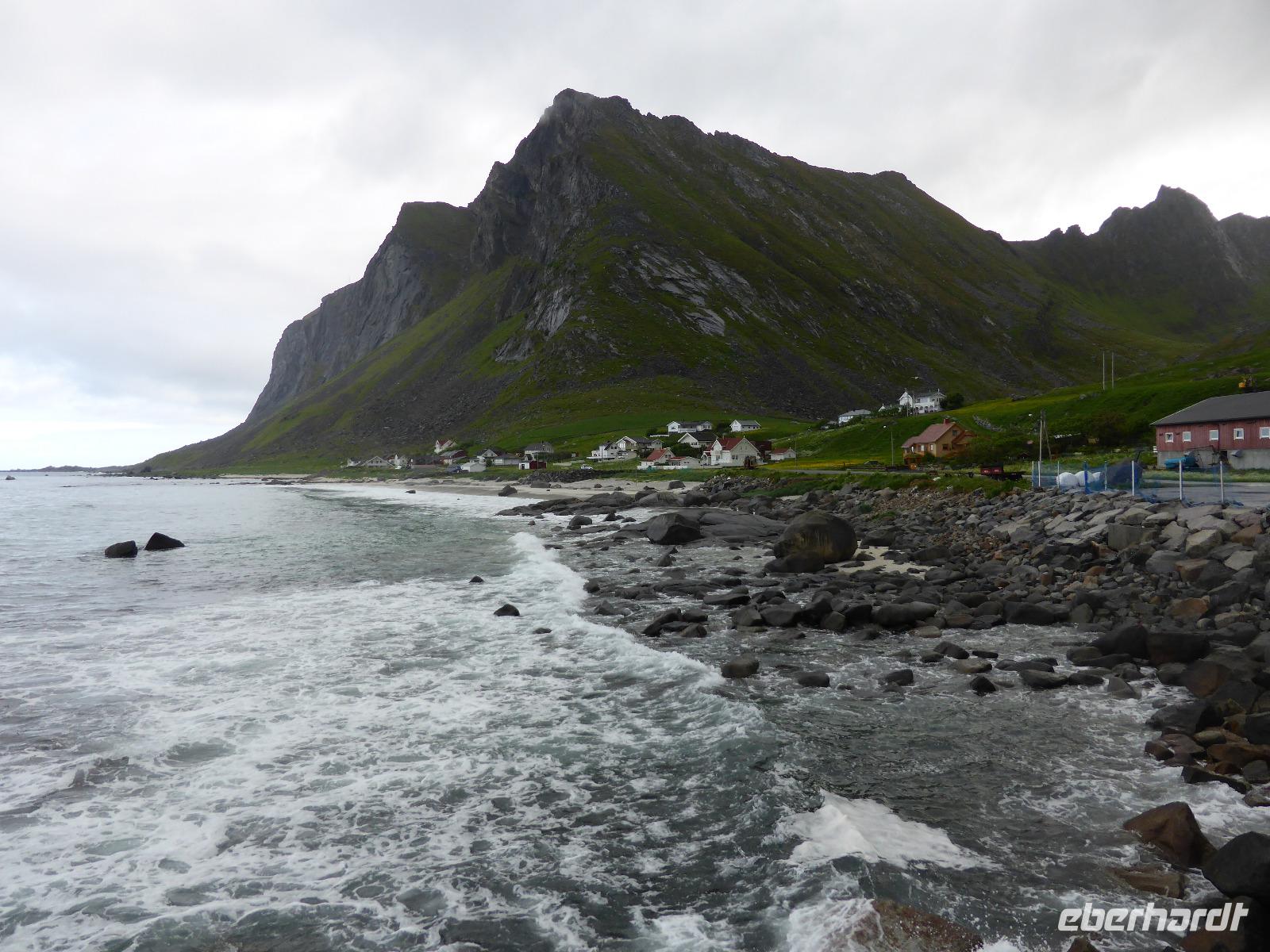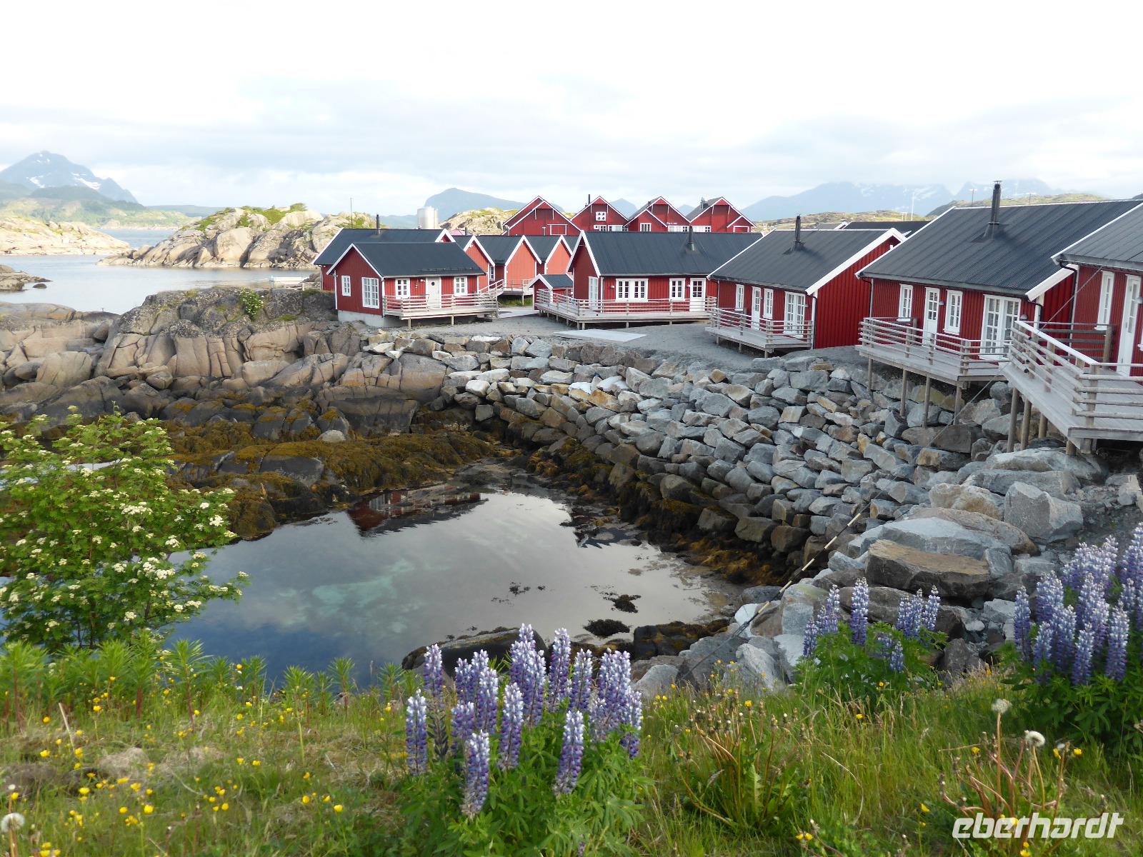 Heute stand die Lofotenrundfahrt auf dem Programm. Am Vormittag erkundeten wir den südlichen Teil der Lofoten. Auf der Insel Flagstadoy besuchten wir die gleichnamige Kirche und bummelten entlang des weißen Strandes. Die Kirche ist bekannt aufgrund des Zwiebelturmes. Die Hochlandrinder bei der Kirche waren allerdings etwas interessanter.