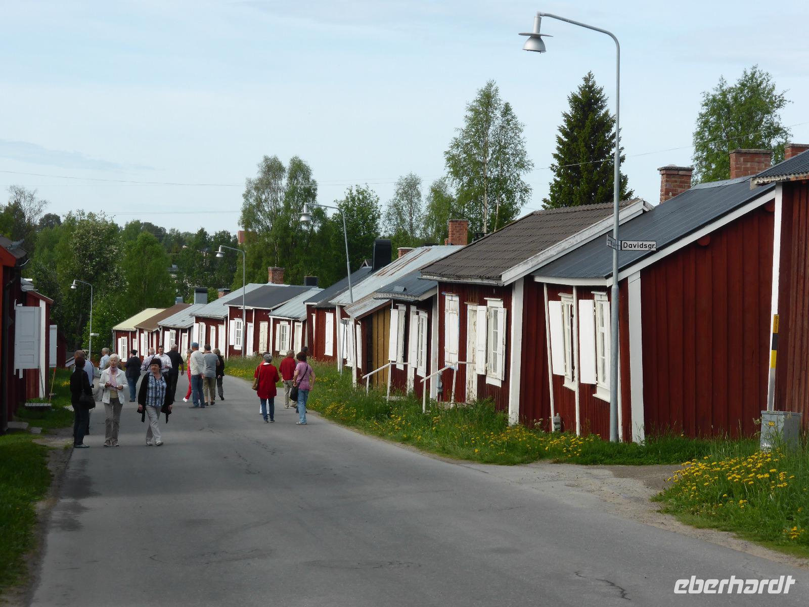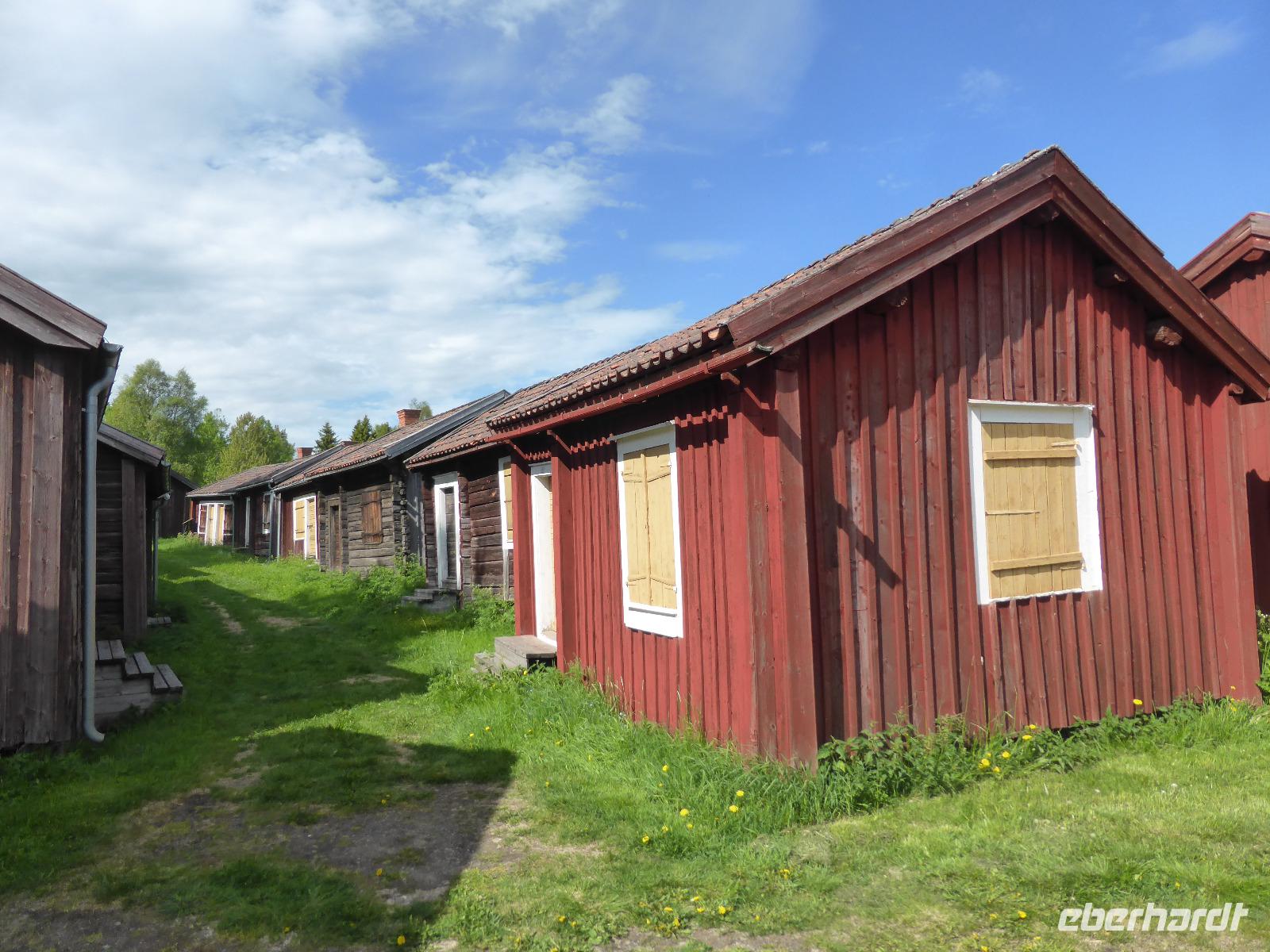Im Kirchdorf Lövanger waren wir von den kleinen Häusern fasziniert. Da es eine Pflicht zum Besuch des Gottesdienstes in Schweden gab, mussten die Leute aus entfernten Gebieten eine Möglichkeit zum Übernachten bekommen. So entstanden zahlreiche solche Kirchdörfer von denen es noch 18 in Schweden gibt. Lövanger ist ein sehr gut erhaltenes Beispiel.