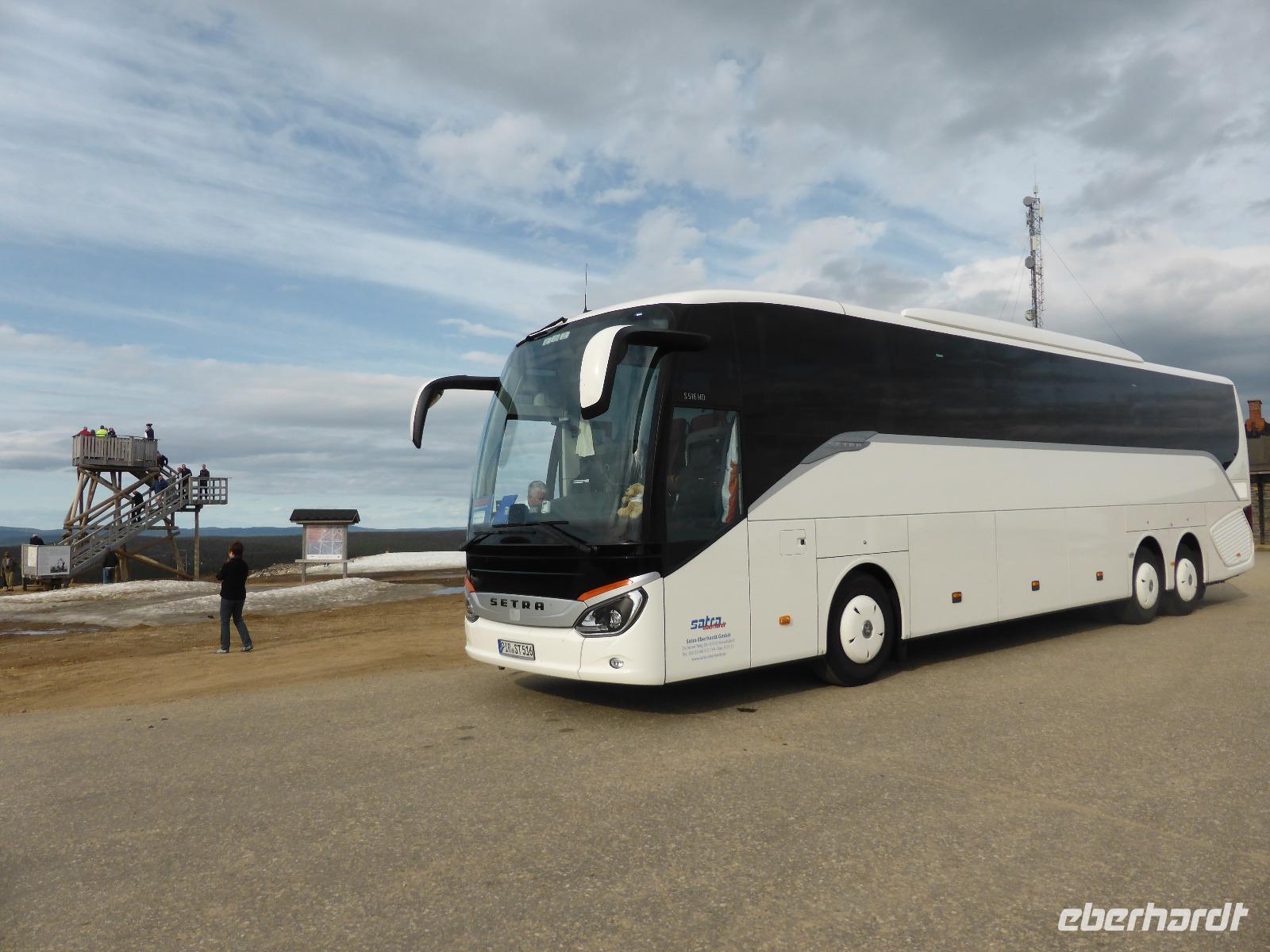 Beim Weihnachtsmann in Rovaniemi am Polarkreis gaben wir nicht nur unsere Wünsche bekannt, sondern schrieben auch die ersten Weihnachtskarten. Bei 18 Grad und Sonne pur fiel uns dies allerdings nicht ganz leicht. Ein Sprung über den Polarkreis sowie eine Sektverkostung durften nicht fehlen. Mit den ersten Rentieren konnten wir im südlichsten Samidorf Vuosto Bekanntschaft schließen. Den nächsten Stopp legten wir an der ältesten Holzkirche Nordeuropas in Sodankylä ein. Bevor wir unser Hotel erreichten genossen wir noch den Ausblick vom Hausberg Kaunispää auf die finnischen Wälder. Die ist mit 438 m die höchste Erhebung des Urho Kekkonen Nationalparkes und besitzt einen der Messpunkte des STruve Bogen. Das Hotel Riekonlinna in Saariselkä erreichten wir am Abend. Ein Blick aus dem Fenster und es grüßten die Rentiere.
