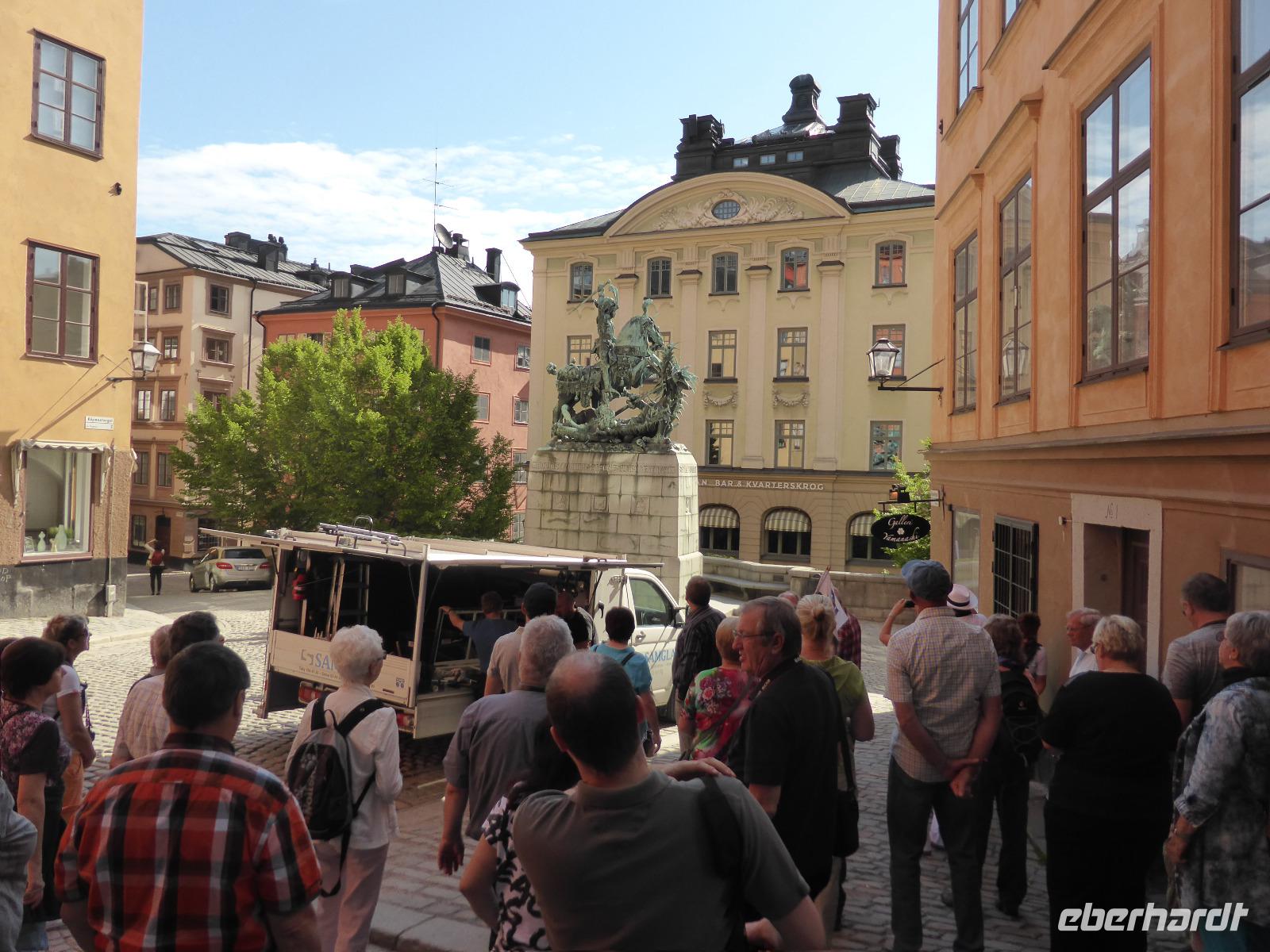 Gestärkt durch das reichhaltige Buffet widmeten wir uns am Vormittag der schwedischen Hauptstadt. Am Schlossplatz wartete bereits unsere Stadtführer Kjell auf uns. Mit zahlreichen Information und kleinen Anektoden führte er uns durch die Stadt.